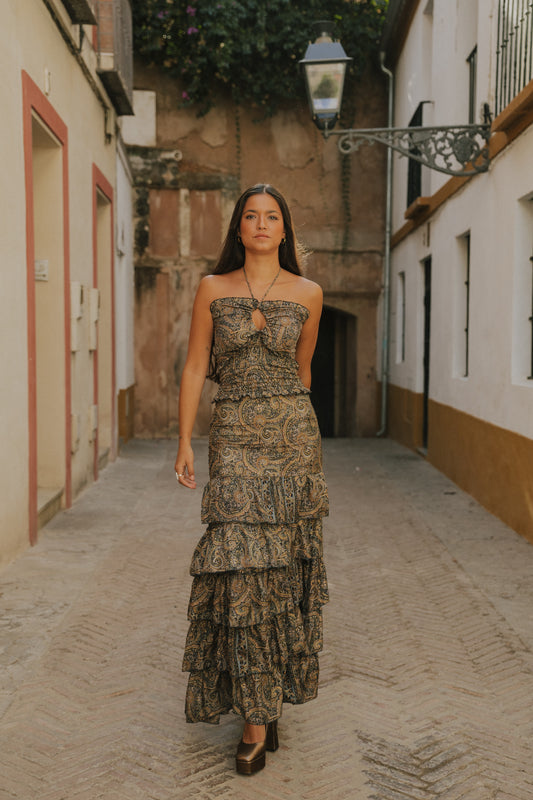 Vestido Catania marrón y teja