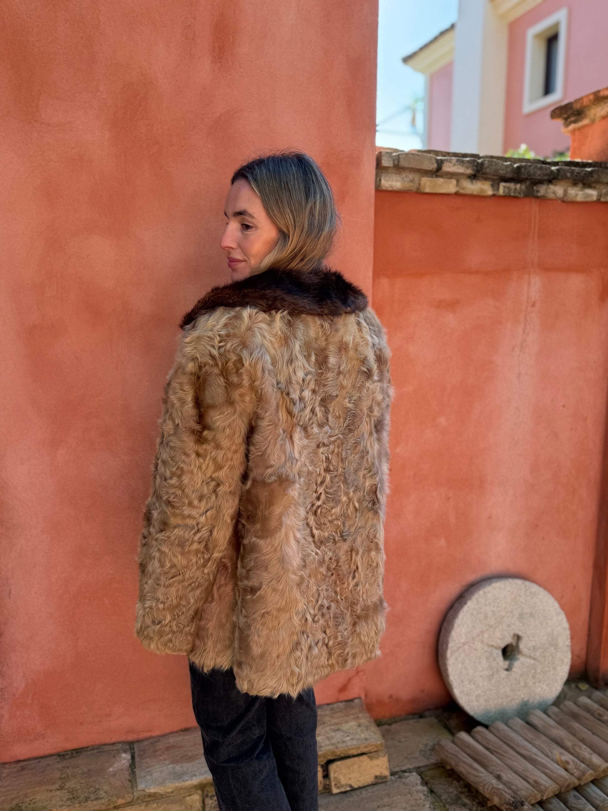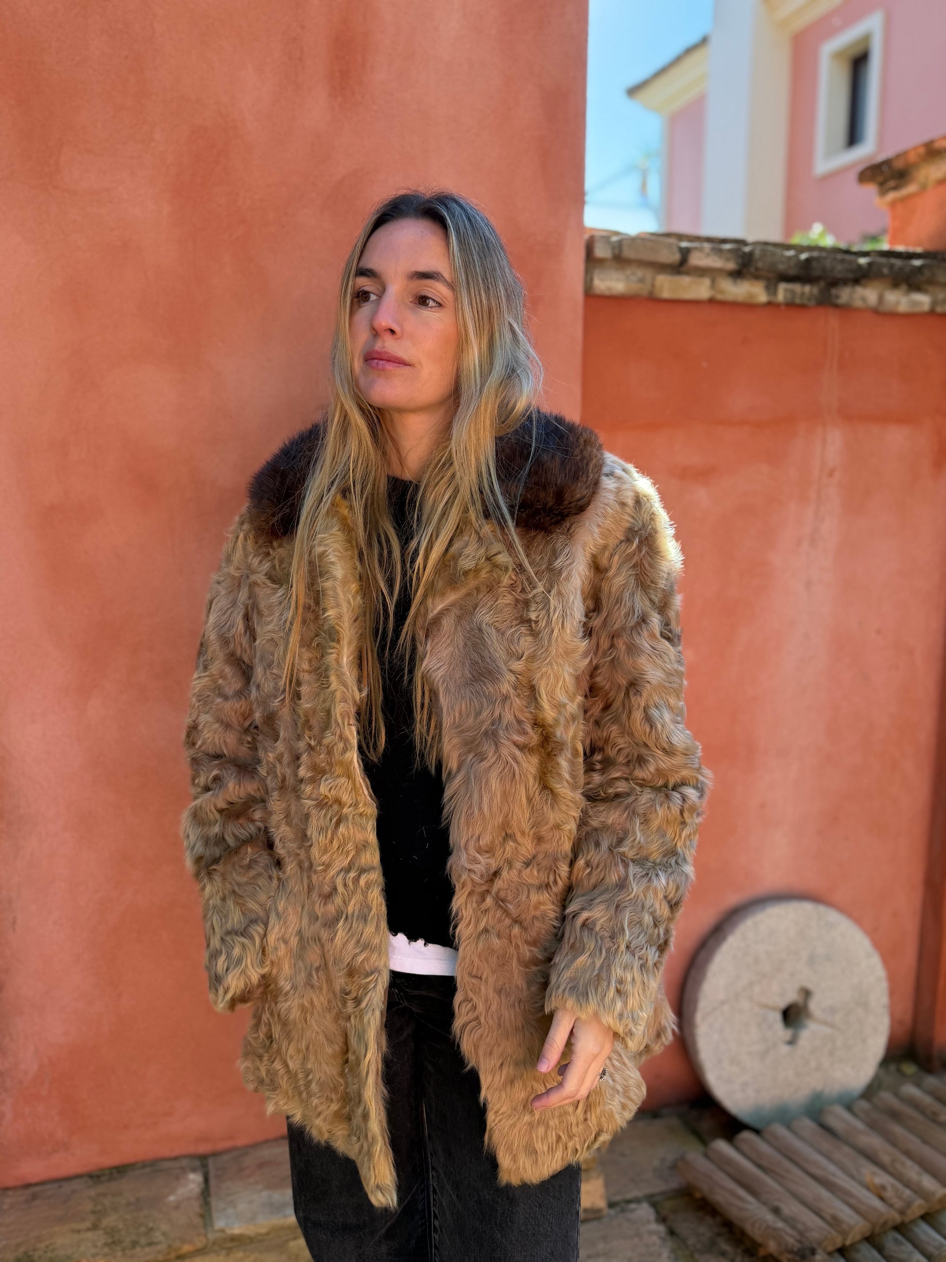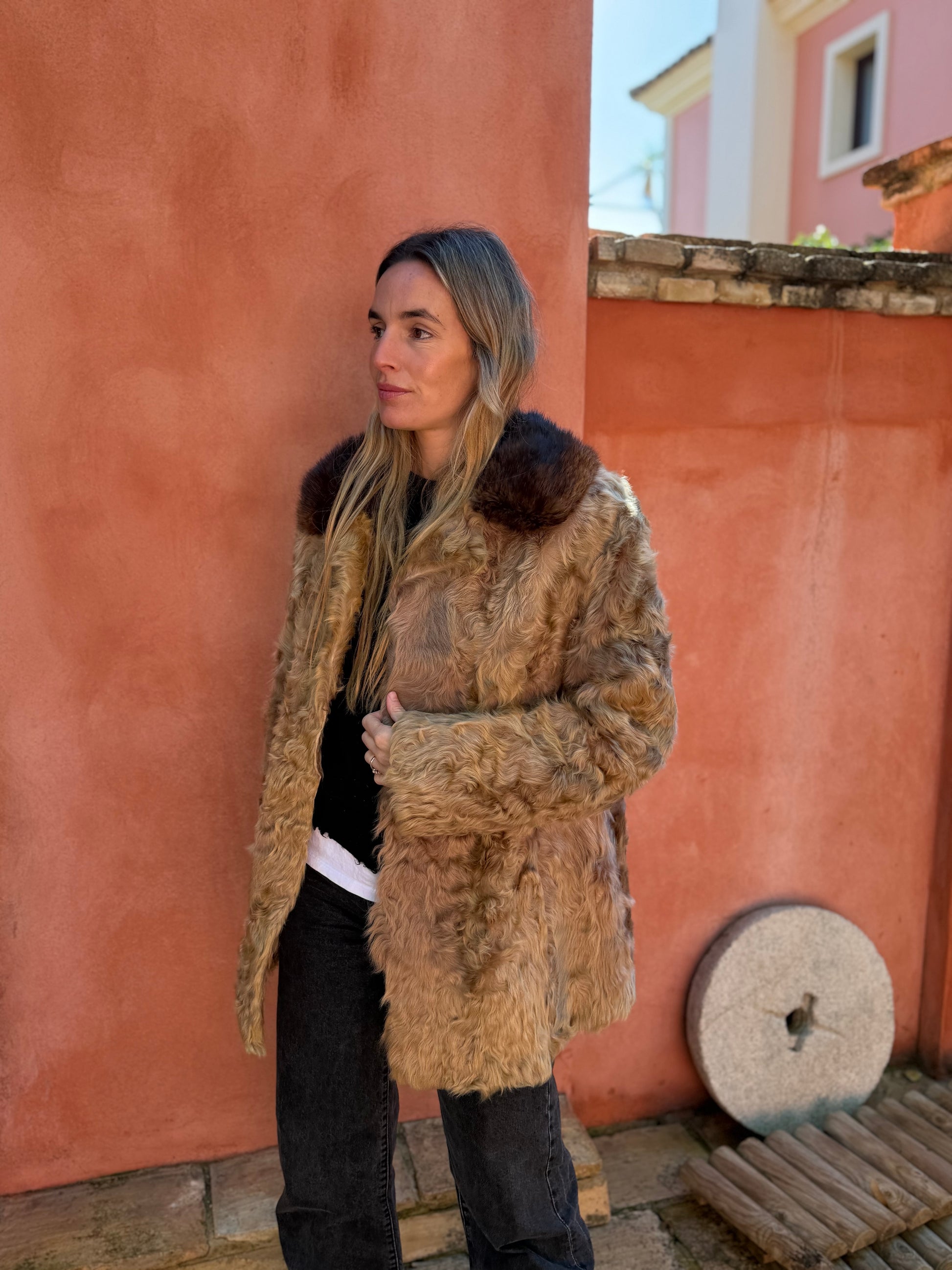 Abrigo de pelo natural de astracán con cuello de visón. Sólo uno por unidad