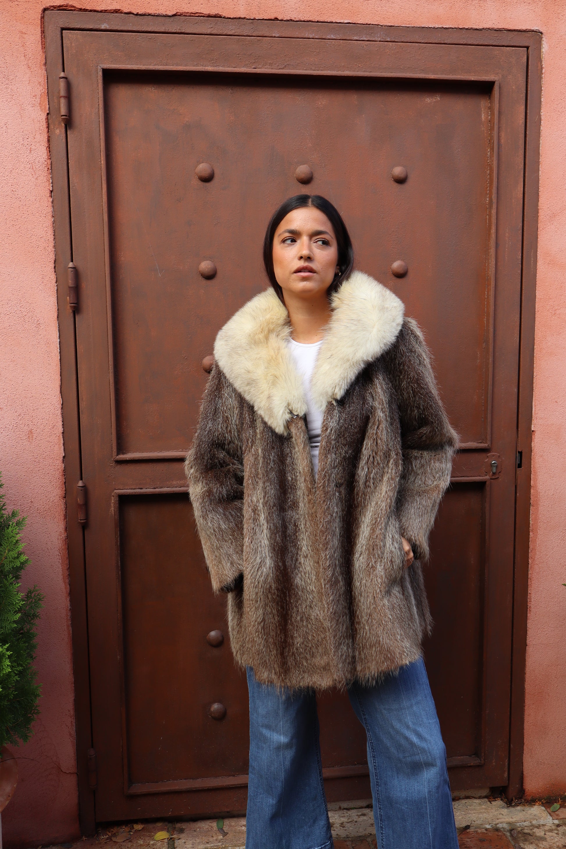 Abrigo de pelo natural de zorro con cuello incorporado . Sólo uno por unidad