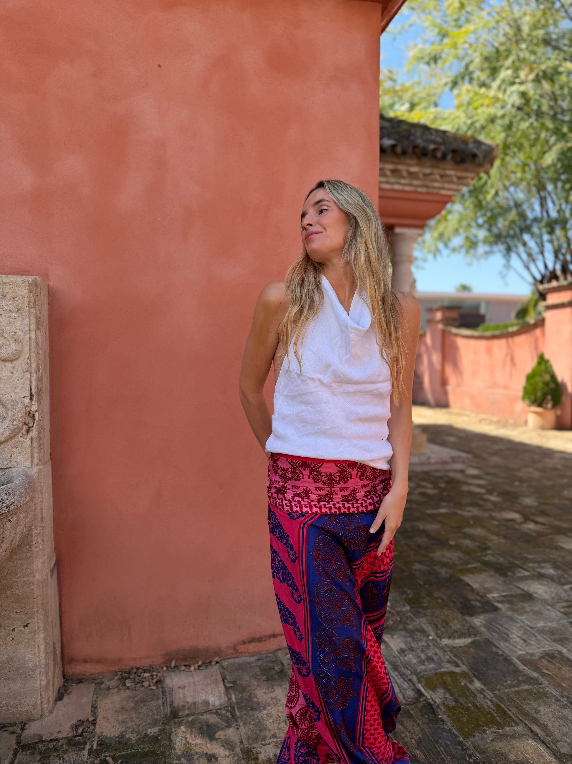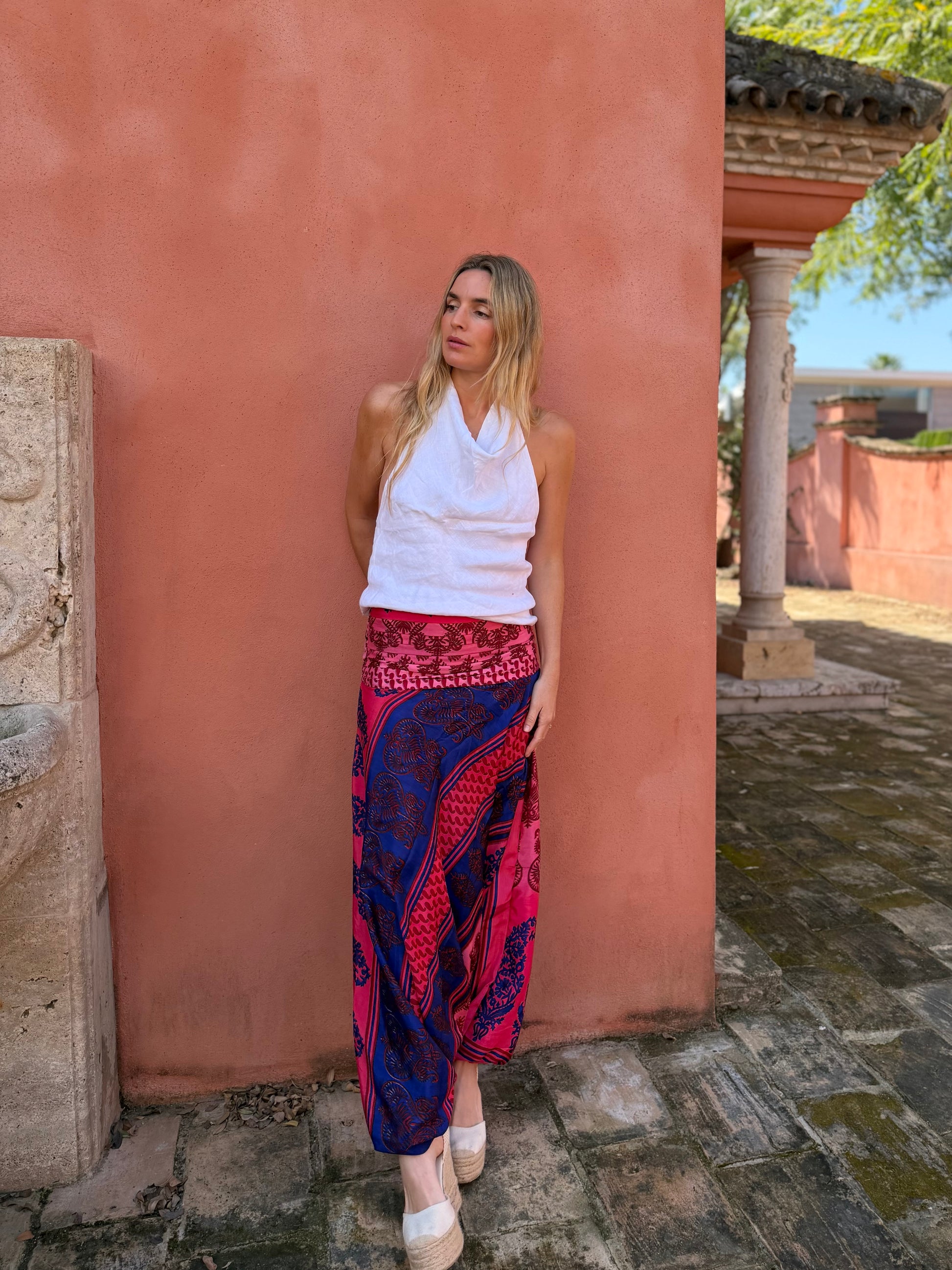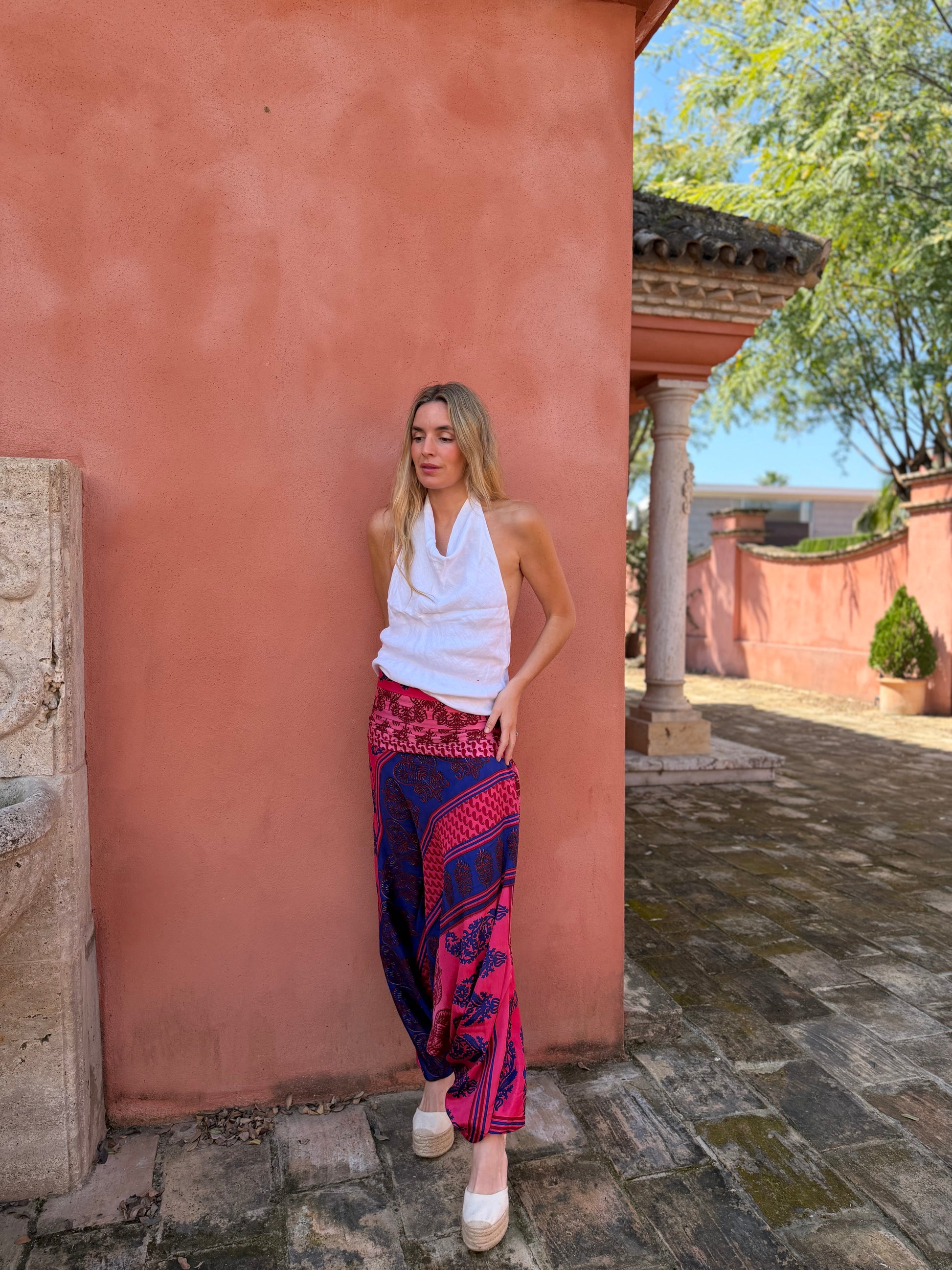 Pantalón bombacho confeccionado en seda vintage.