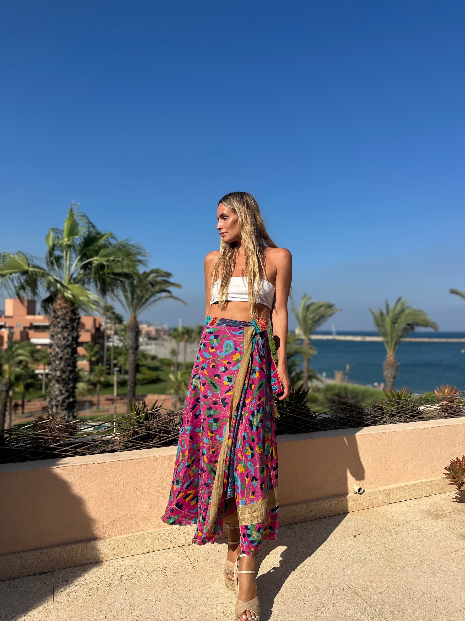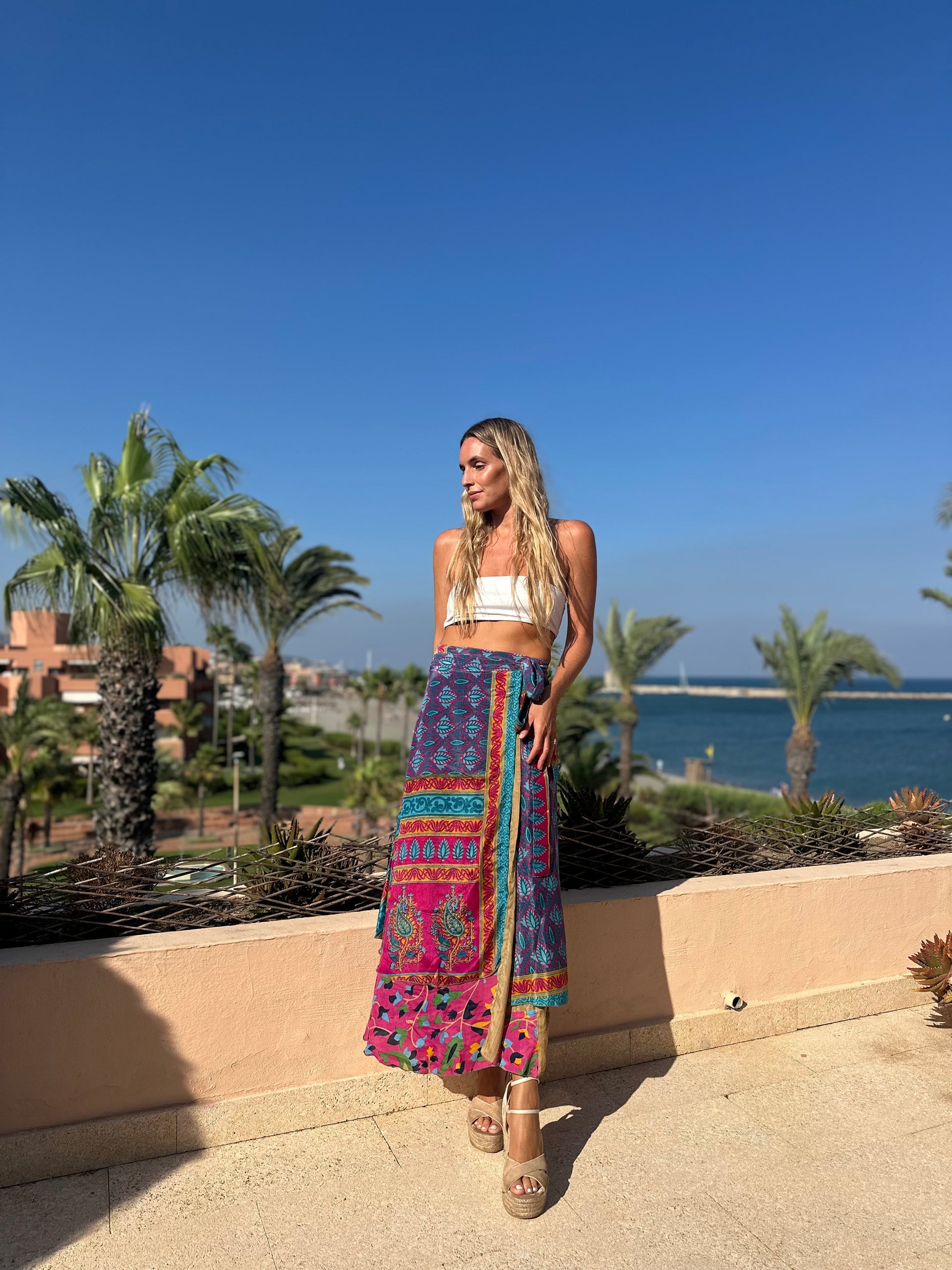 Falda con tejido en seda vintage india. Sólo una por unidad