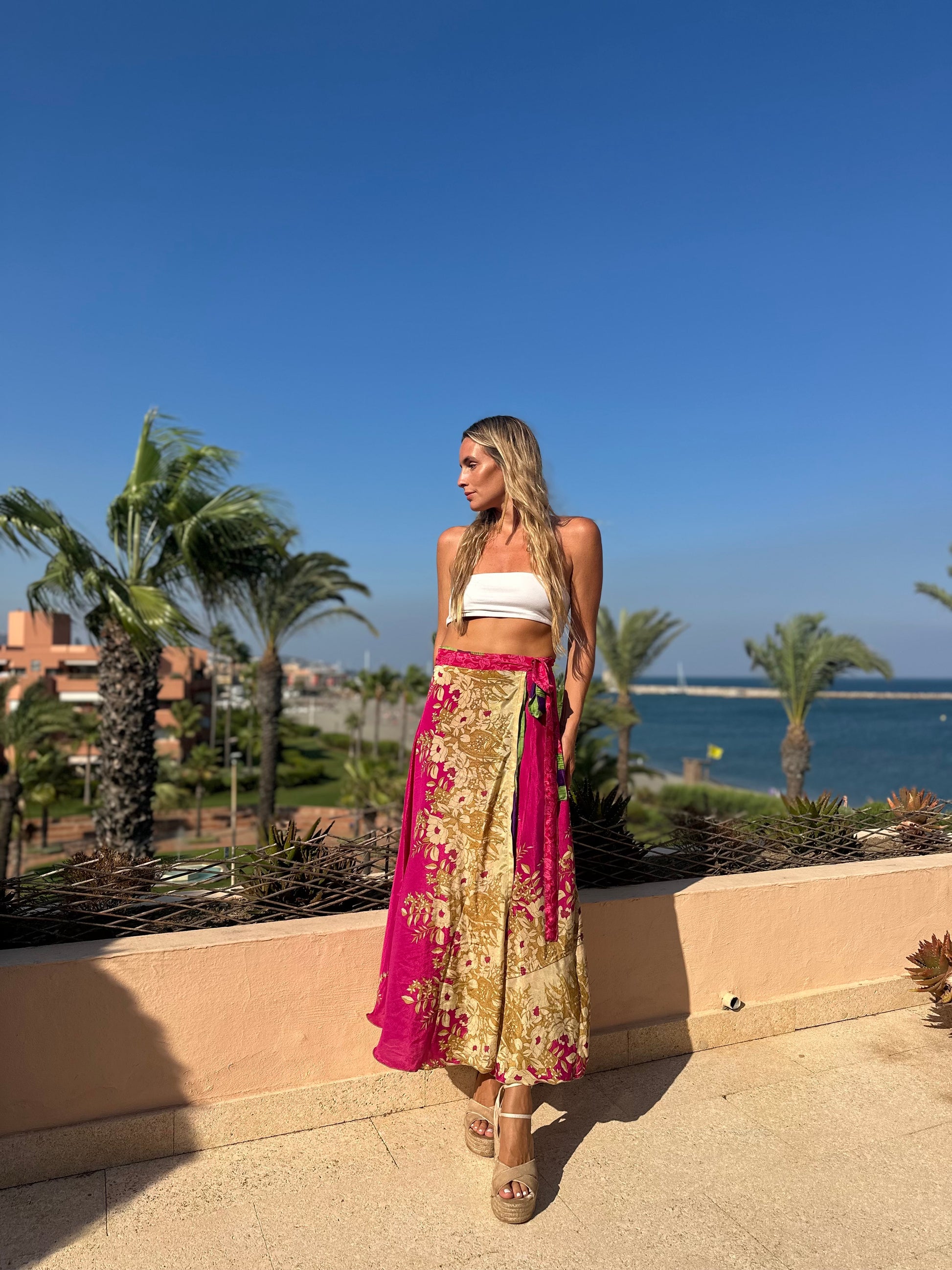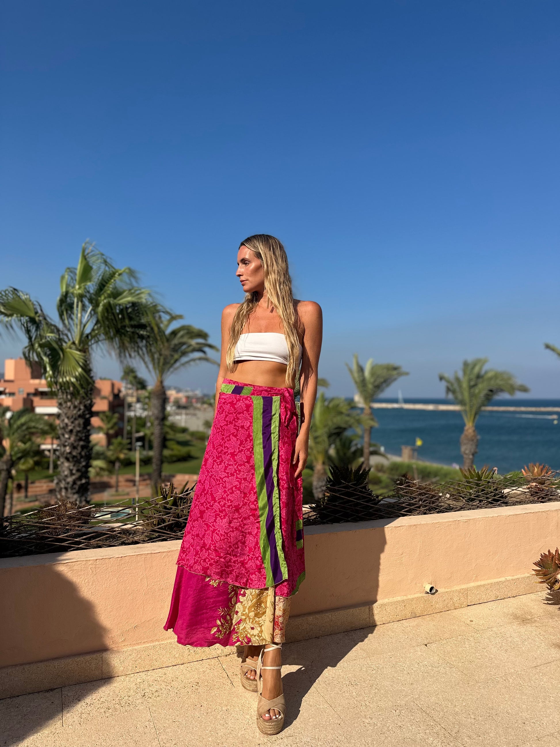 Falda con tejido en seda vintage india. Sólo una por unidad