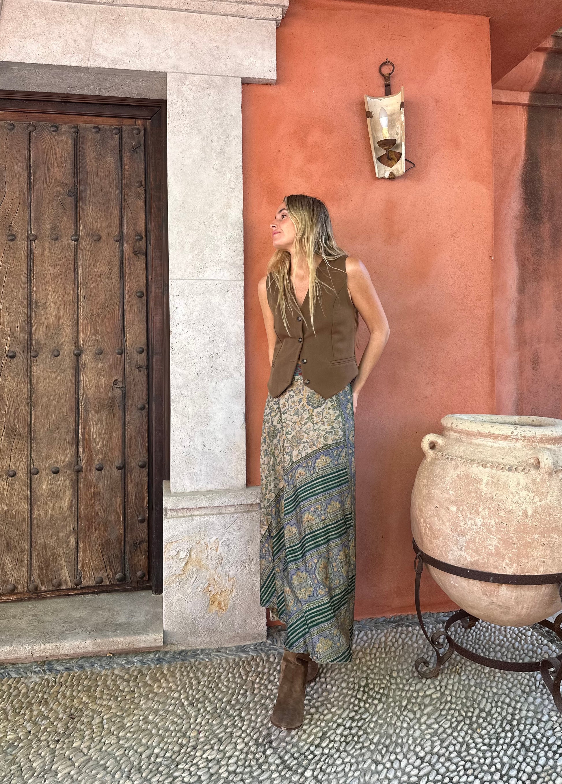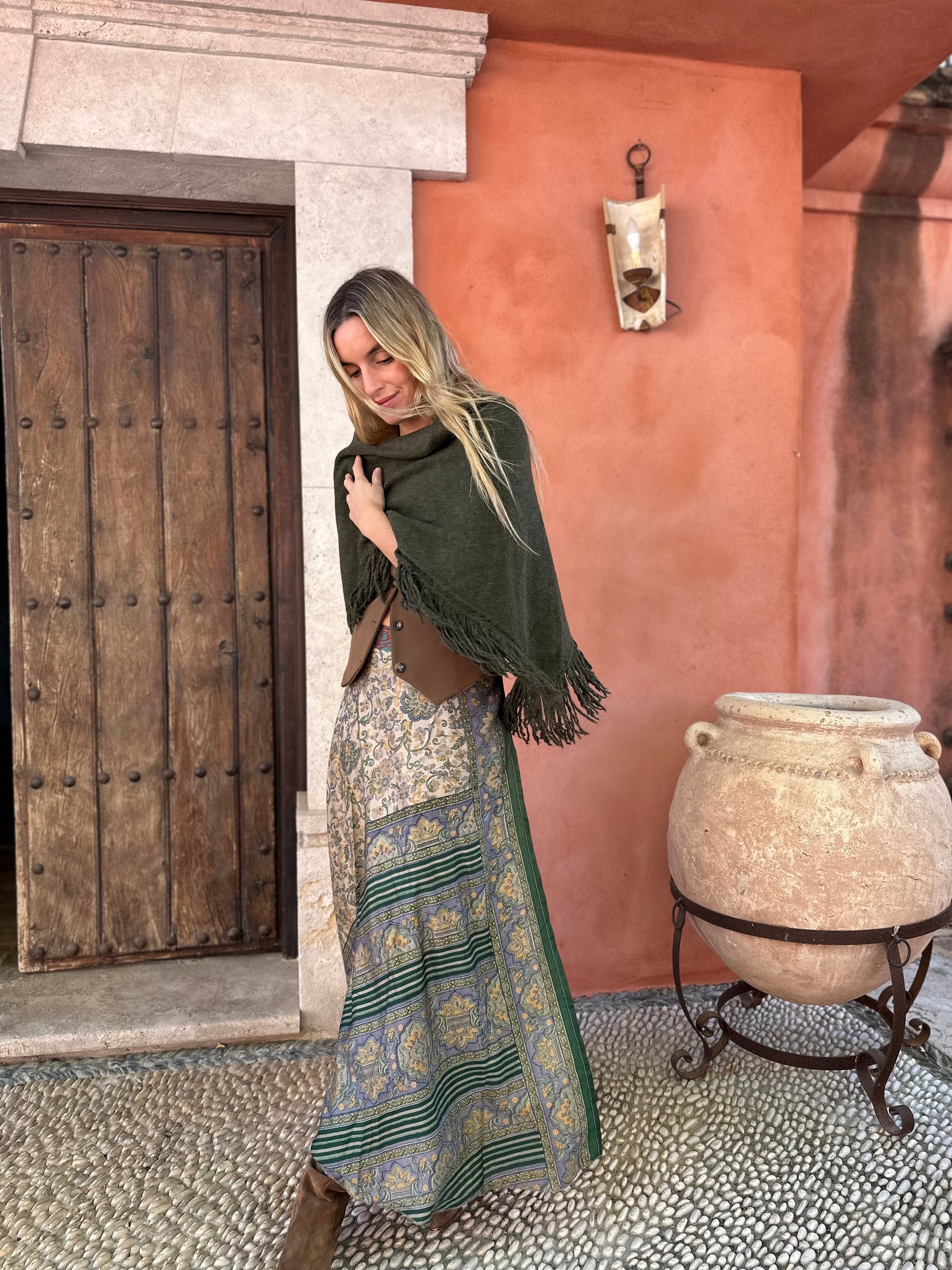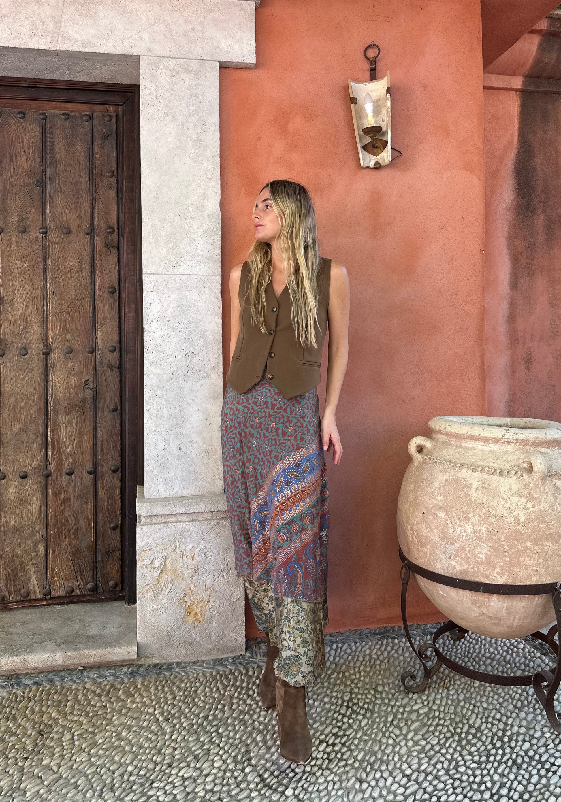 Falda con tejido en seda vintage india. Sólo una por unidad