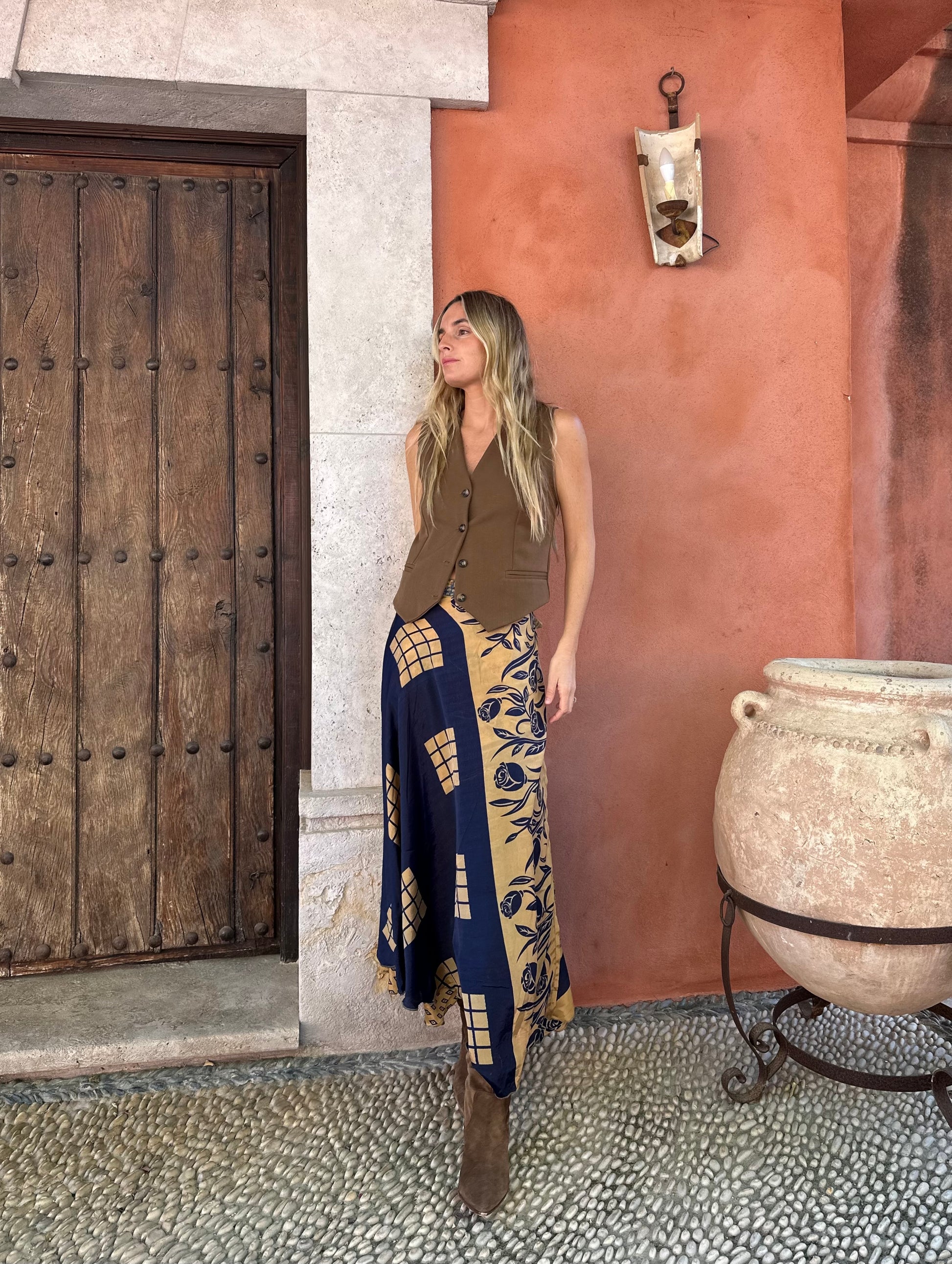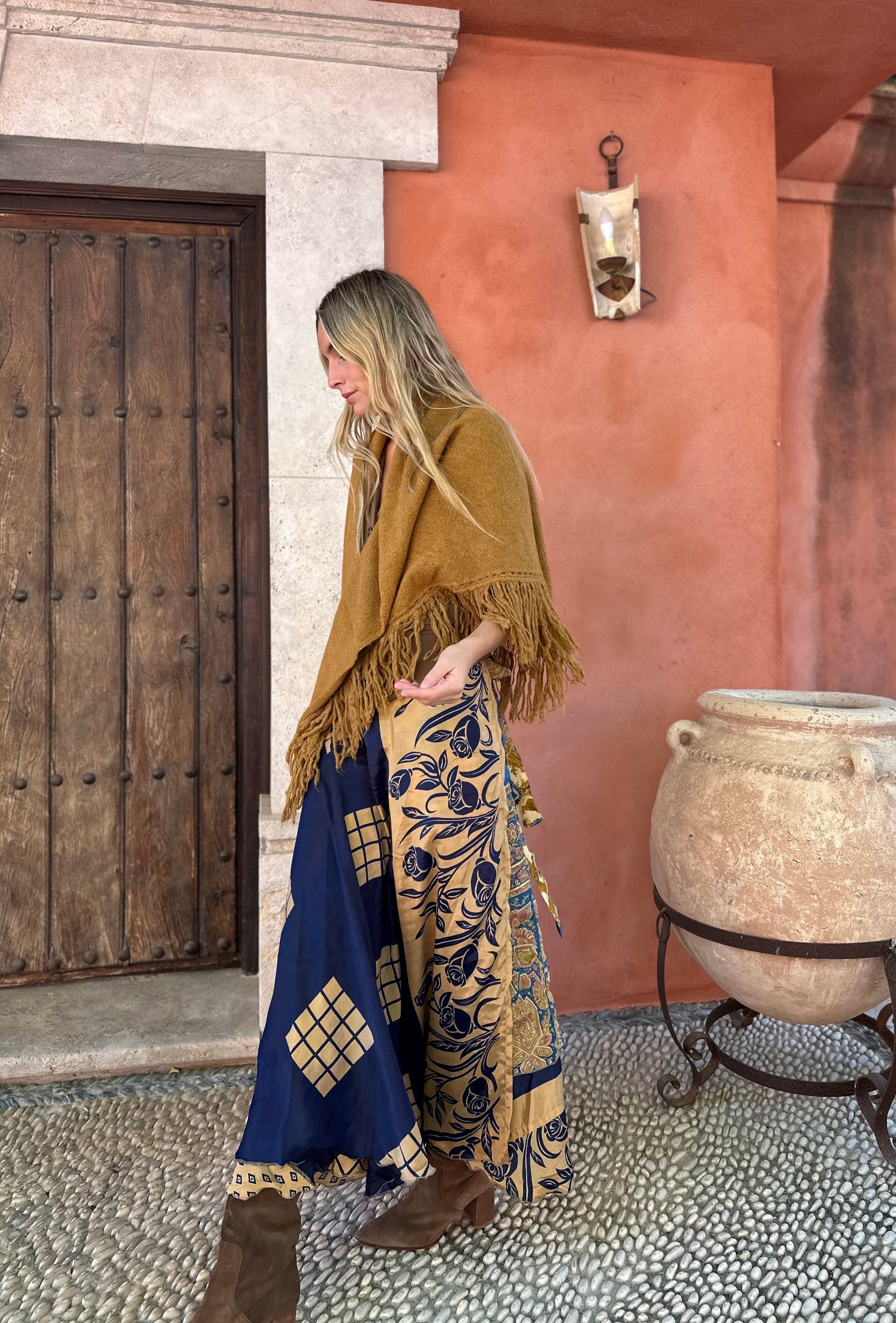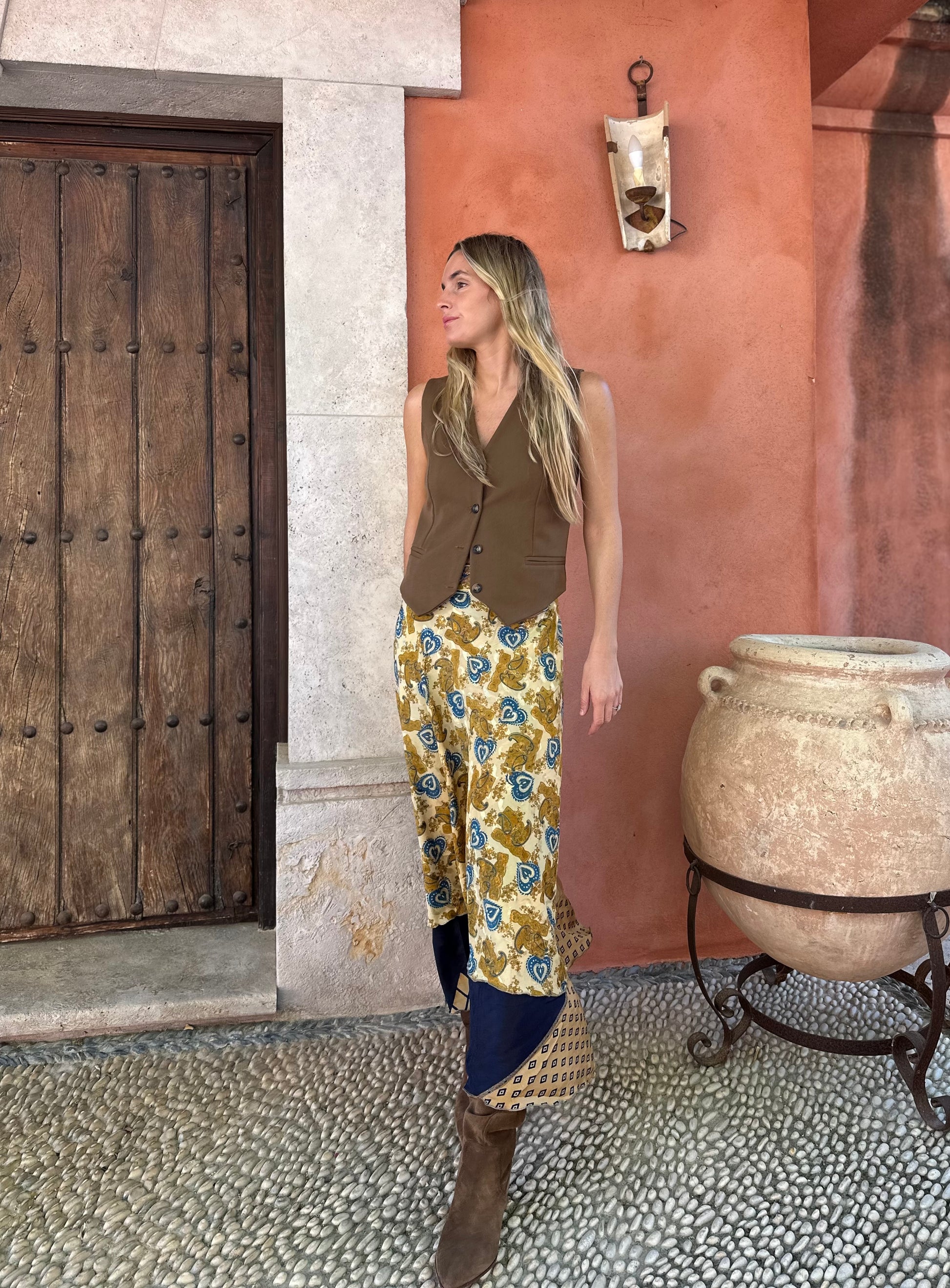 Falda con tejido en seda vintage india. Sólo una por unidad
