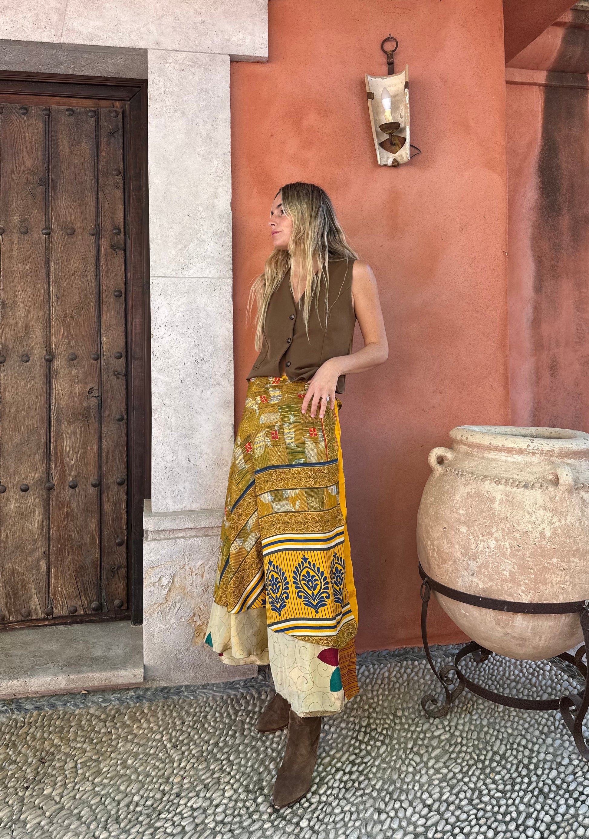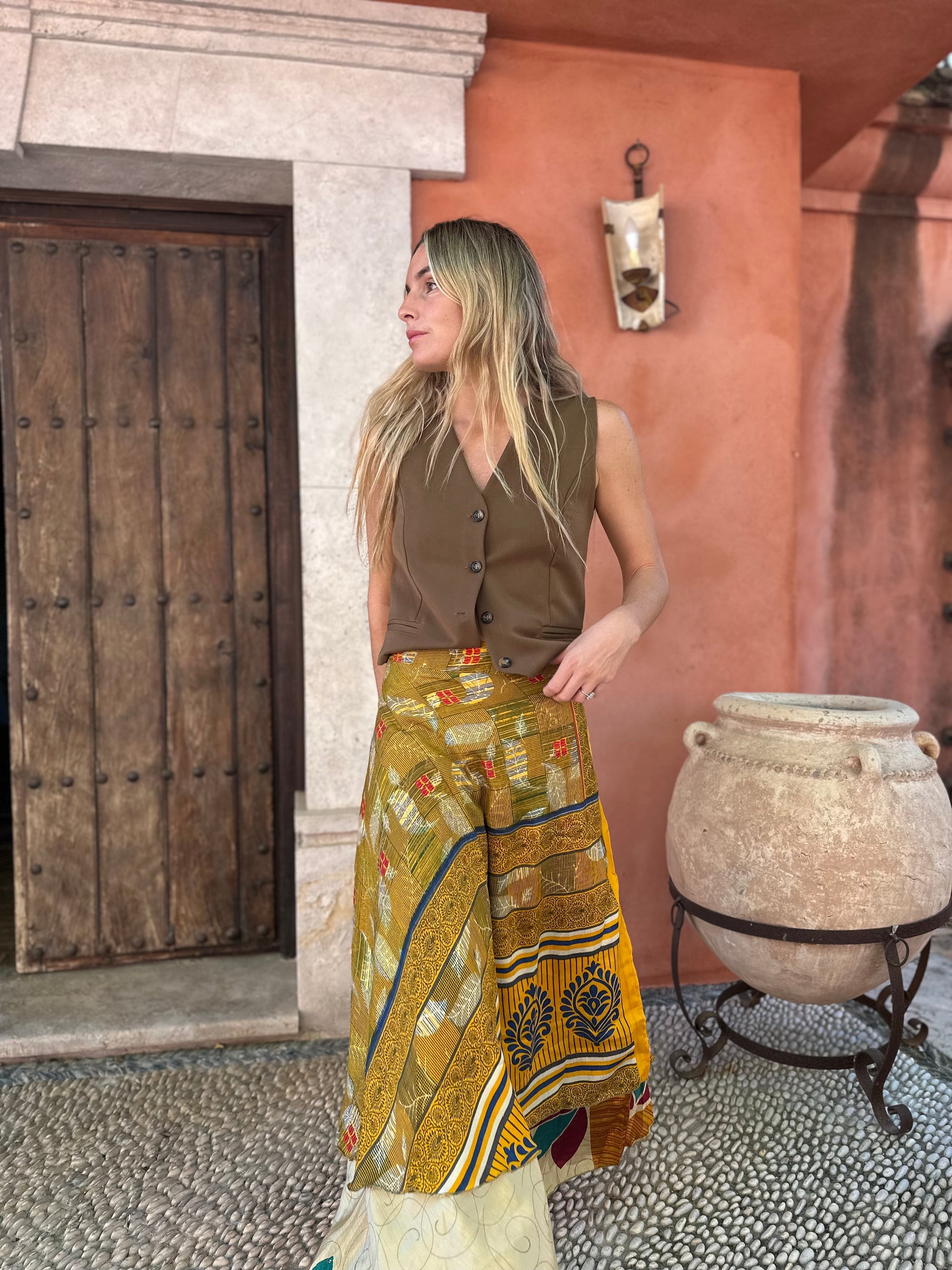 Falda con tejido en seda vintage india. Sólo una por unidad