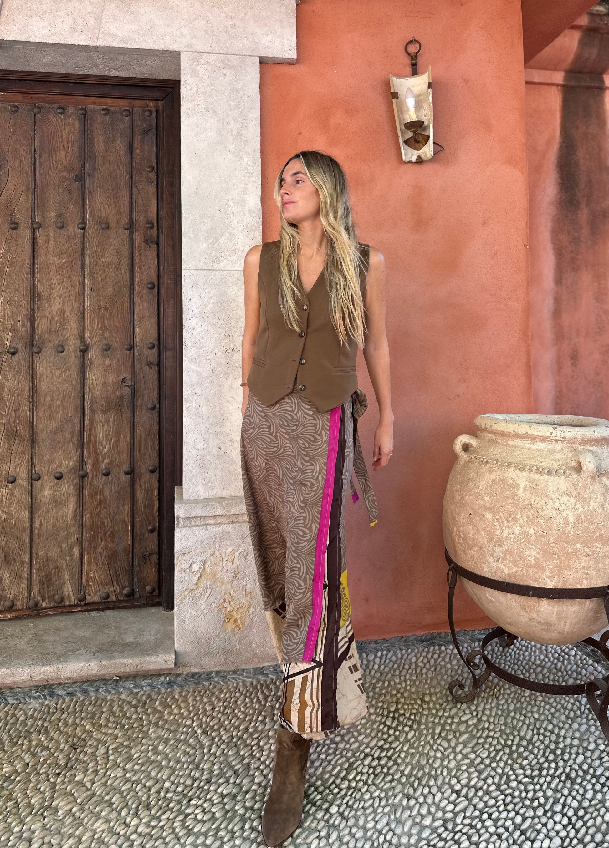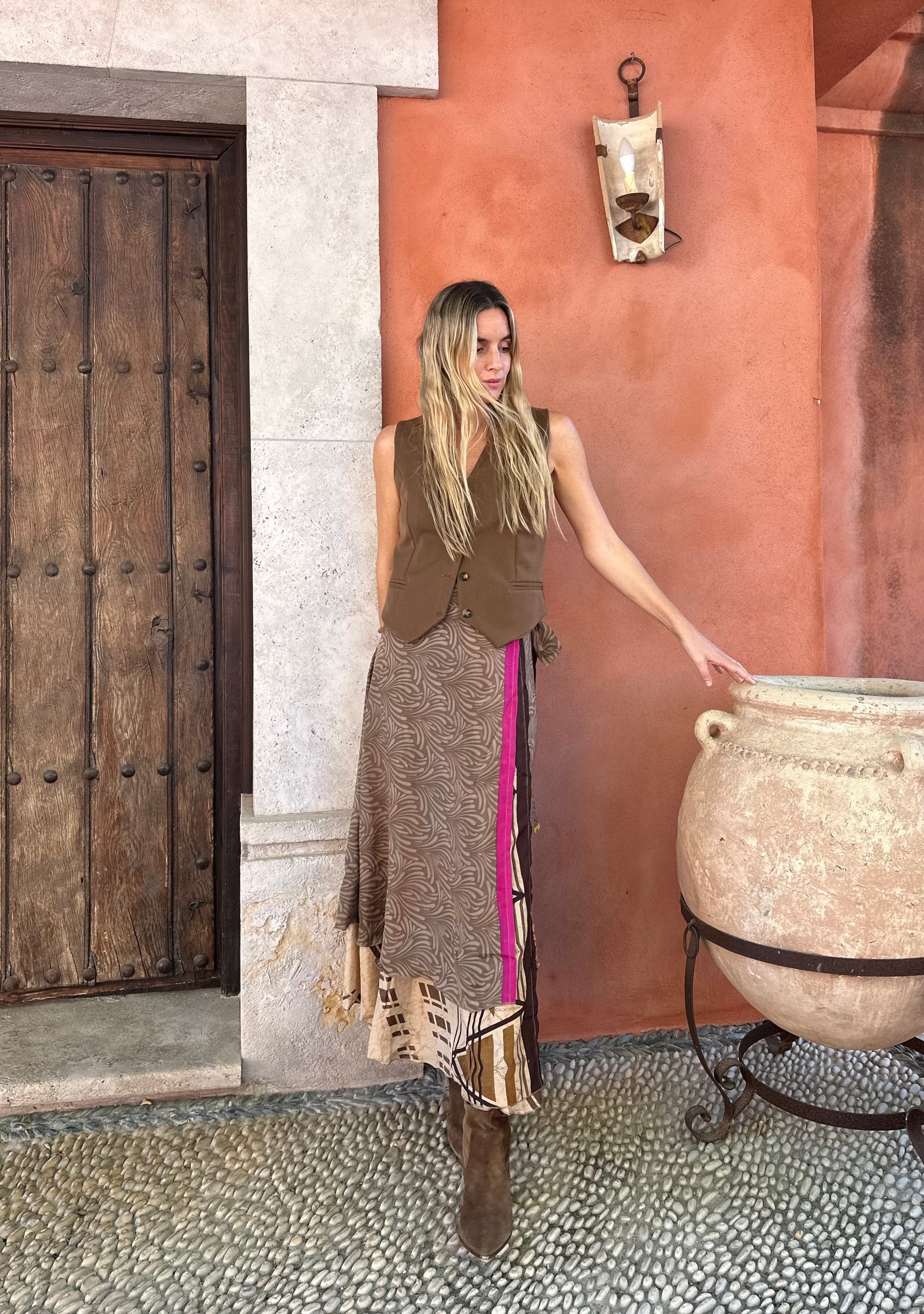 Falda con tejido en seda vintage india. Sólo una por unidad