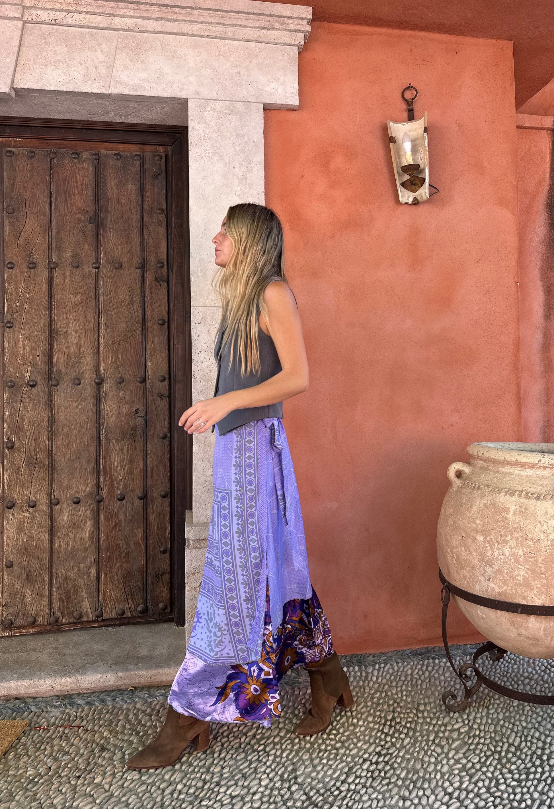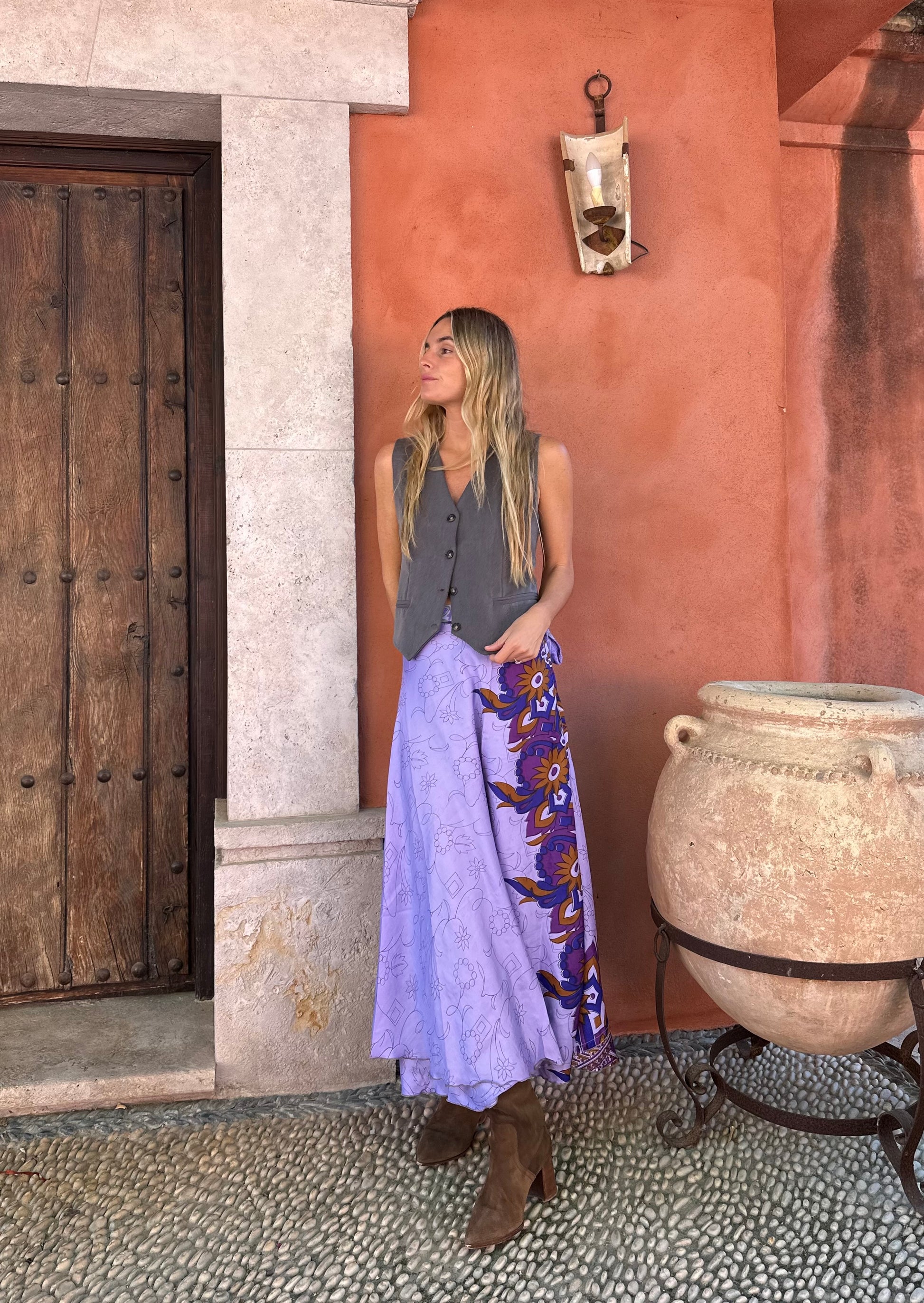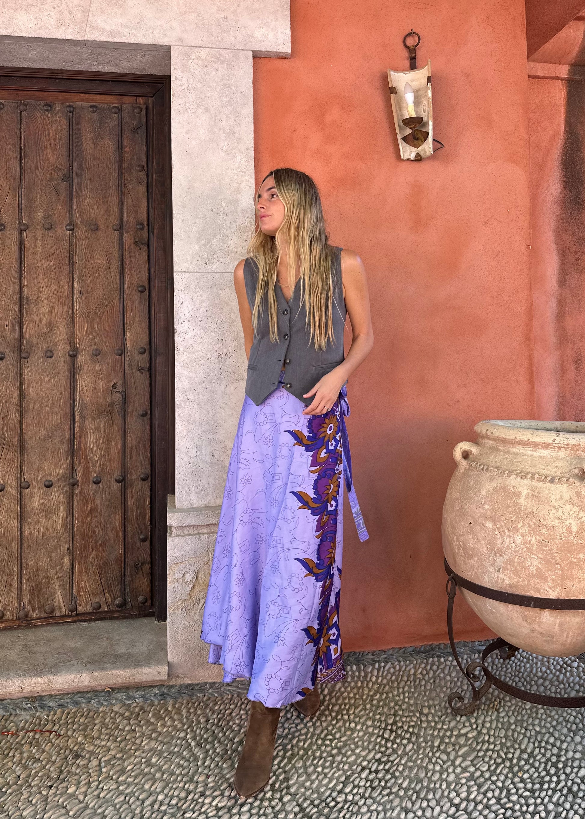 Falda con tejido en seda vintage india. Sólo una por unidad