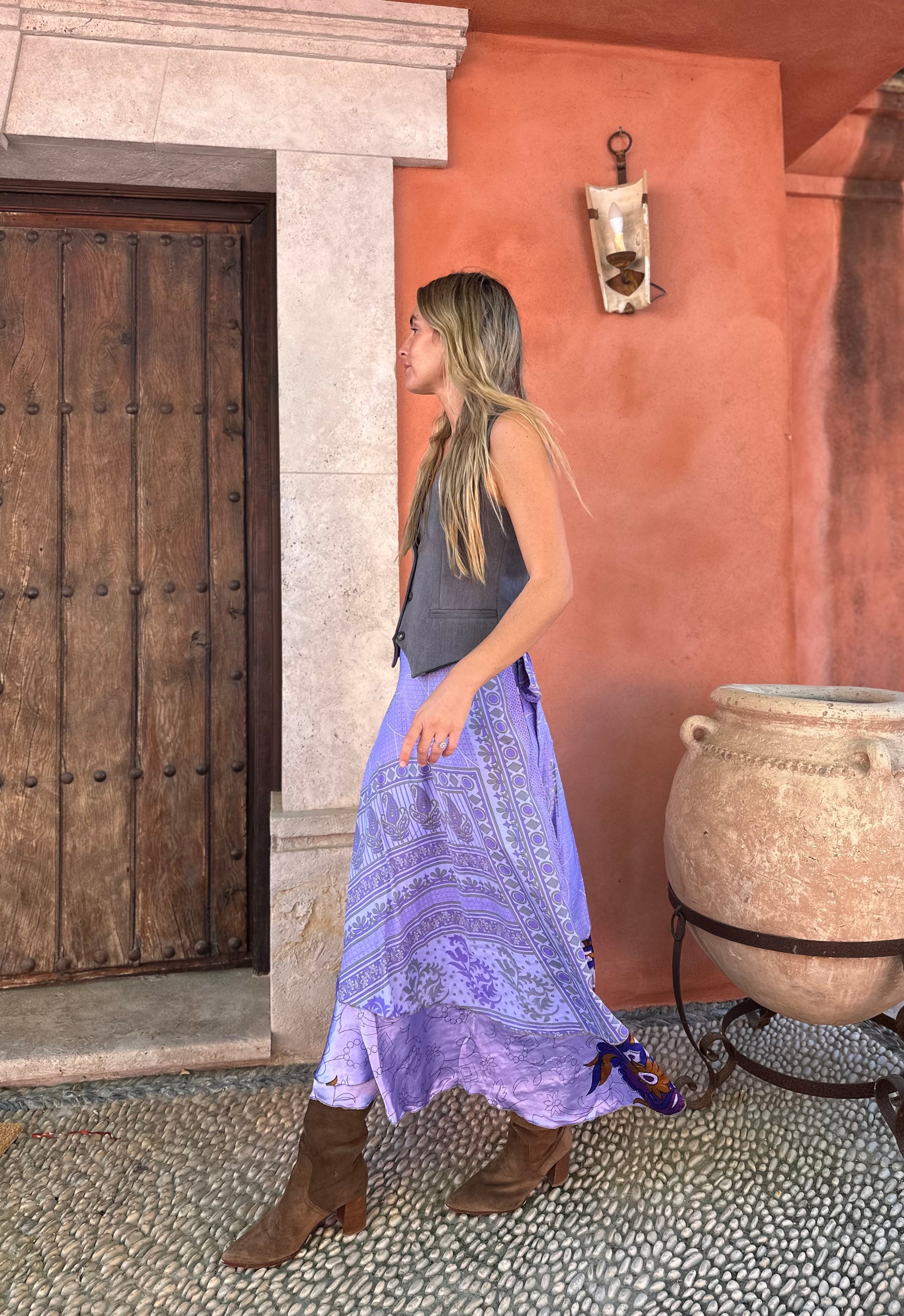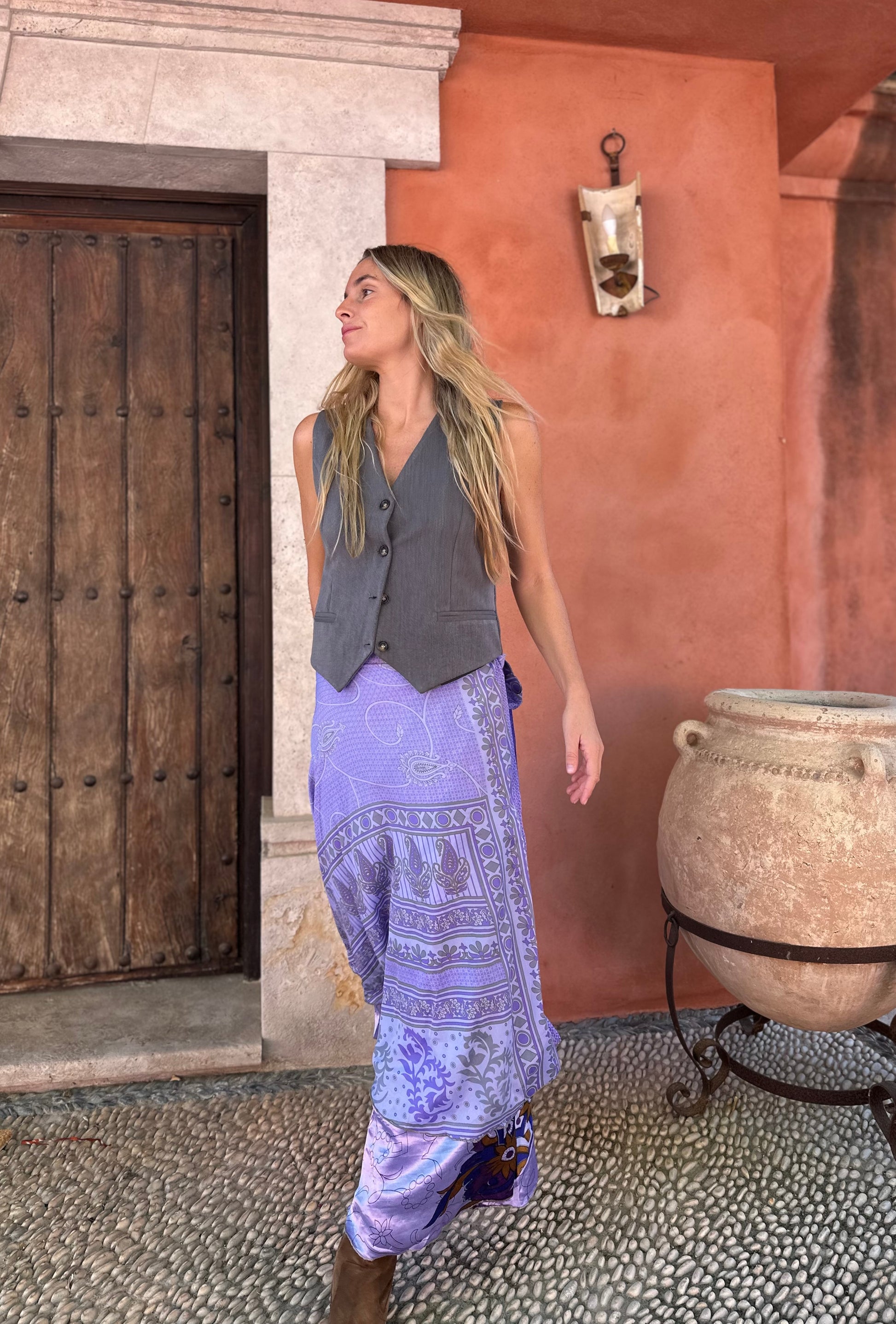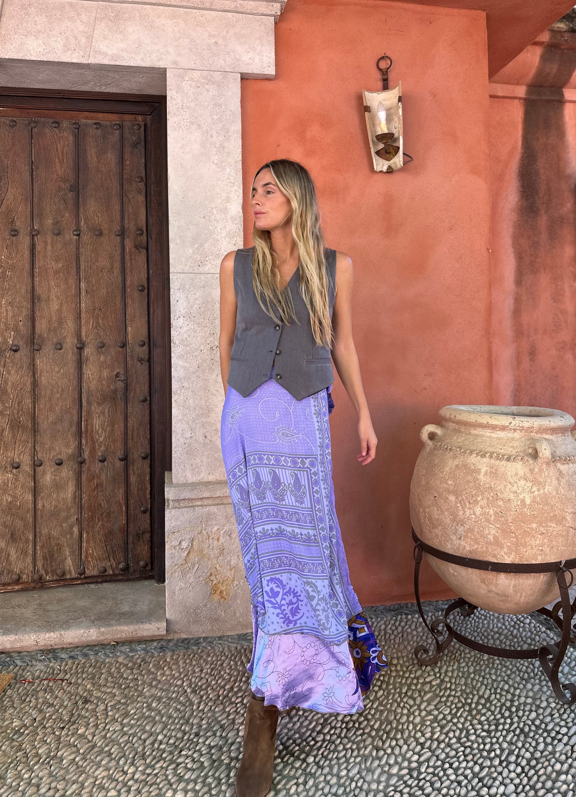 Falda con tejido en seda vintage india. Sólo una por unidad