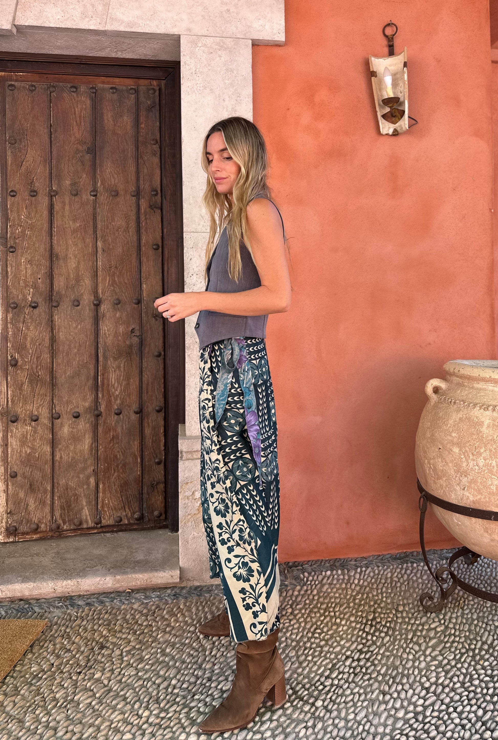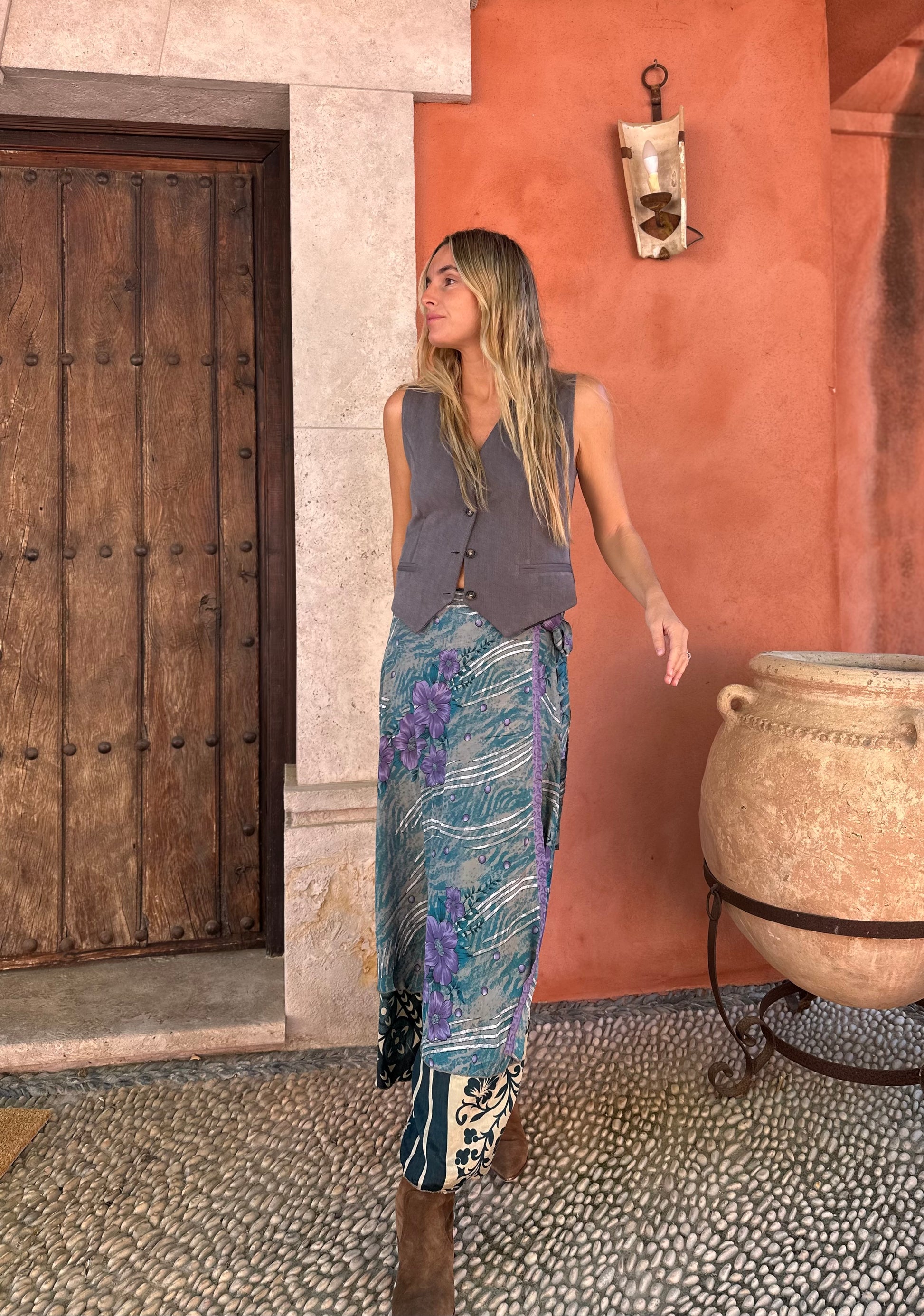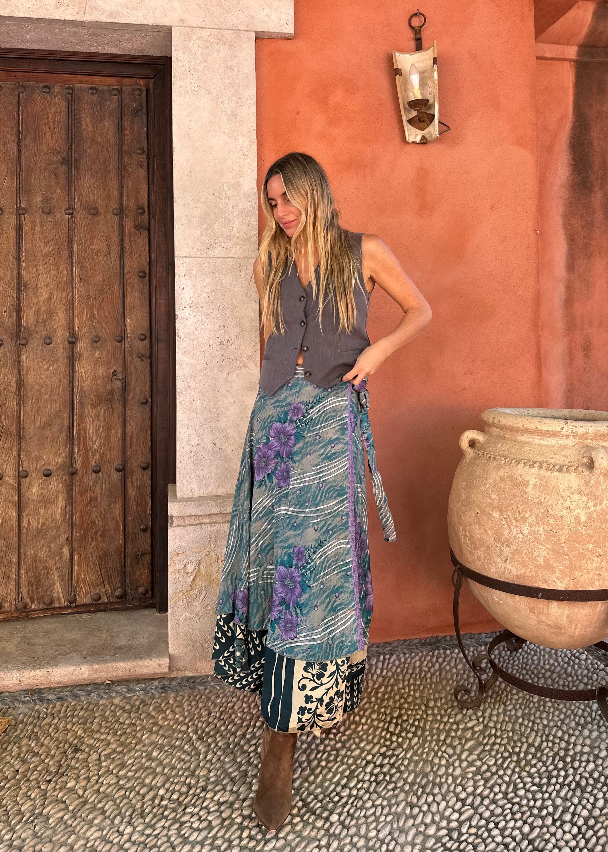 Falda con tejido en seda vintage india. Sólo una por unidad