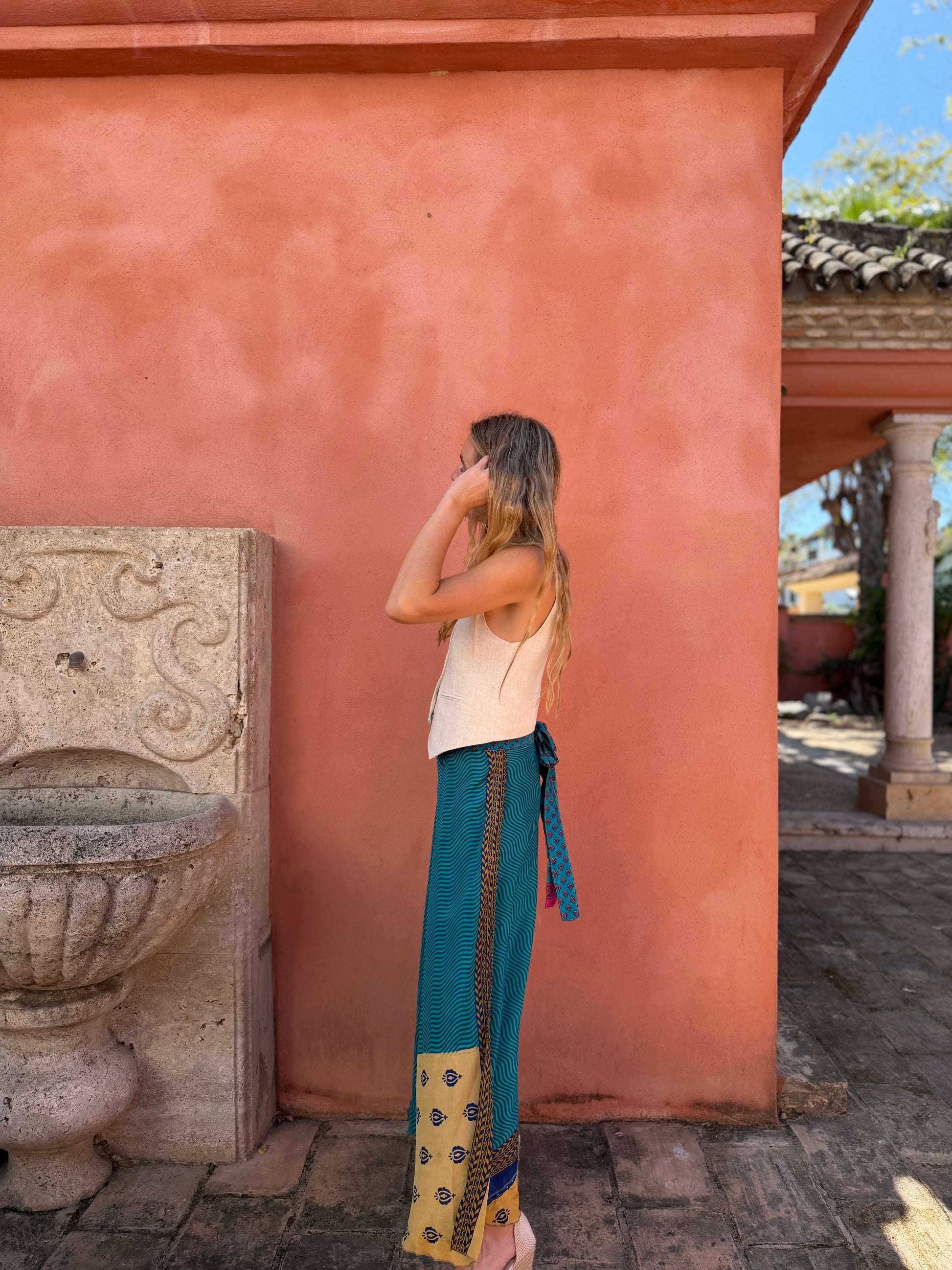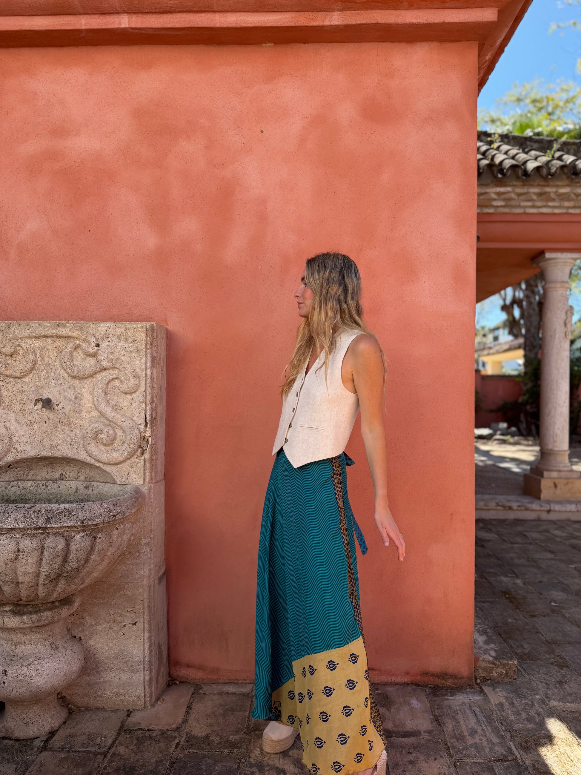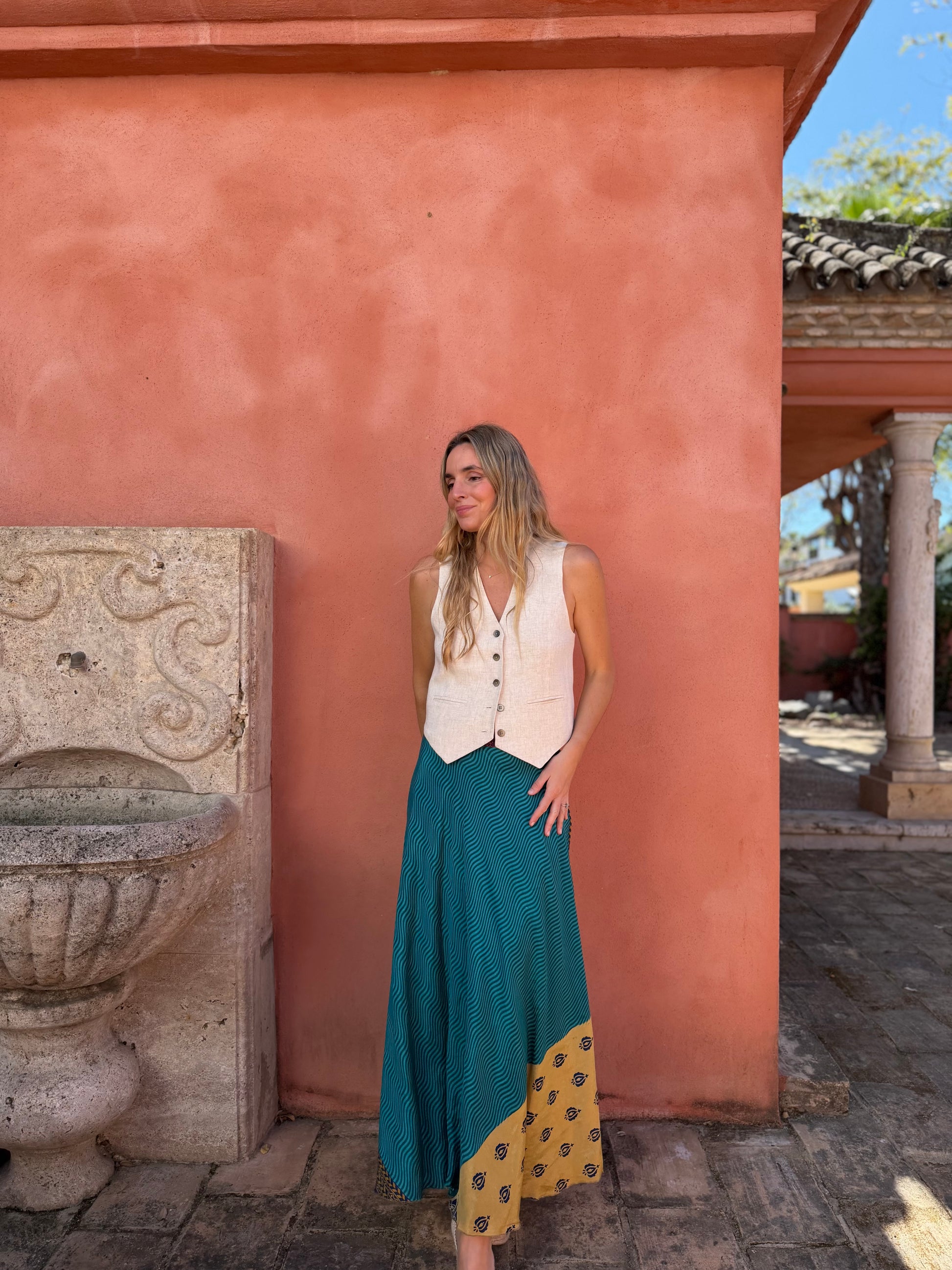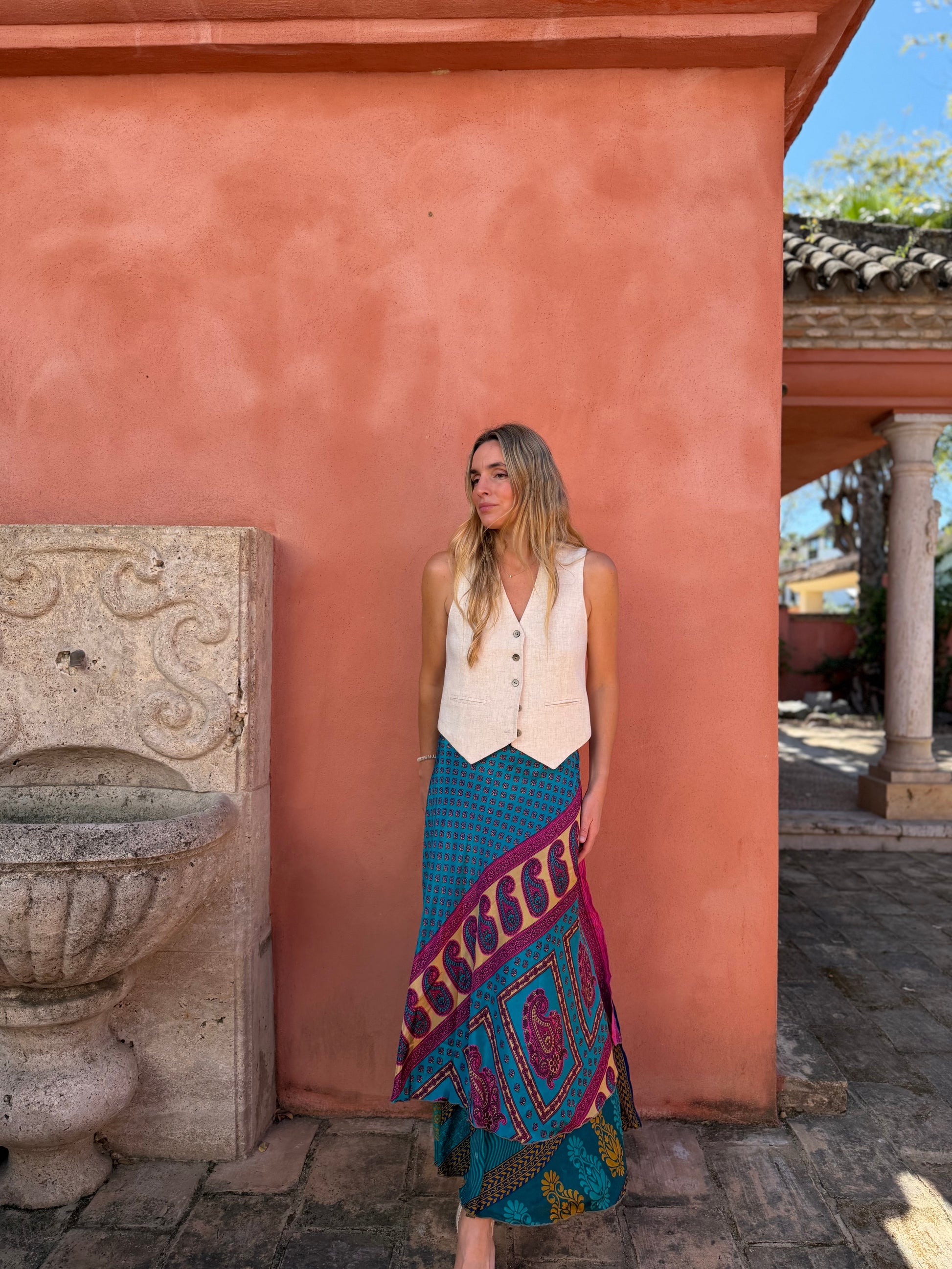 Falda con tejido en seda vintage india. Sólo una por unidad