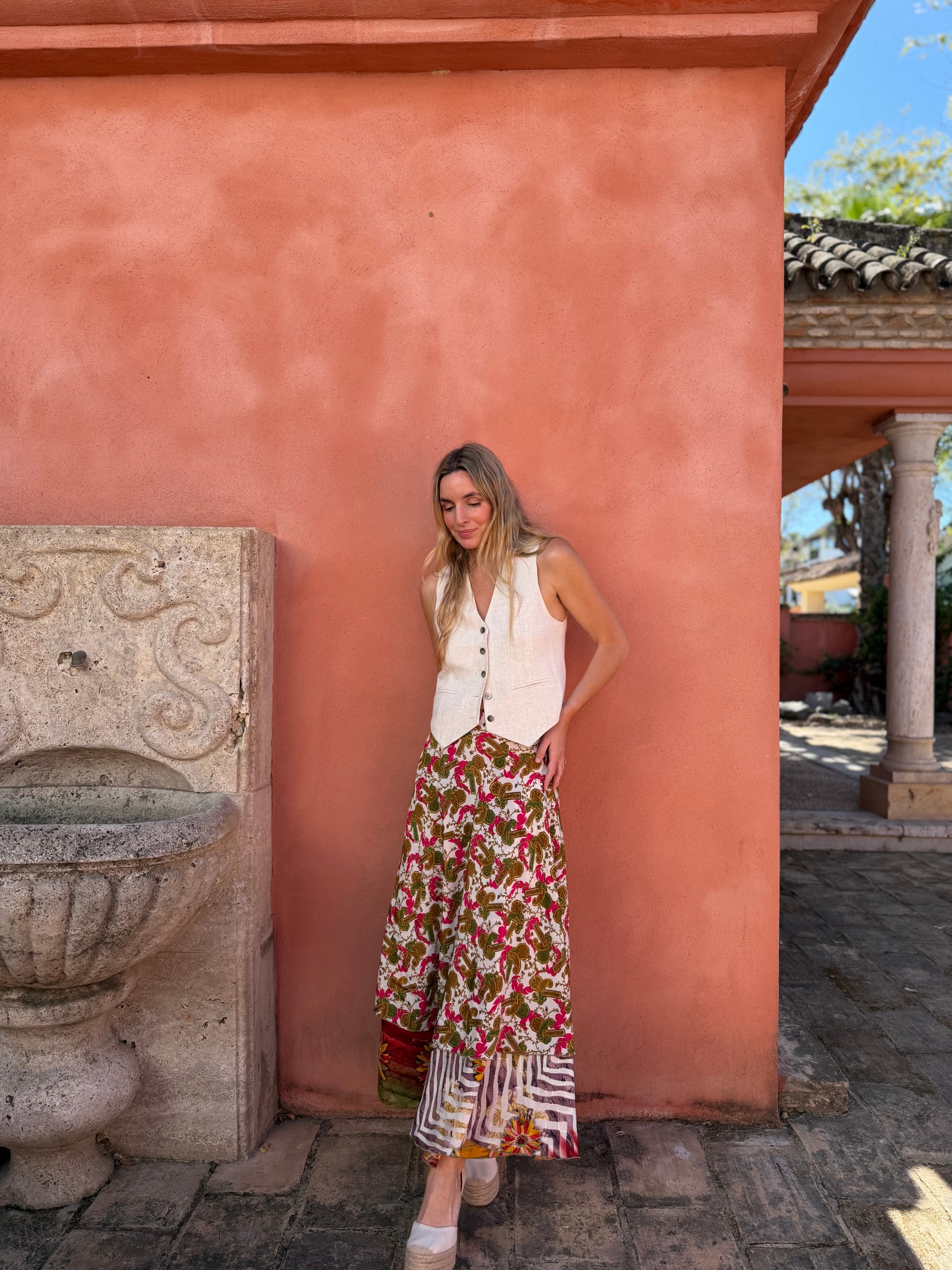 Falda con tejido en seda vintage india. Sólo una por unidad