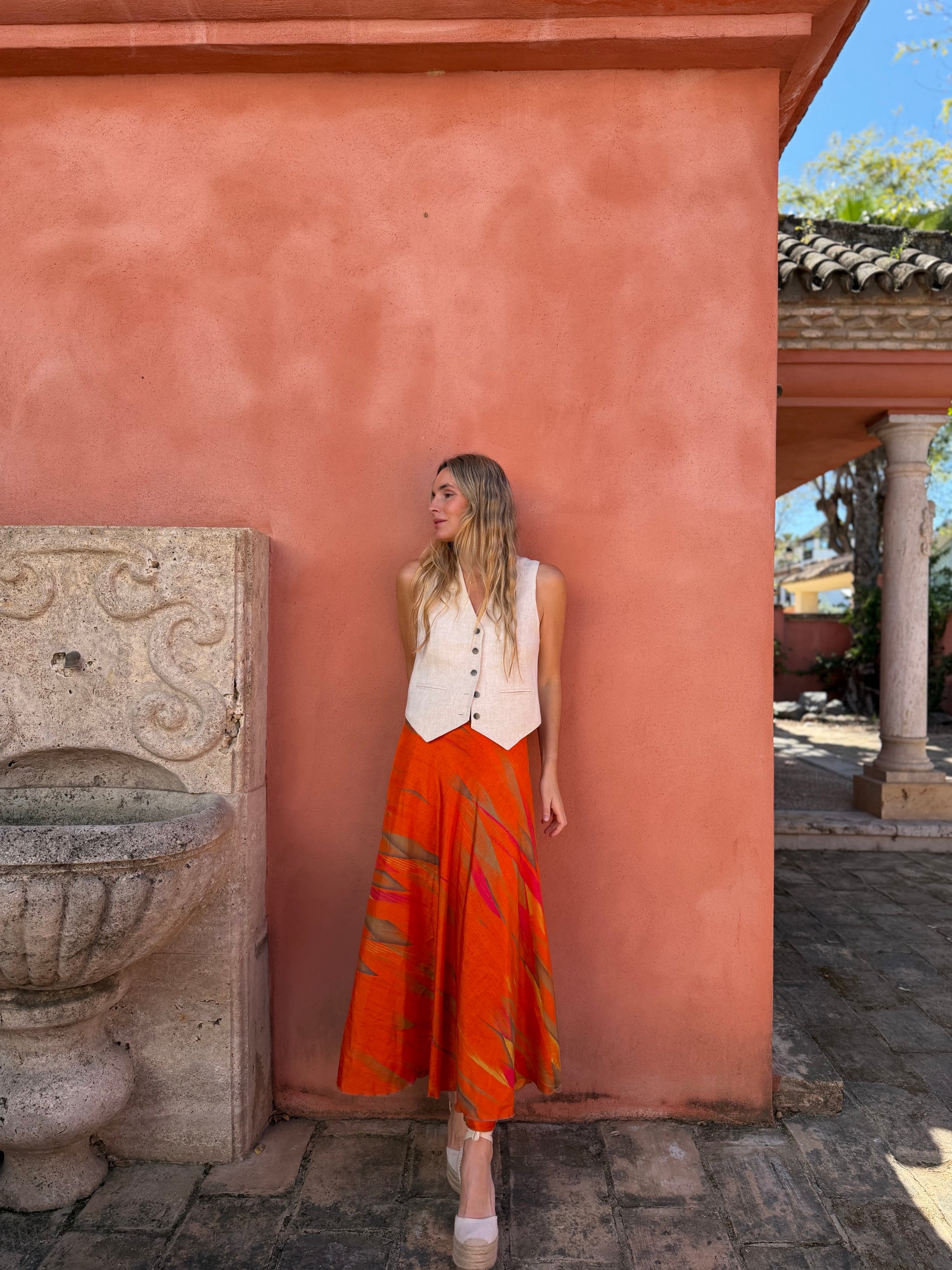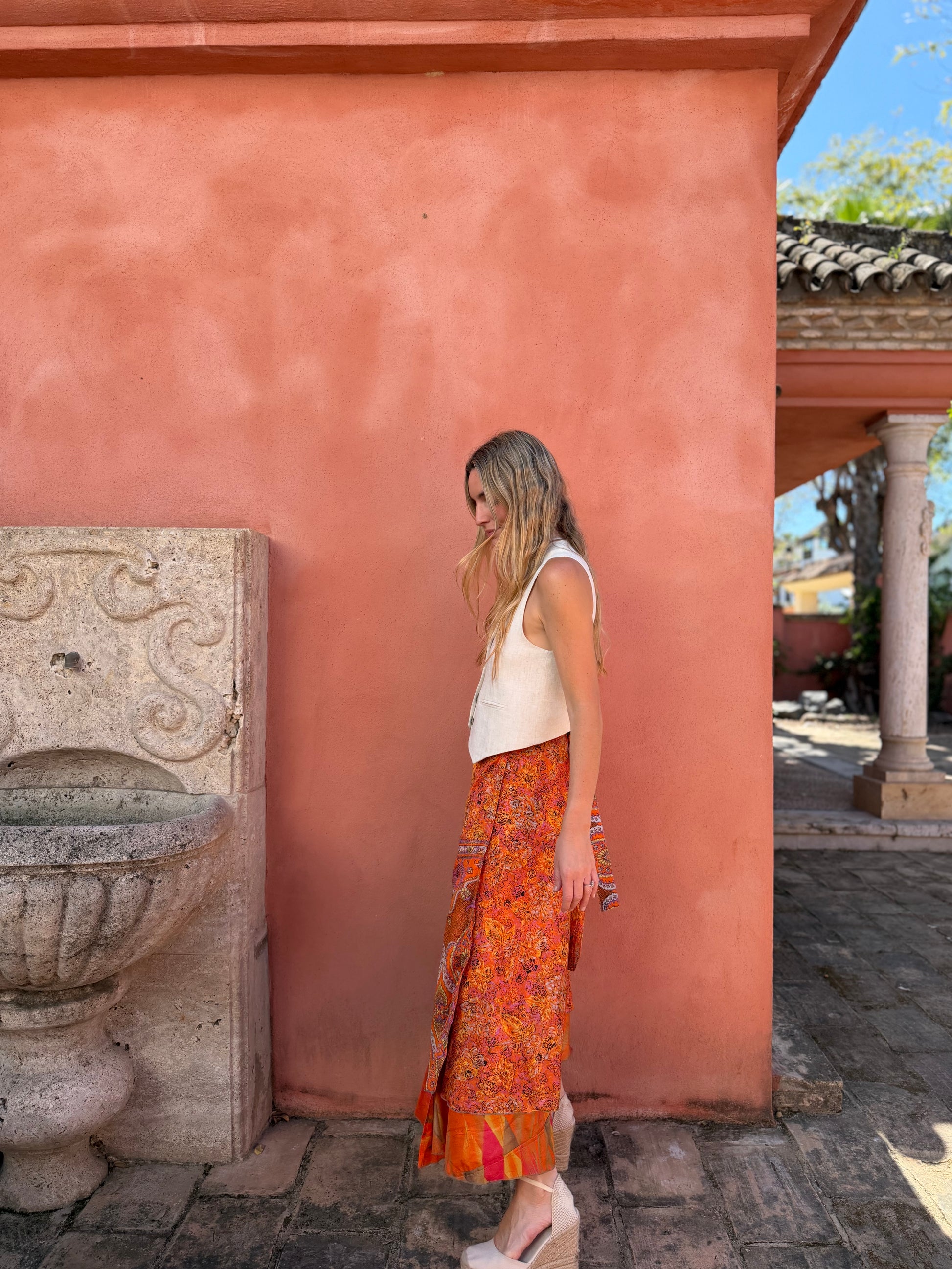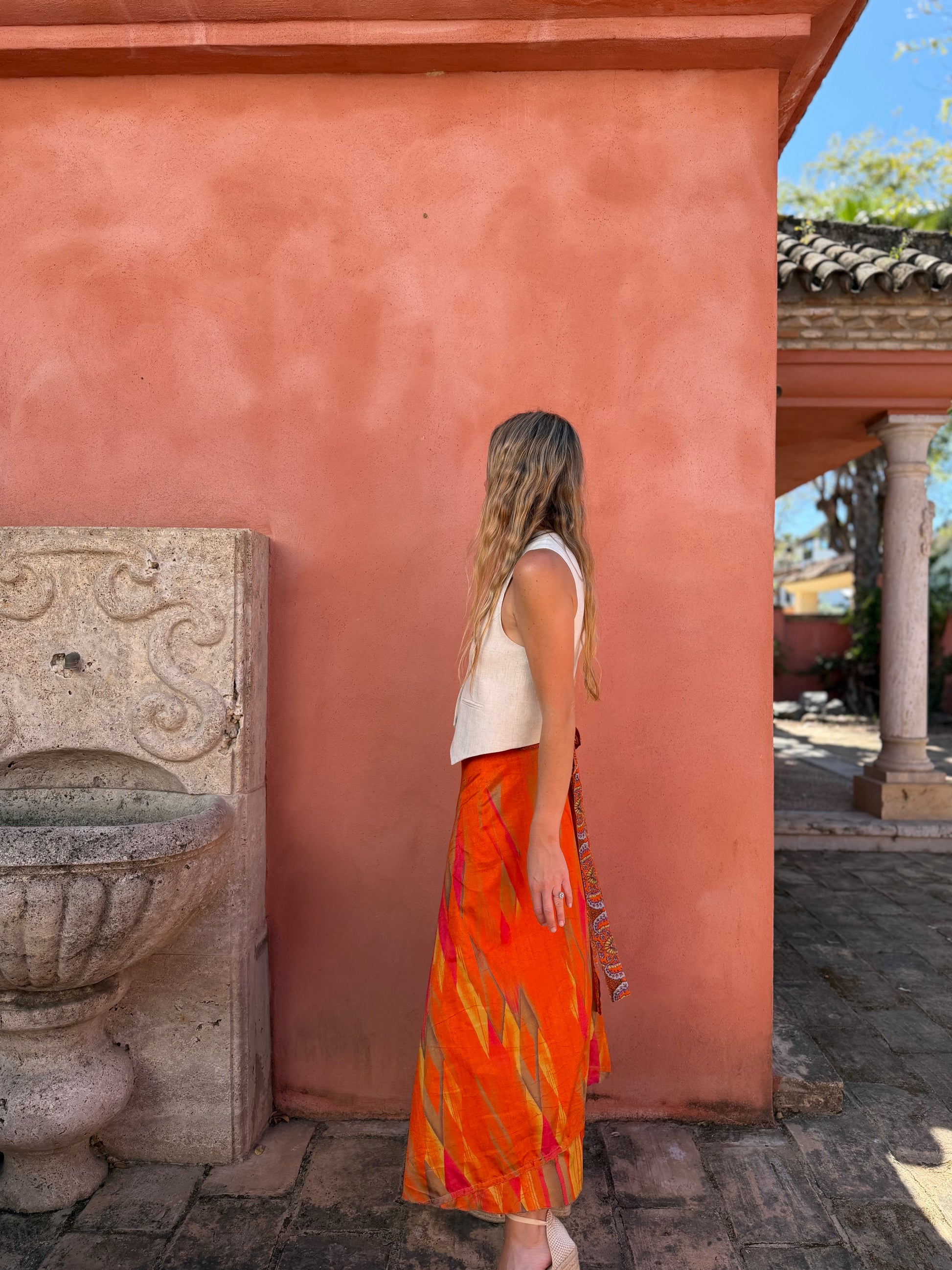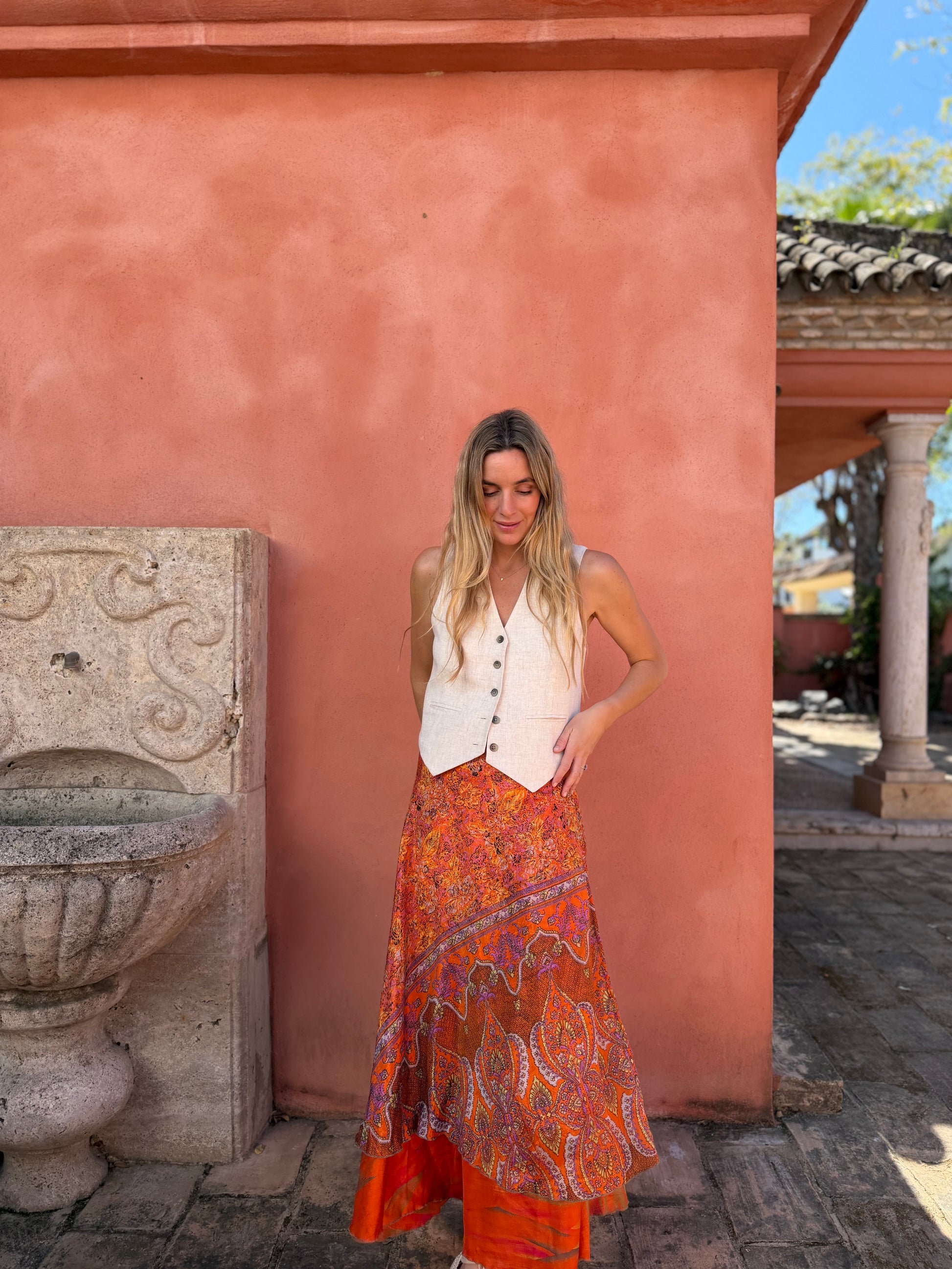 Falda con tejido en seda vintage india. Sólo una por unidad