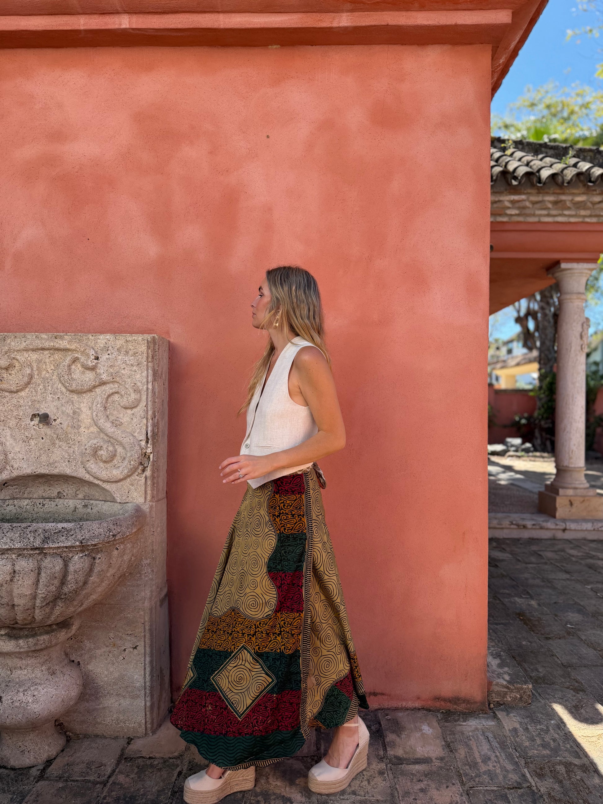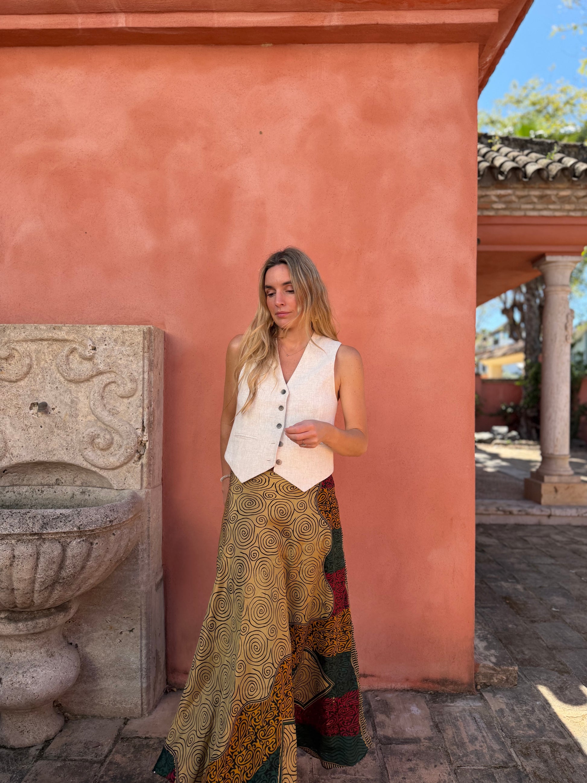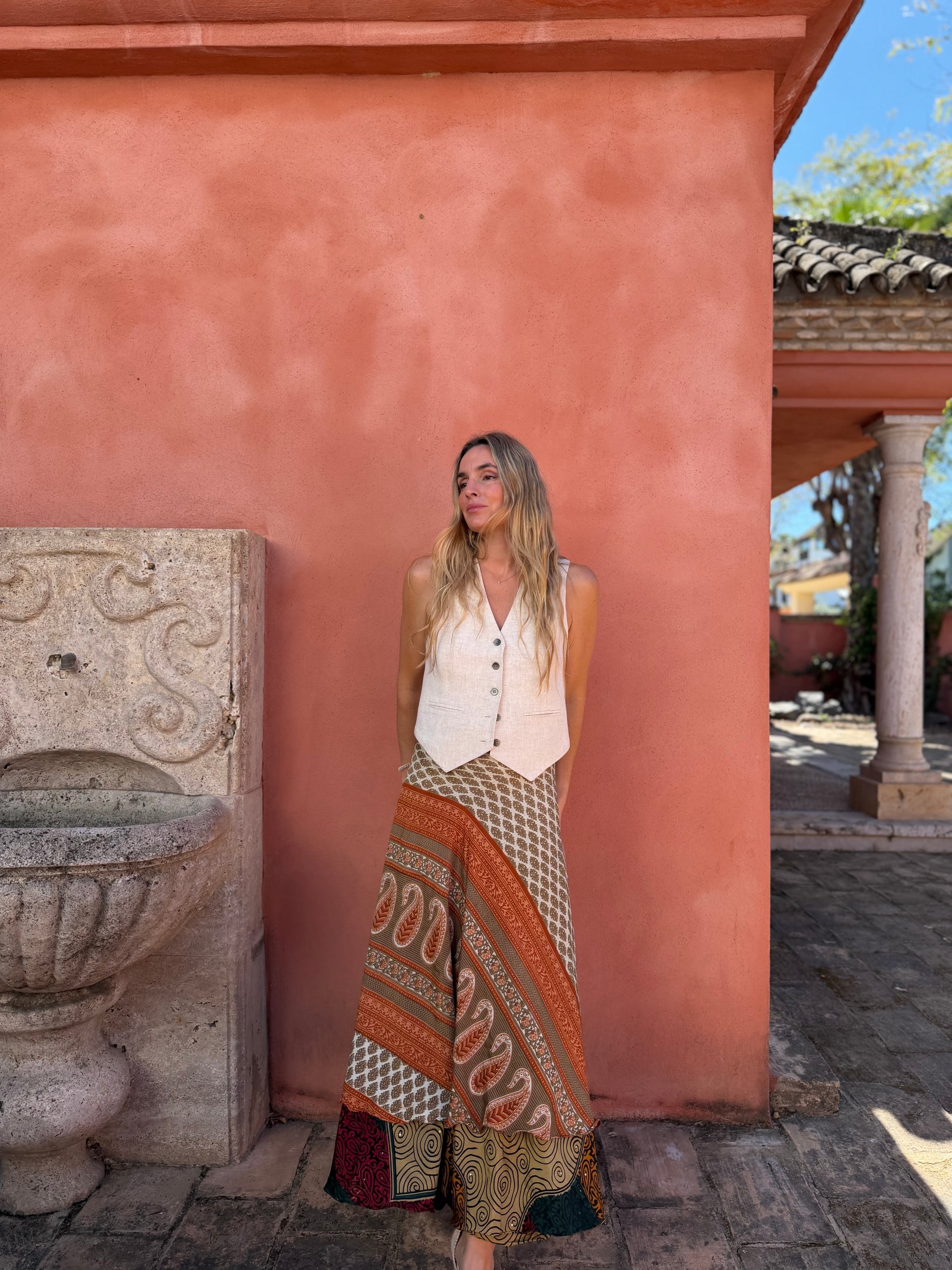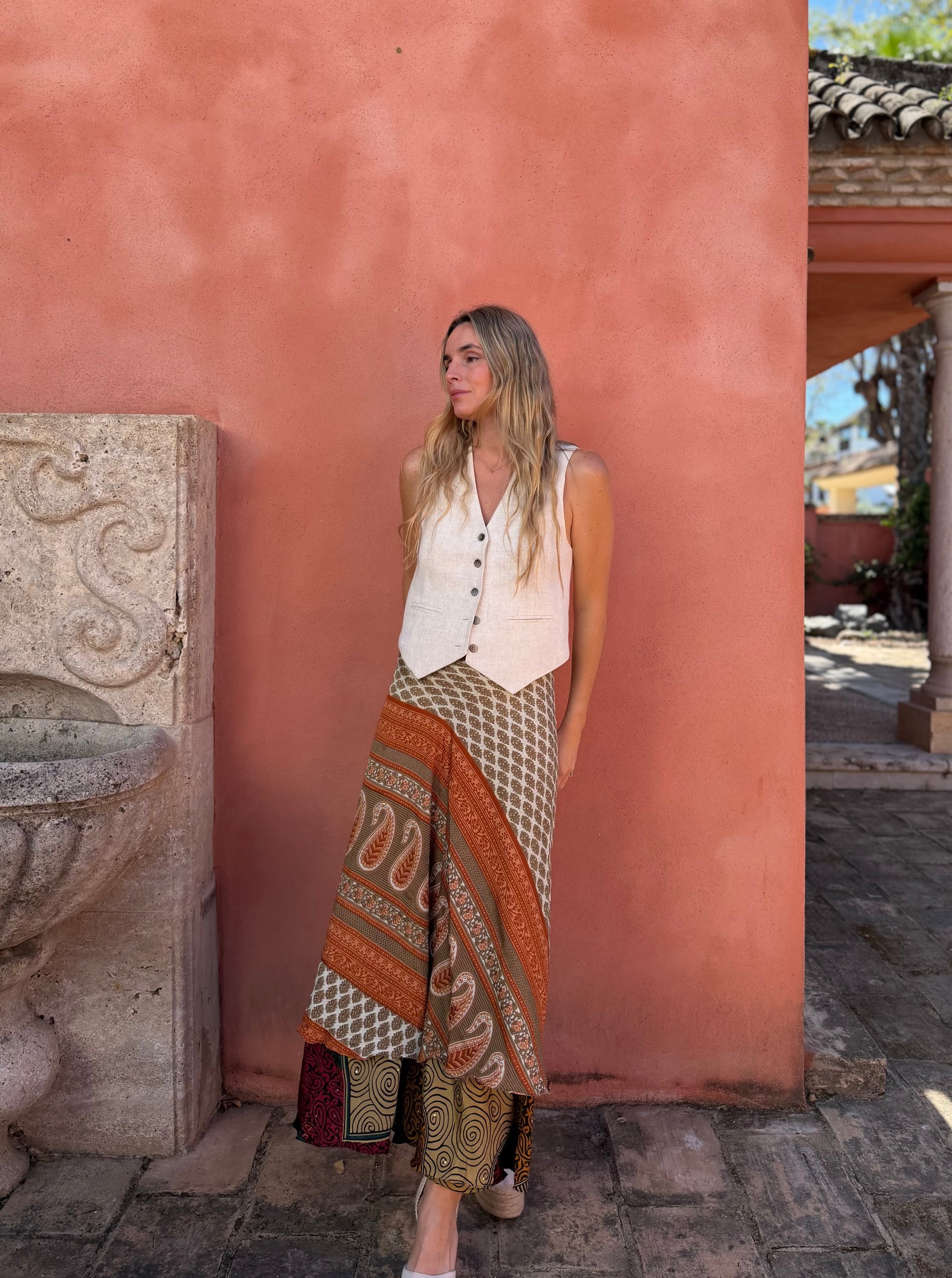 Falda con tejido en seda vintage india. Sólo una por unidad