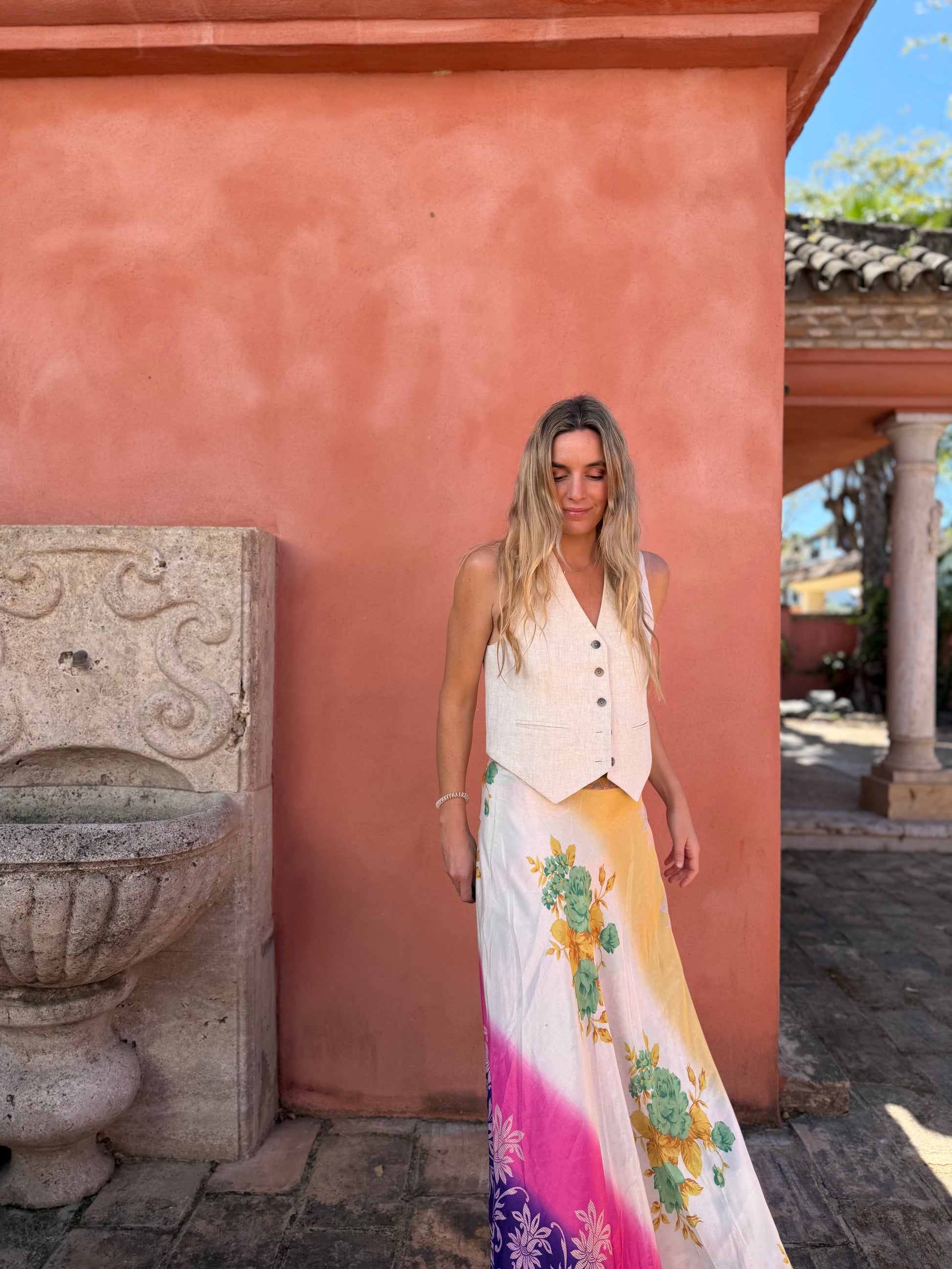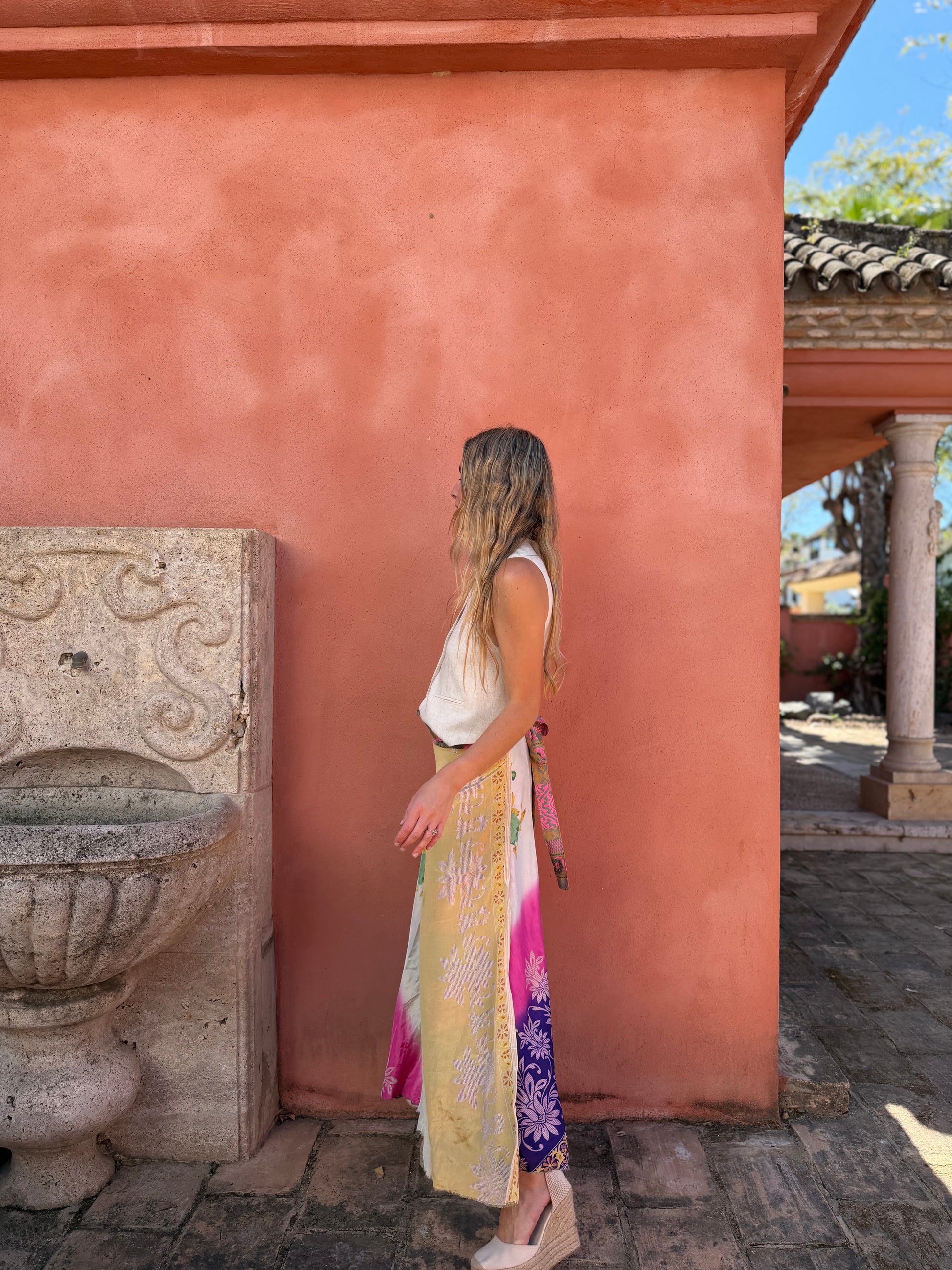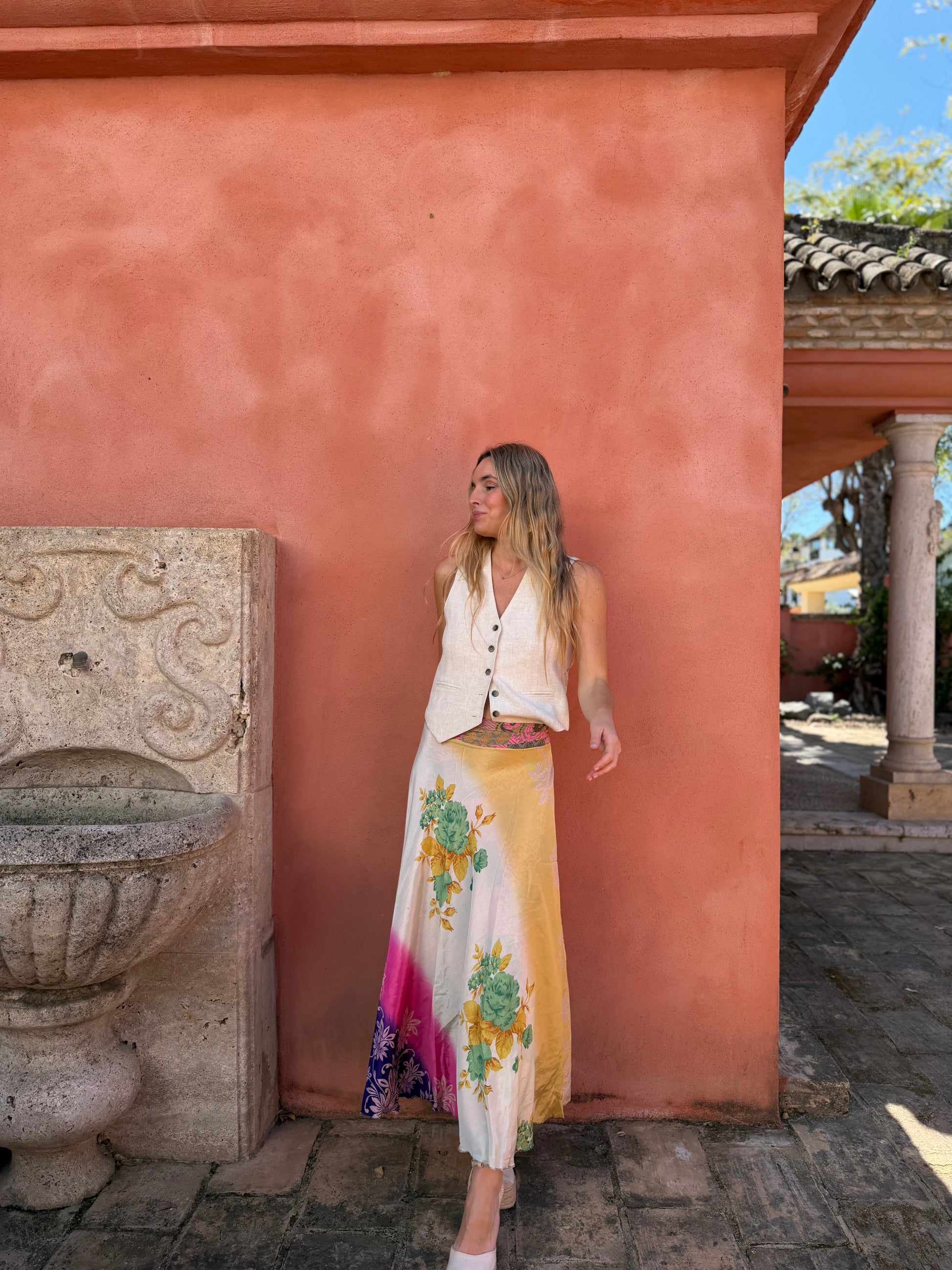 Falda con tejido en seda vintage india. Sólo una por unidad