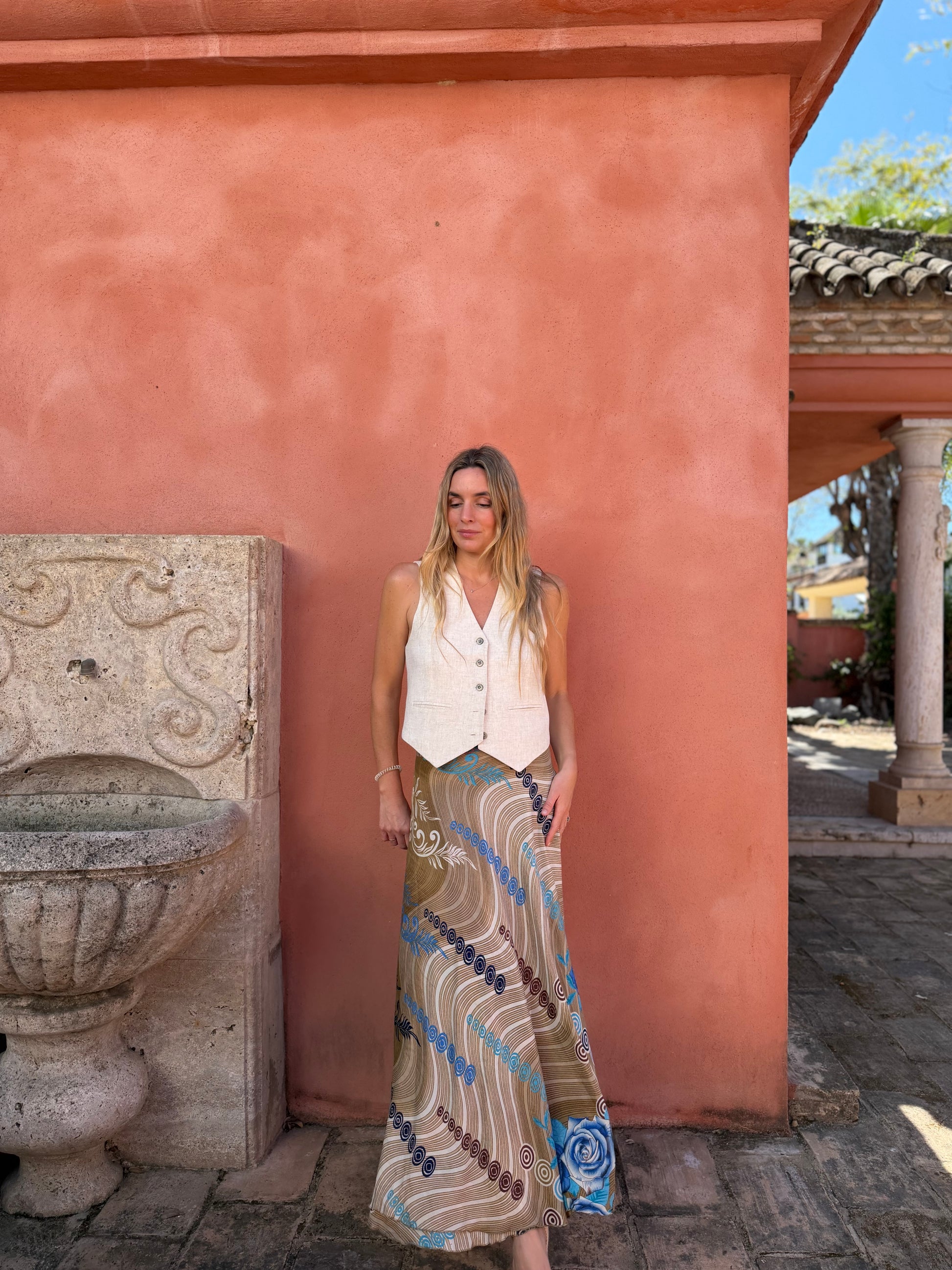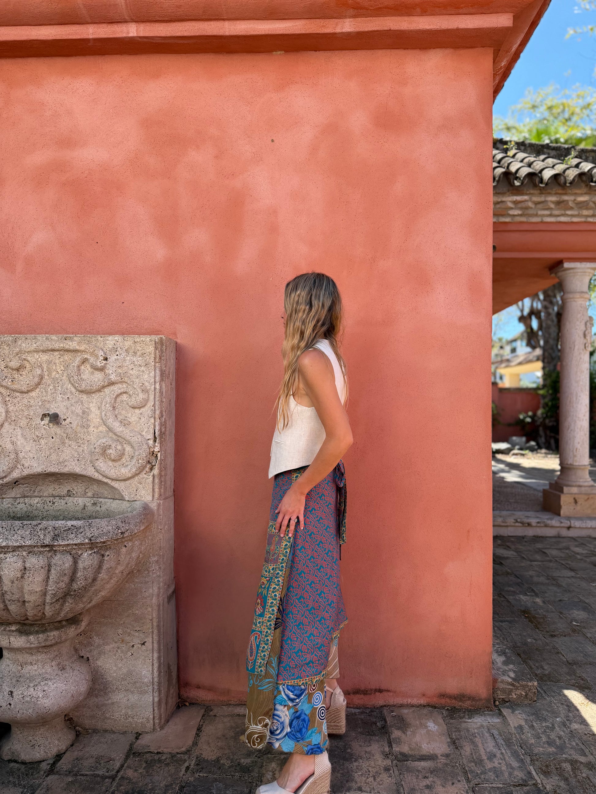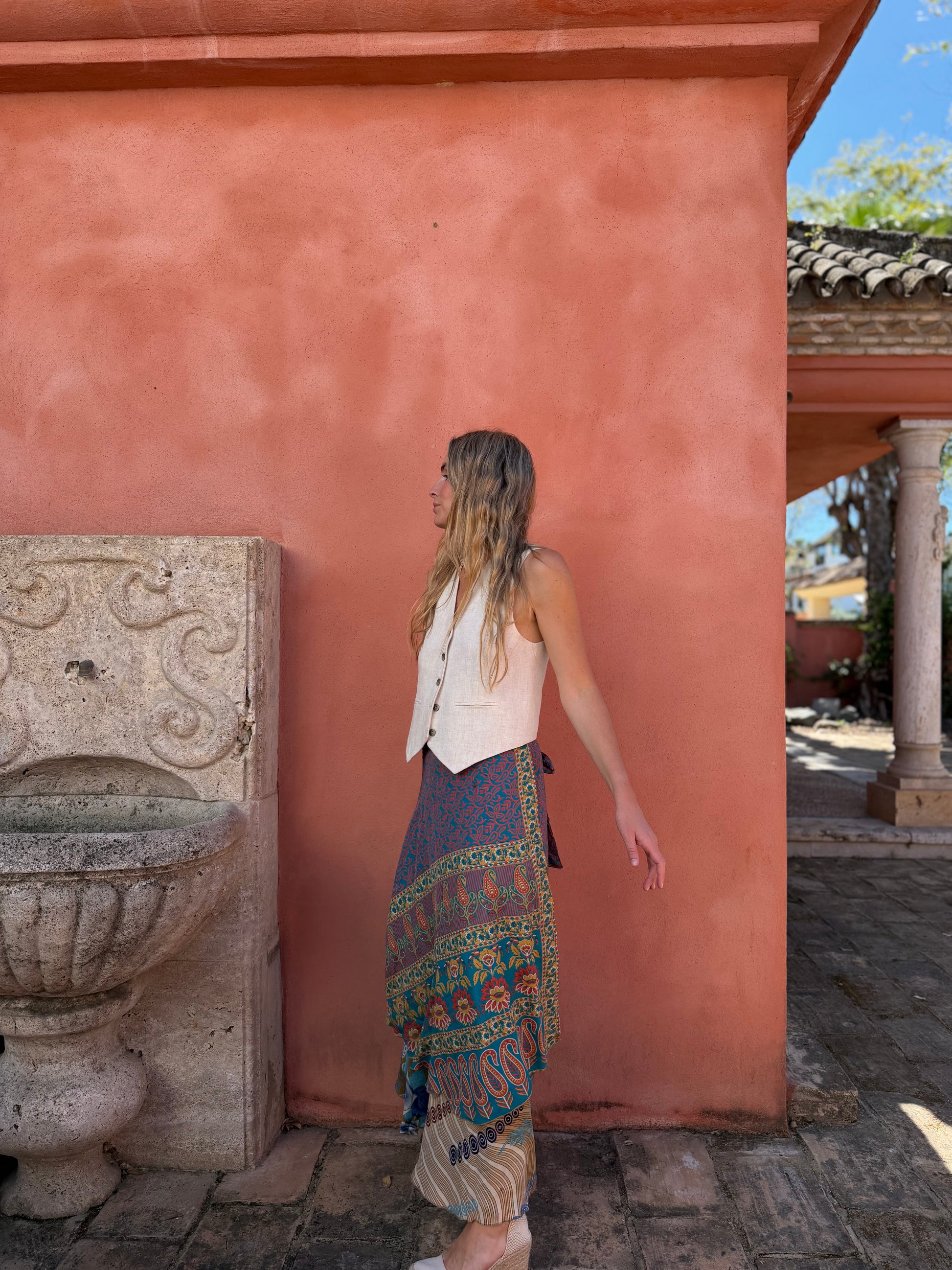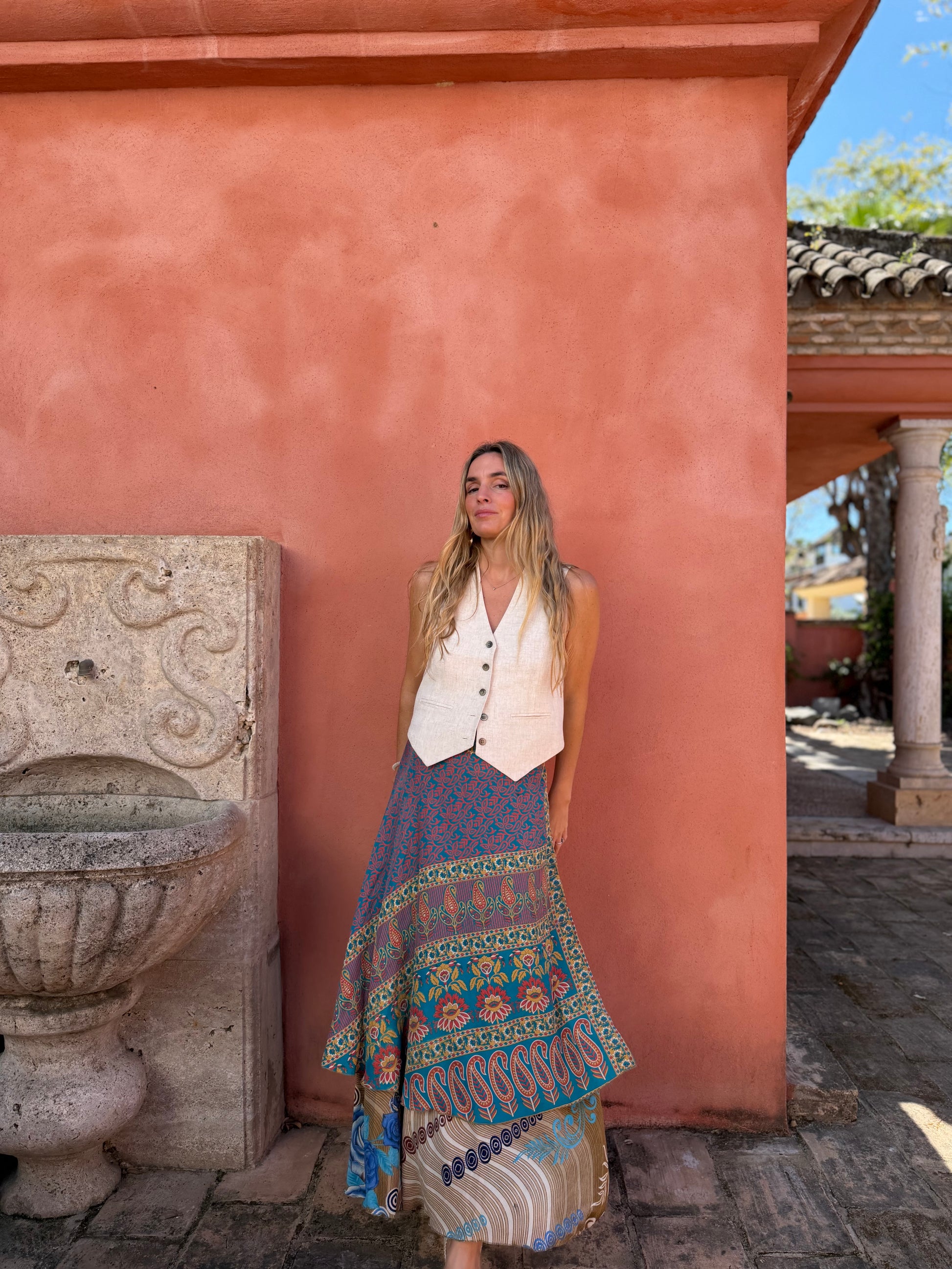 Falda con tejido en seda vintage india. Sólo una por unidad