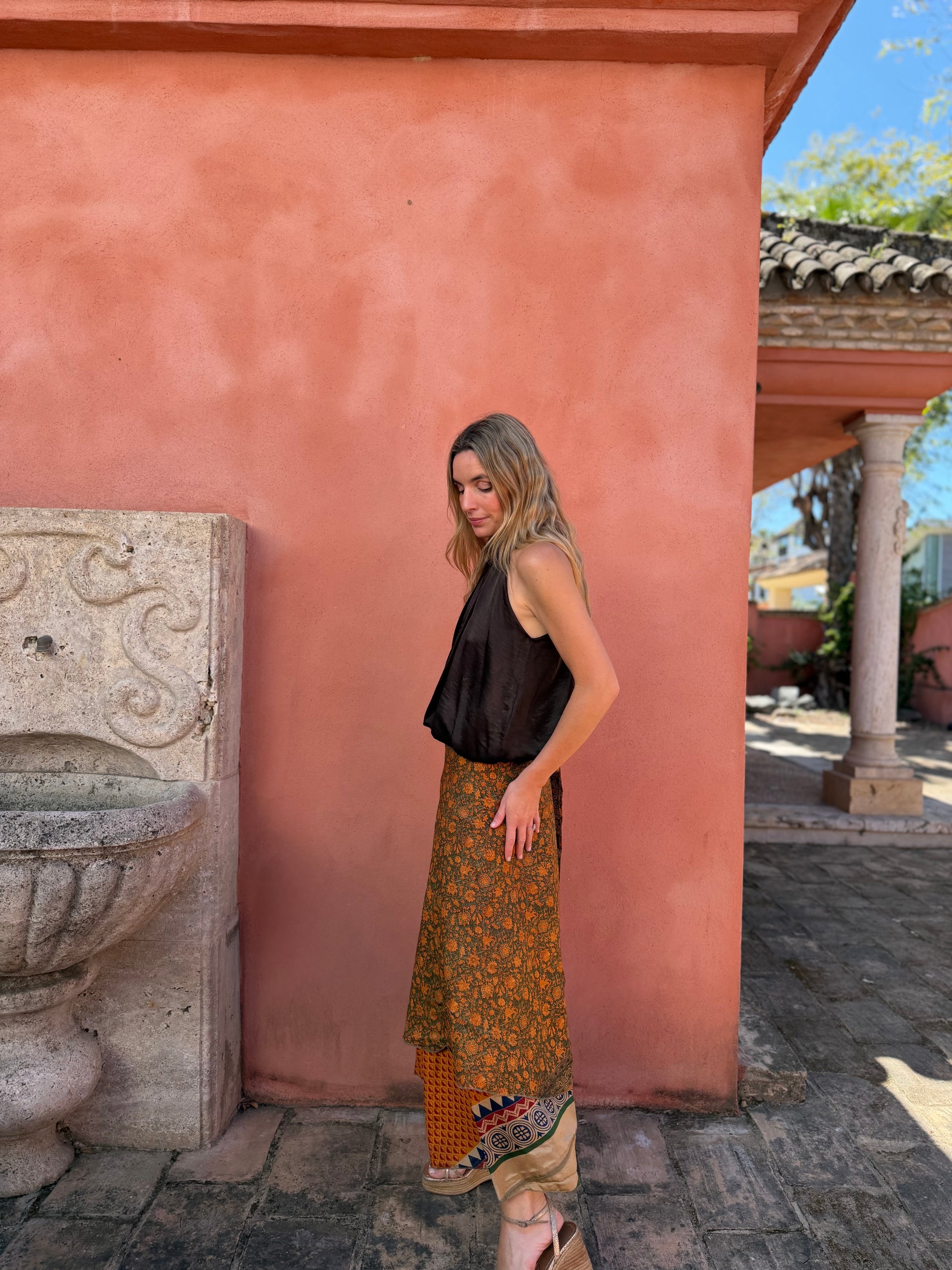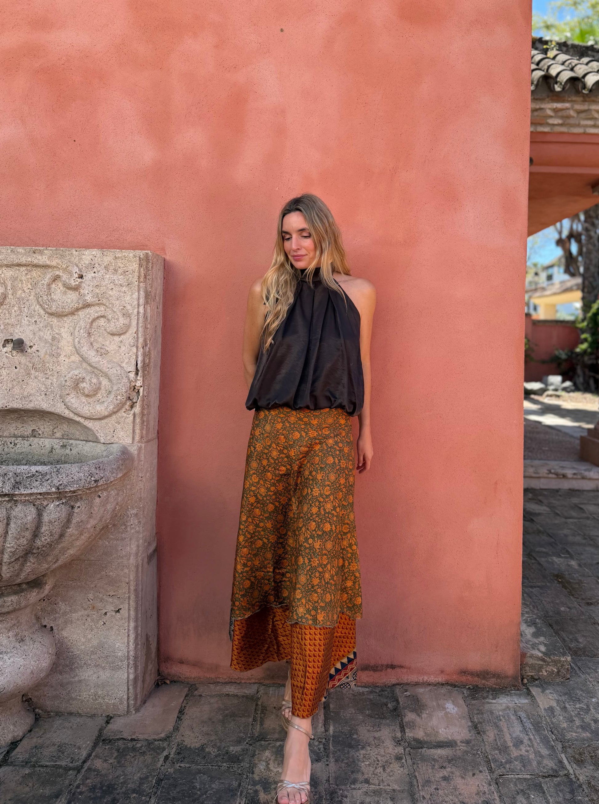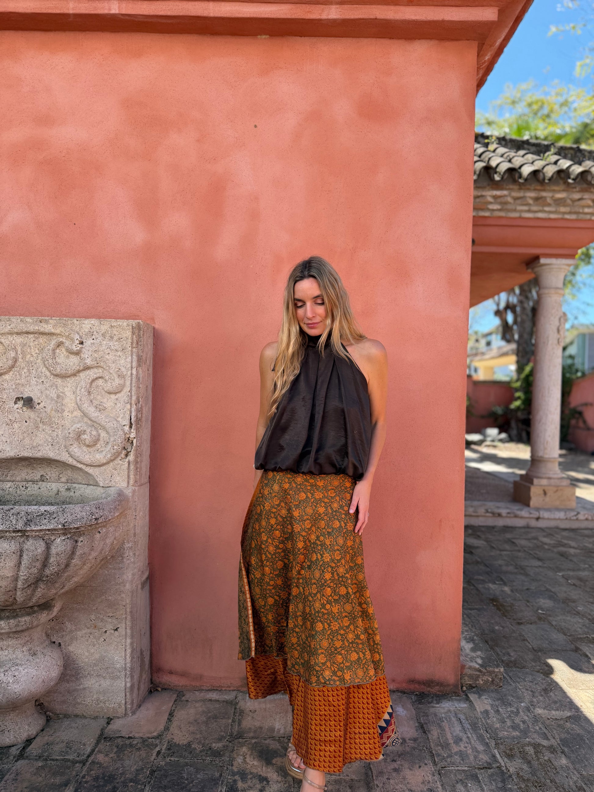 Falda con tejido en seda vintage india. Sólo una por unidad