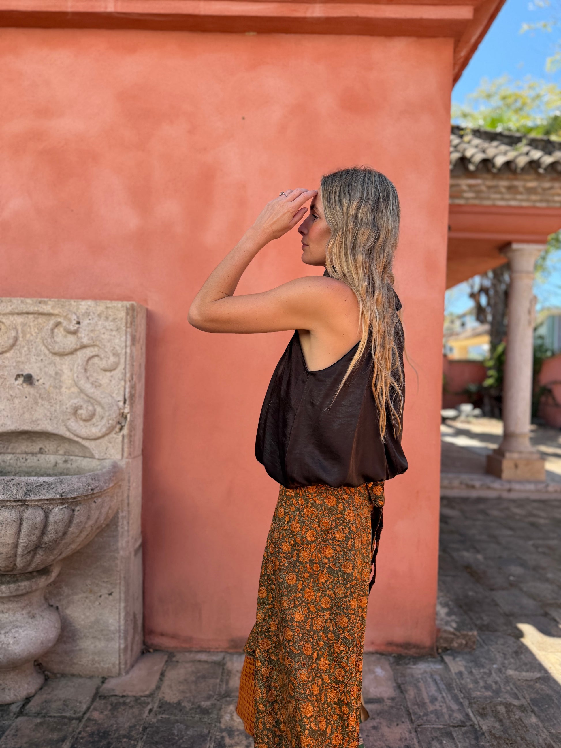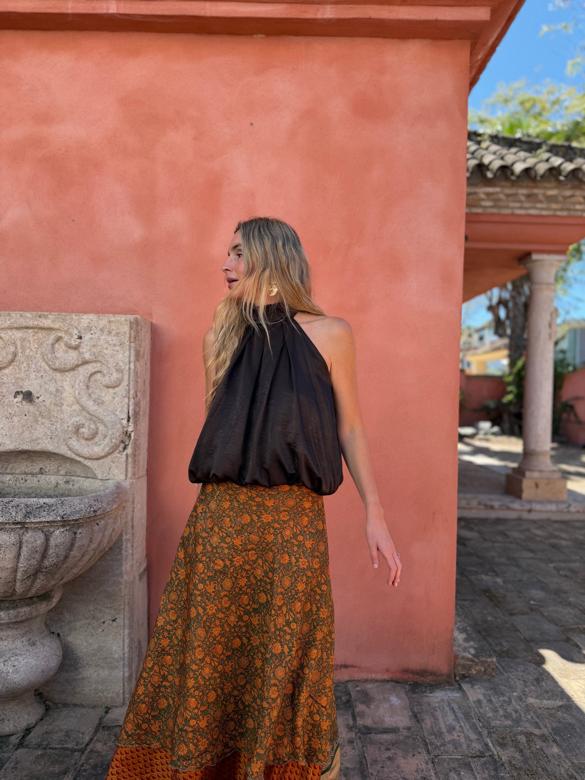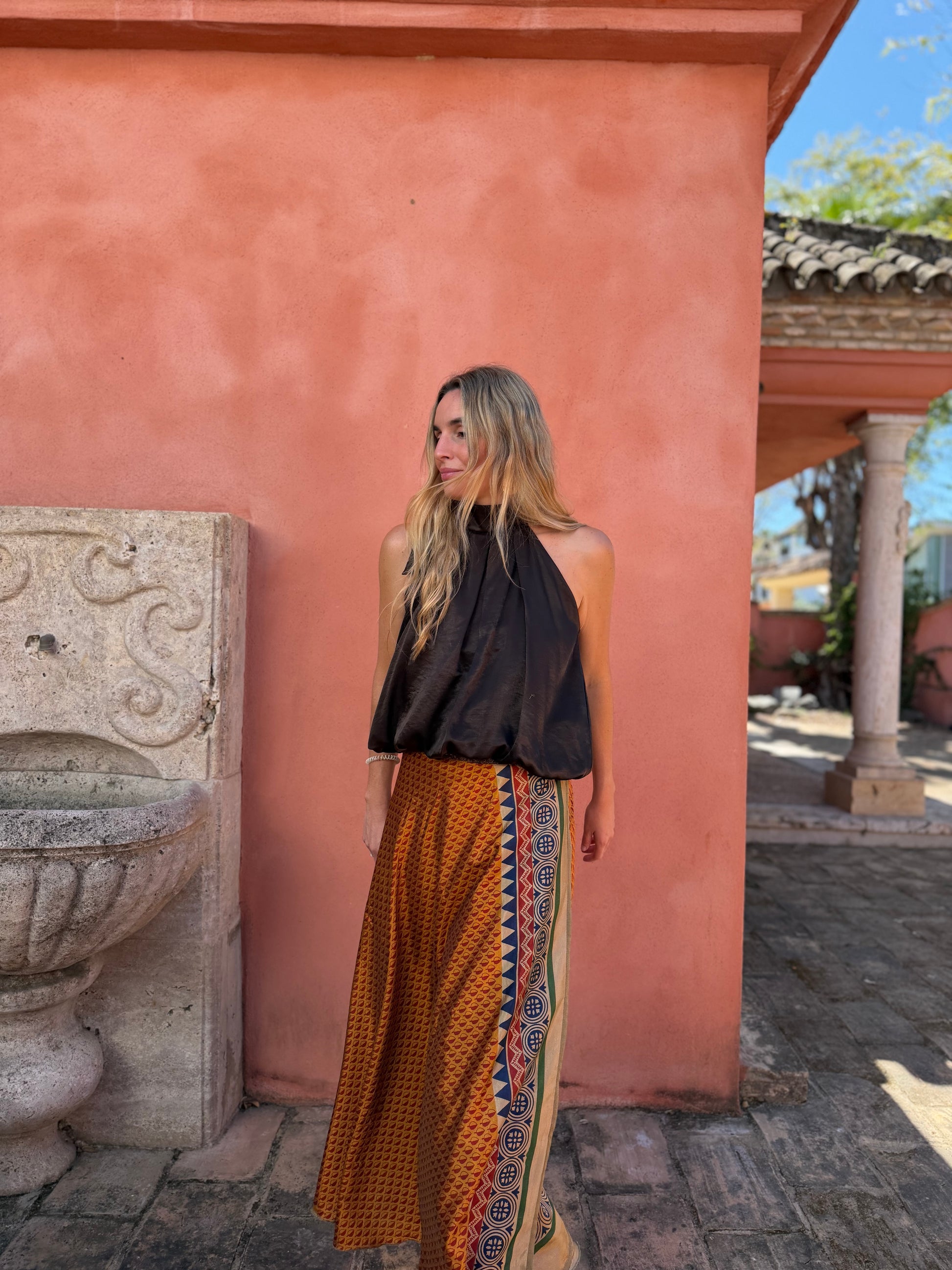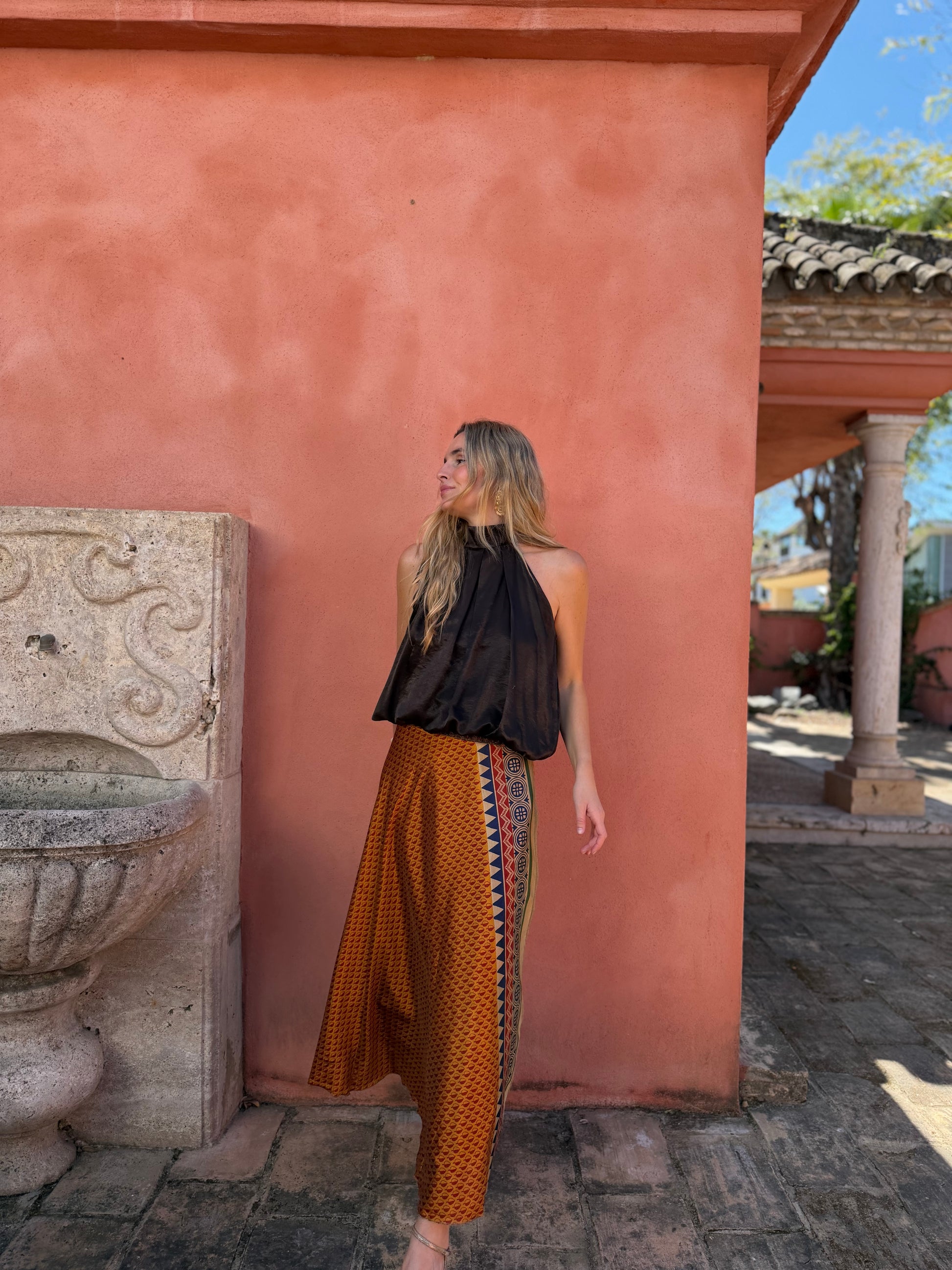 Falda con tejido en seda vintage india. Sólo una por unidad