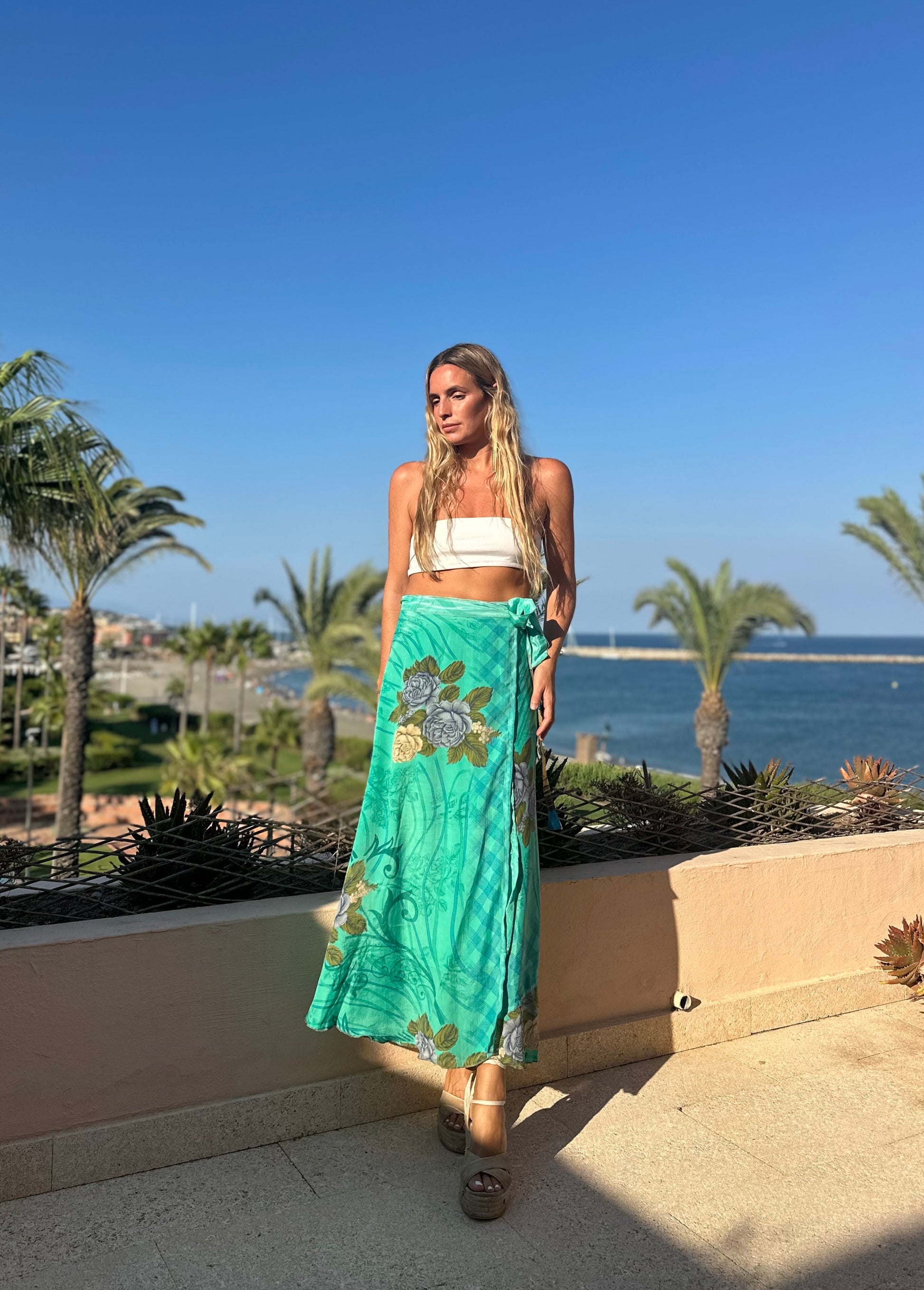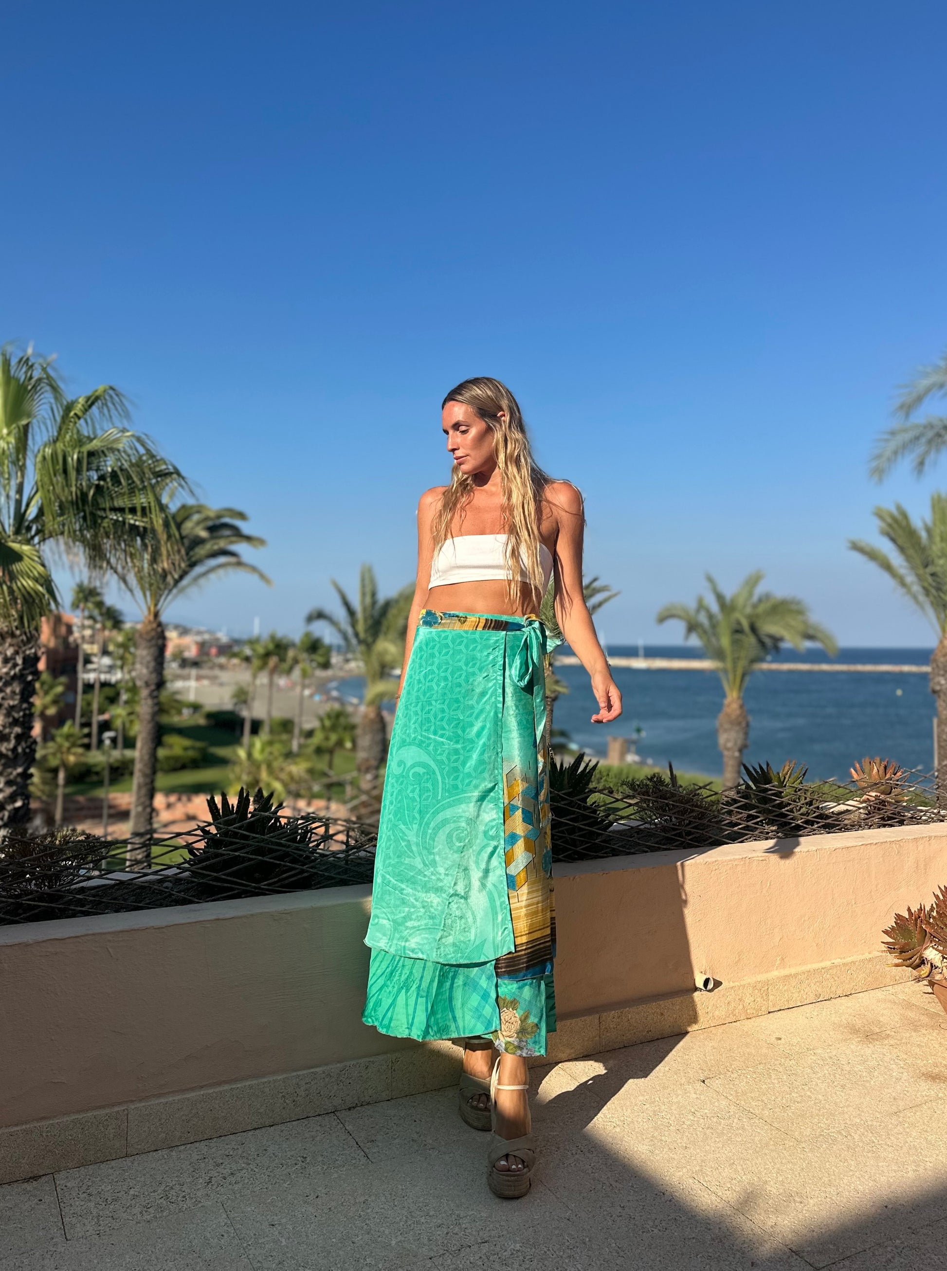 Falda con tejido en seda vintage india. Sólo una por unidad
