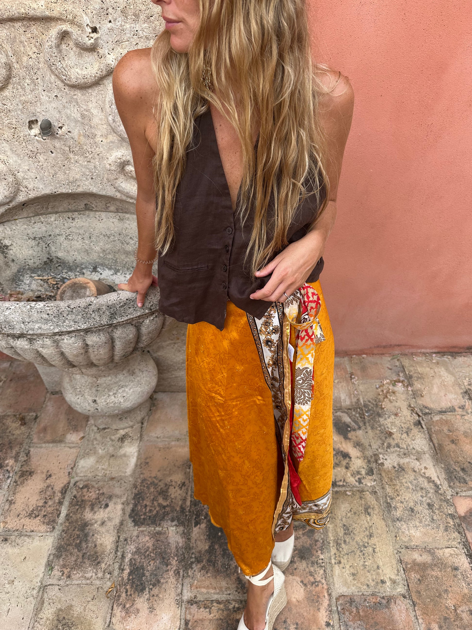 Falda con tejido en seda vintage india. Sólo una por unidad