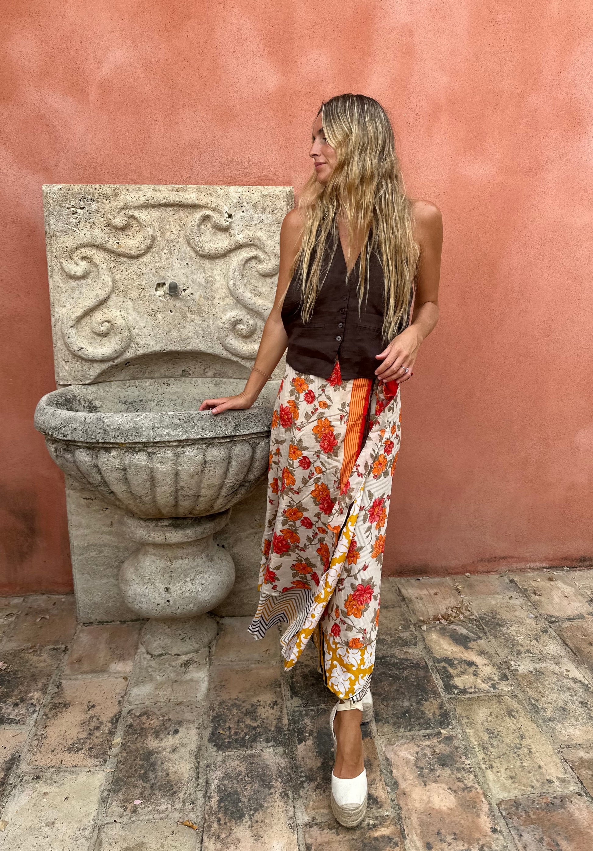 Falda con tejido en seda vintage india. Sólo una por unidad