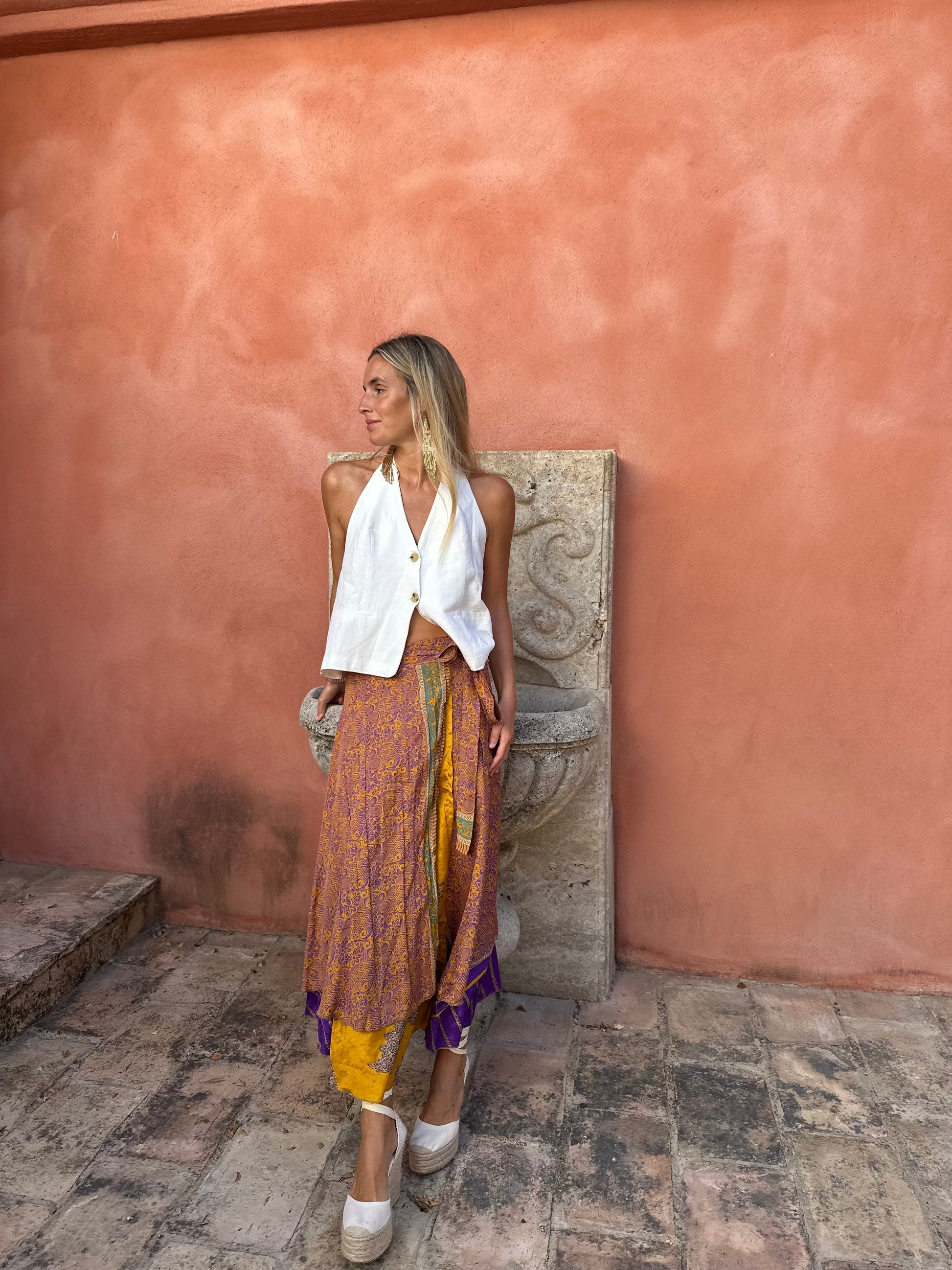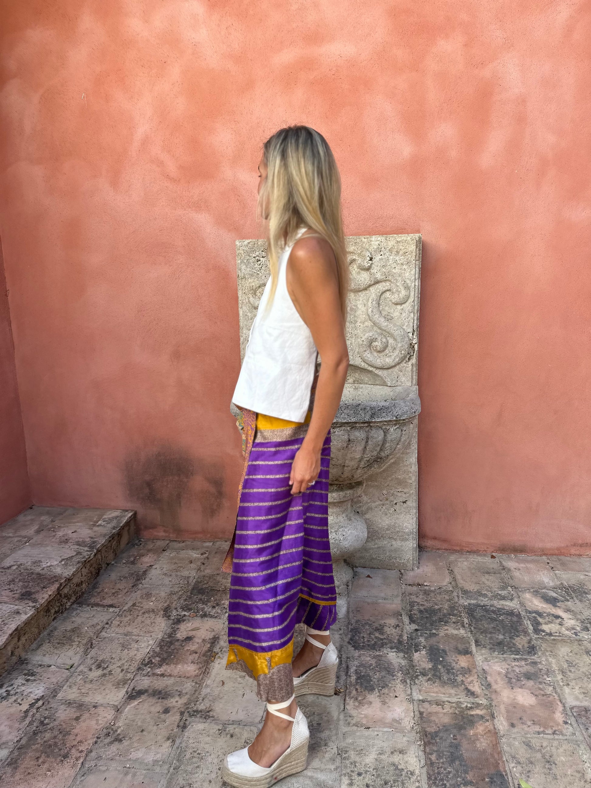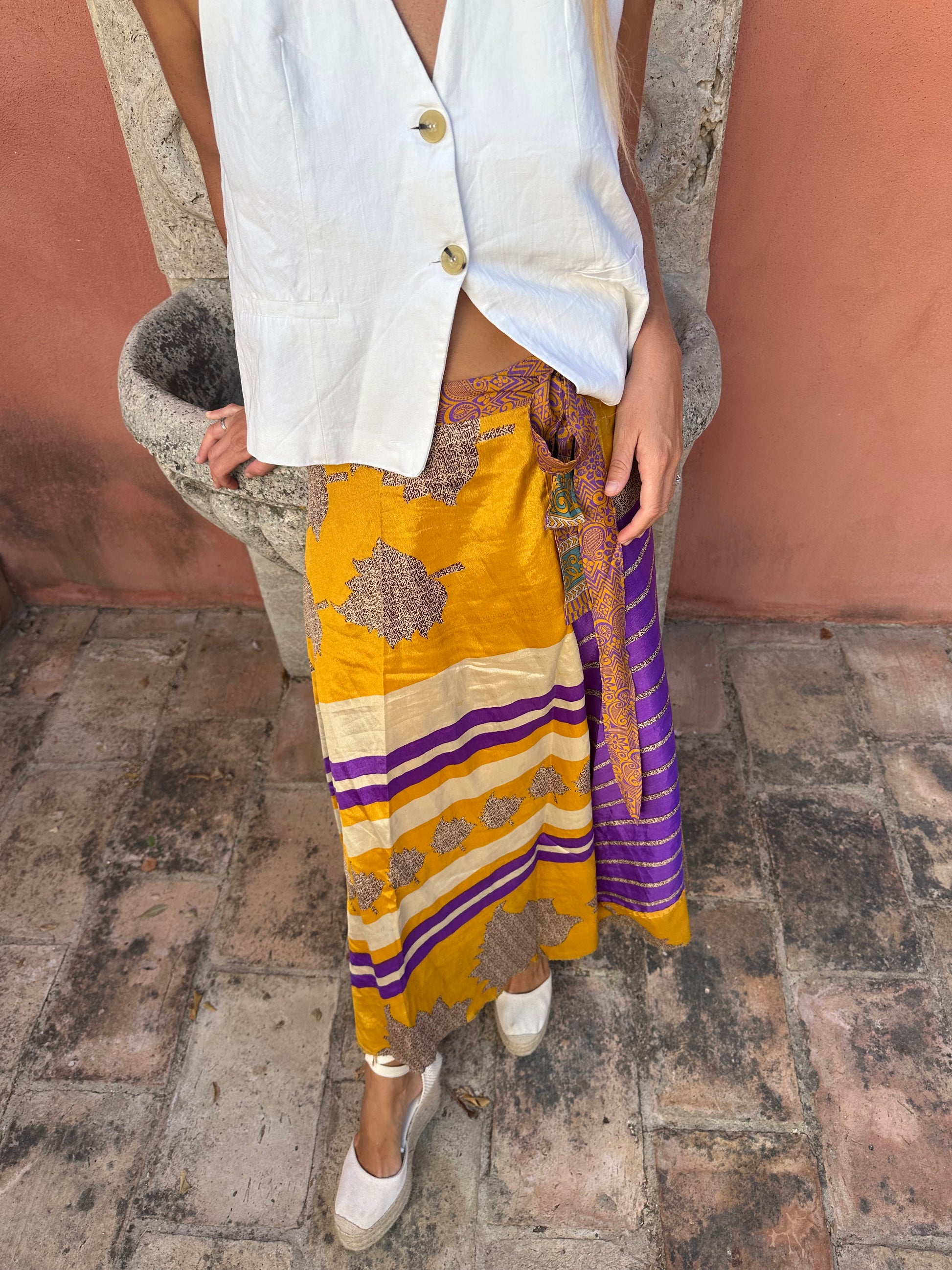 Falda con tejido en seda vintage india. Sólo una por unidad