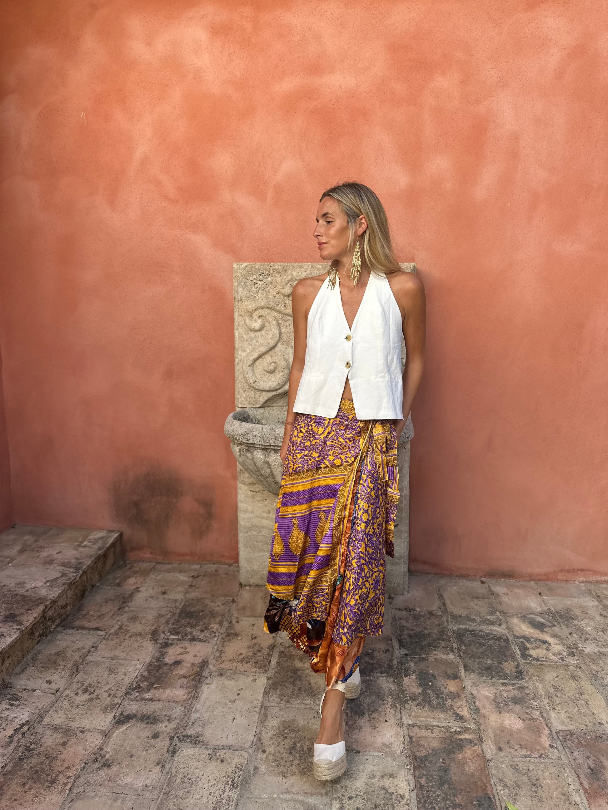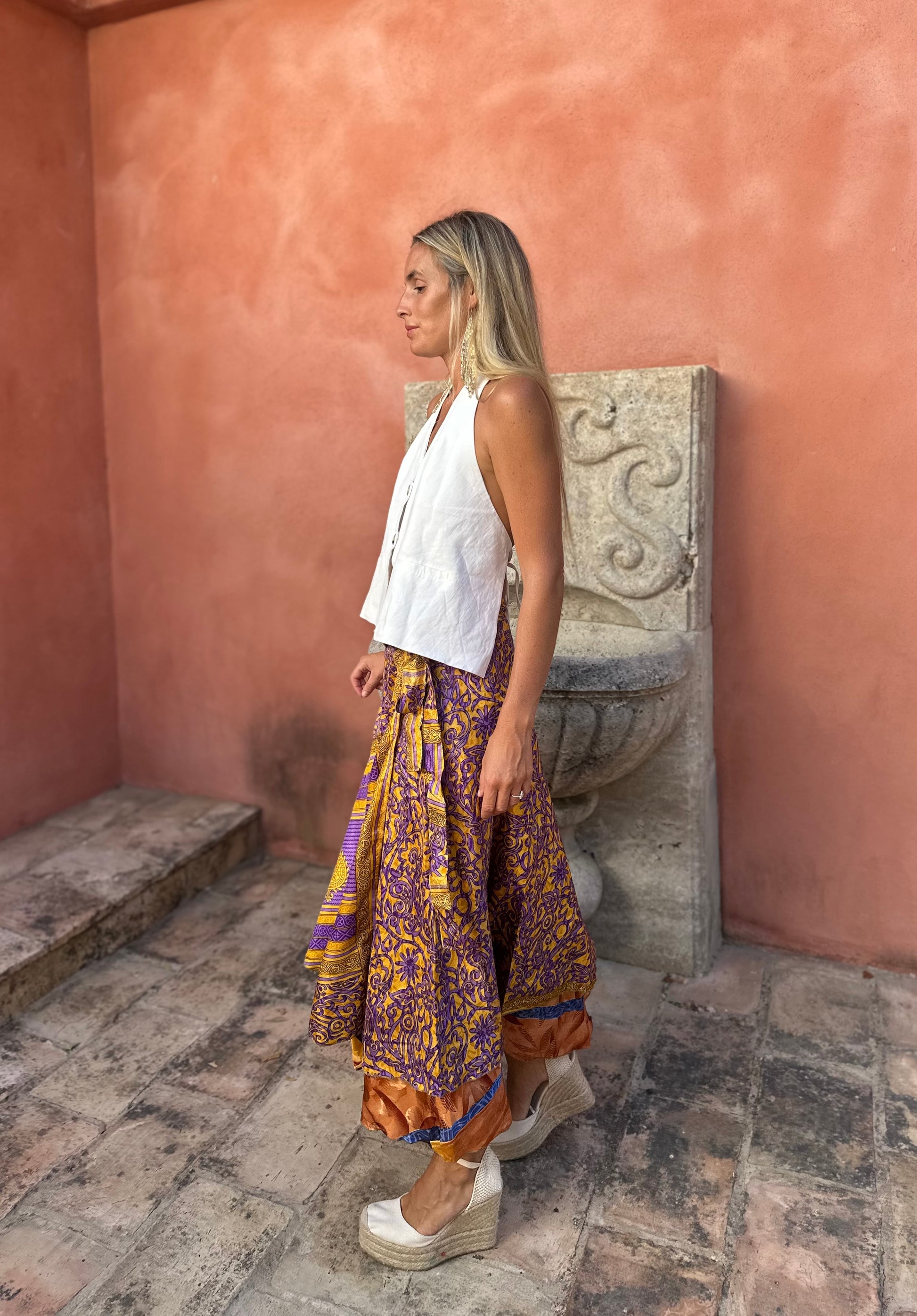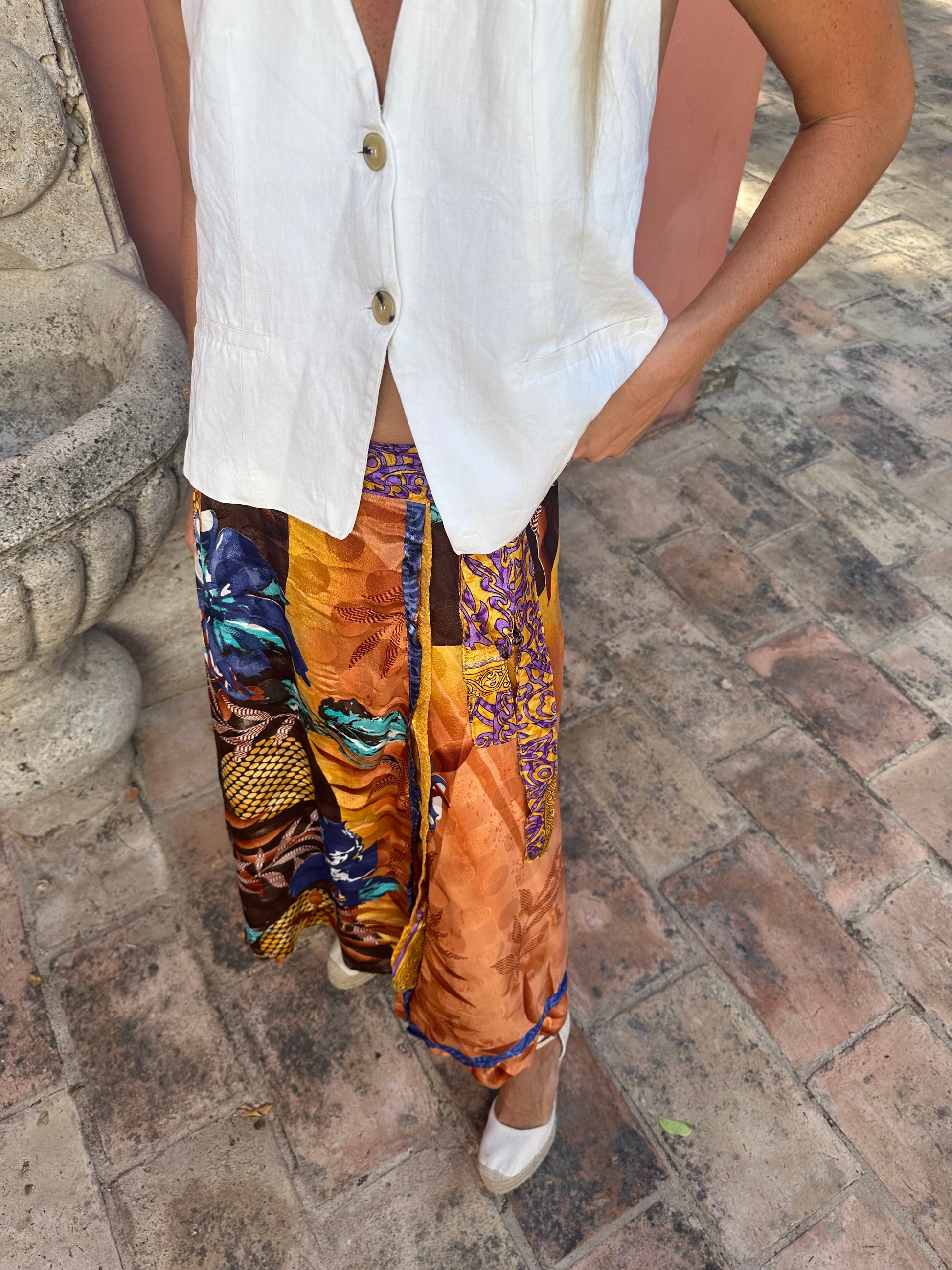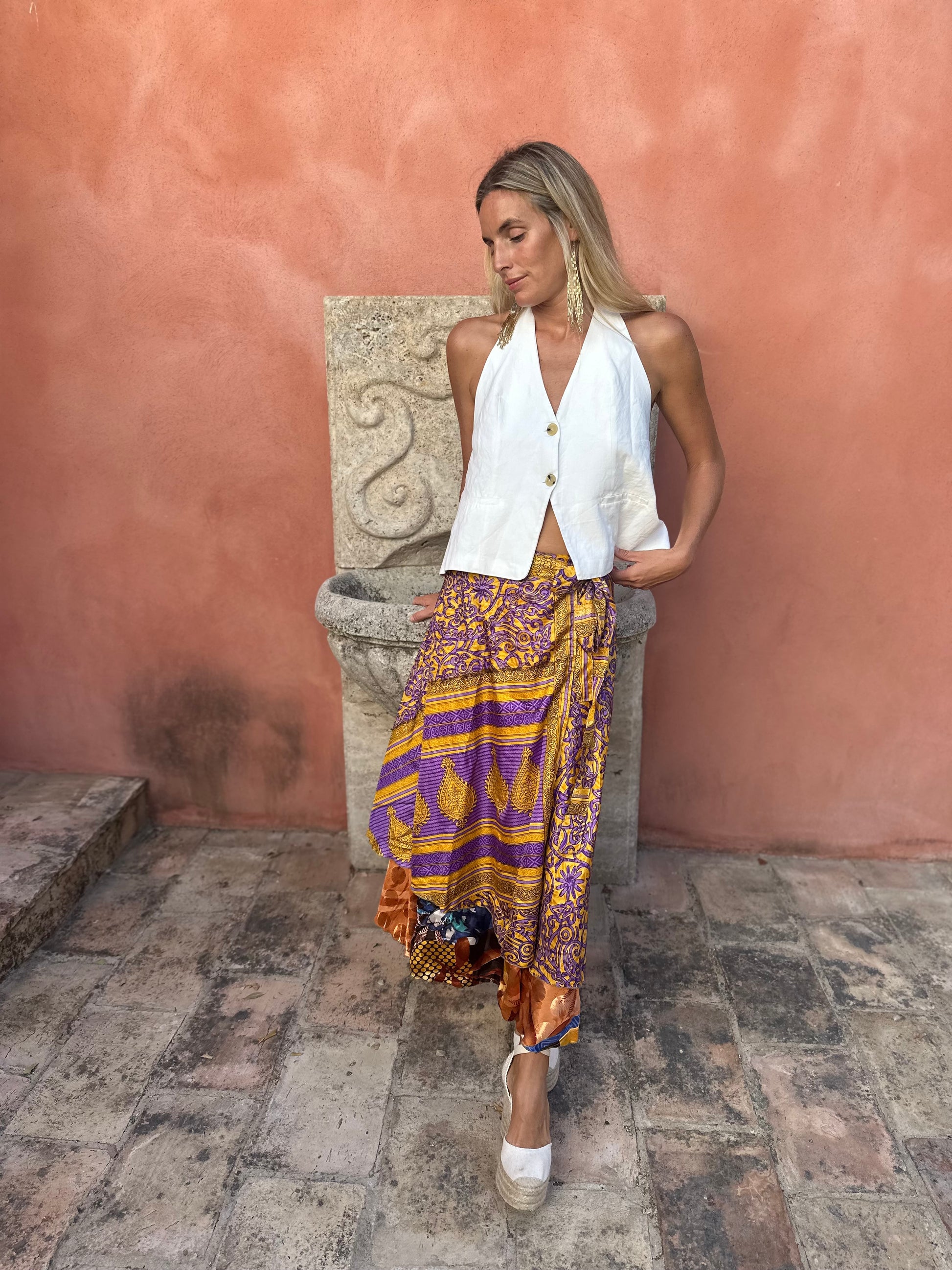 Falda con tejido en seda vintage india. Sólo una por unidad