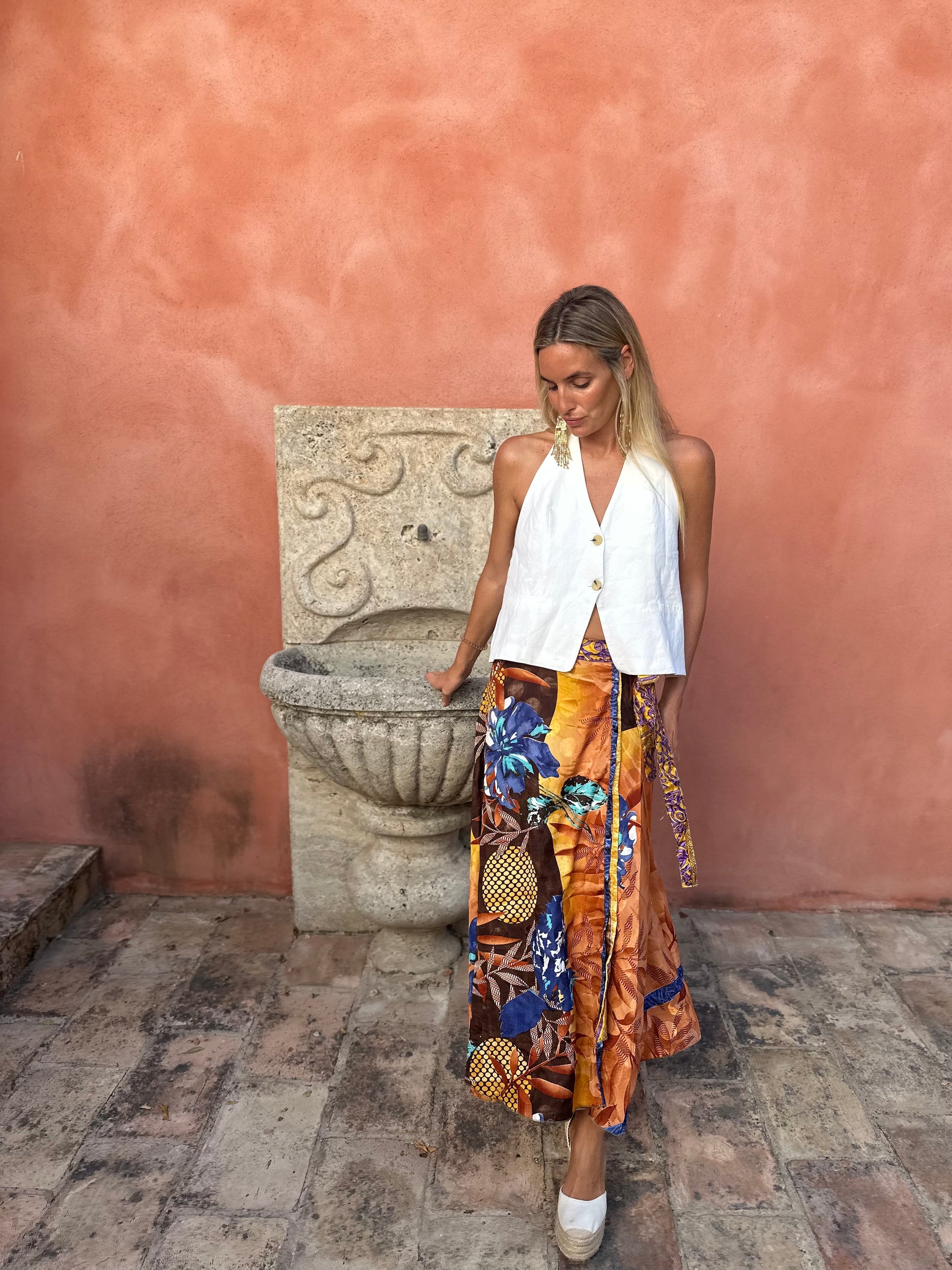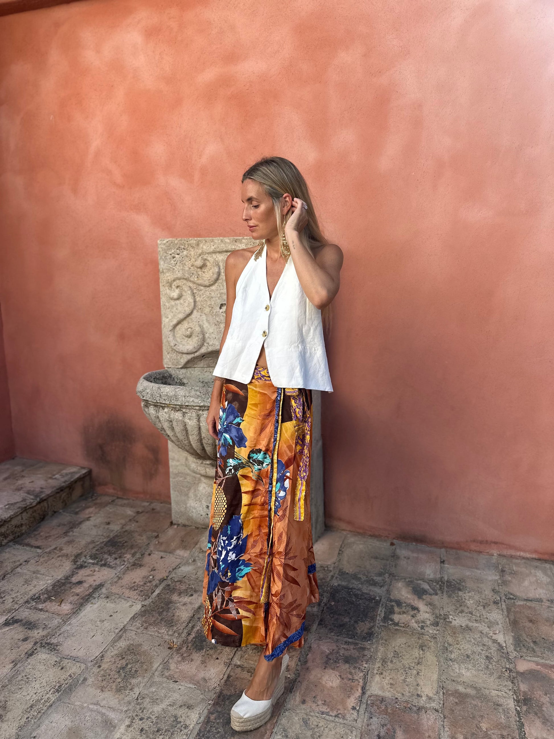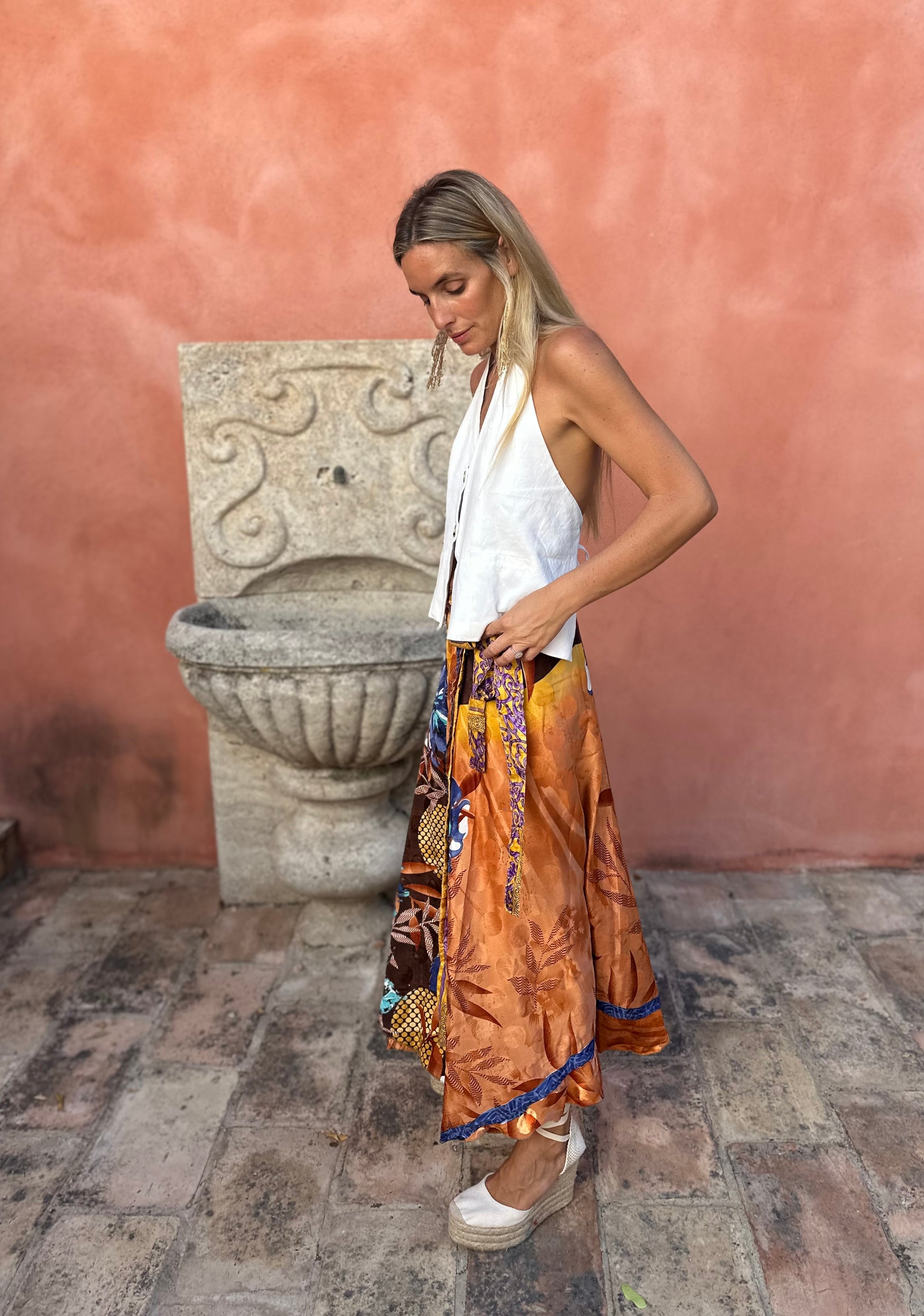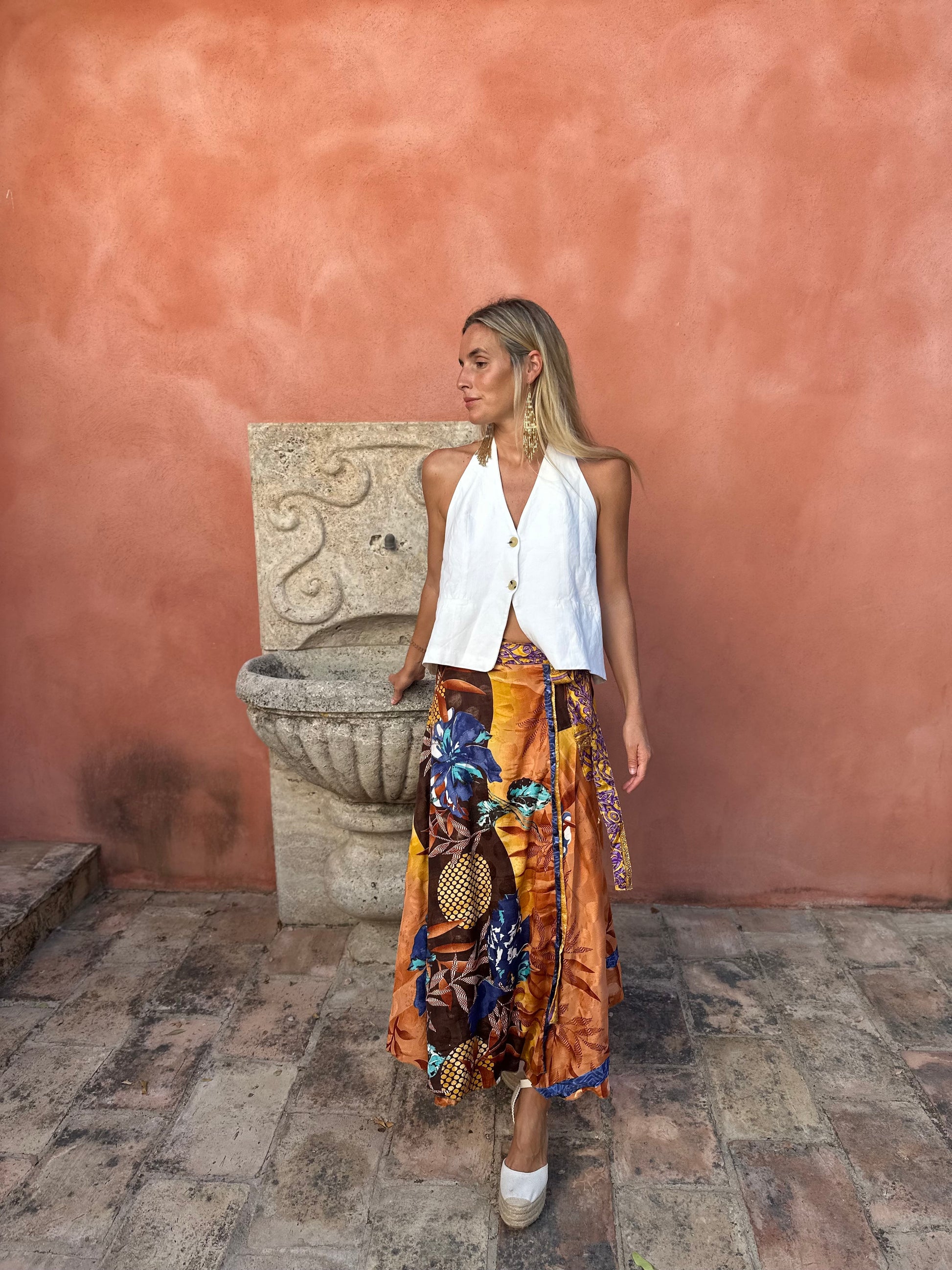 Falda con tejido en seda vintage india. Sólo una por unidad