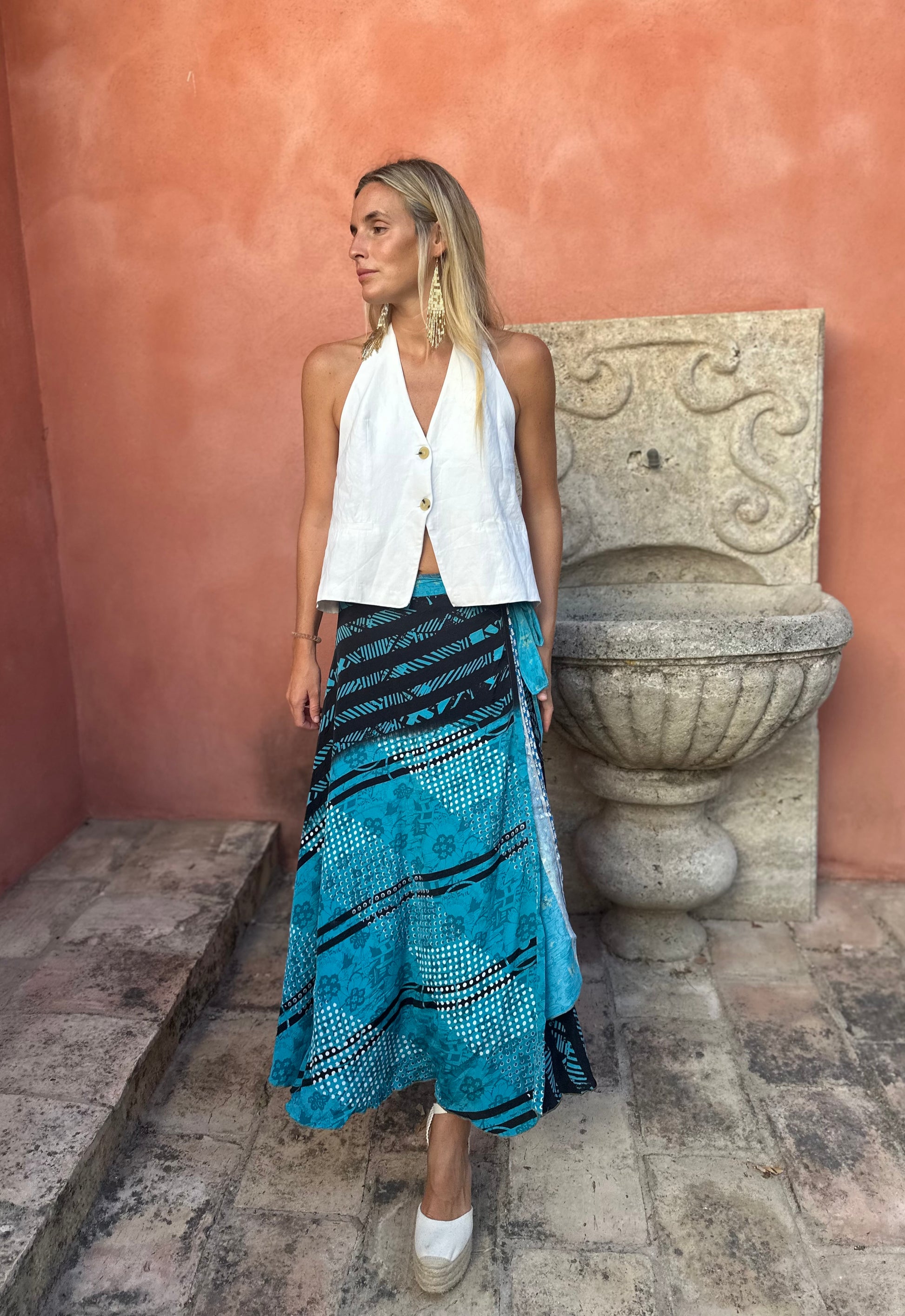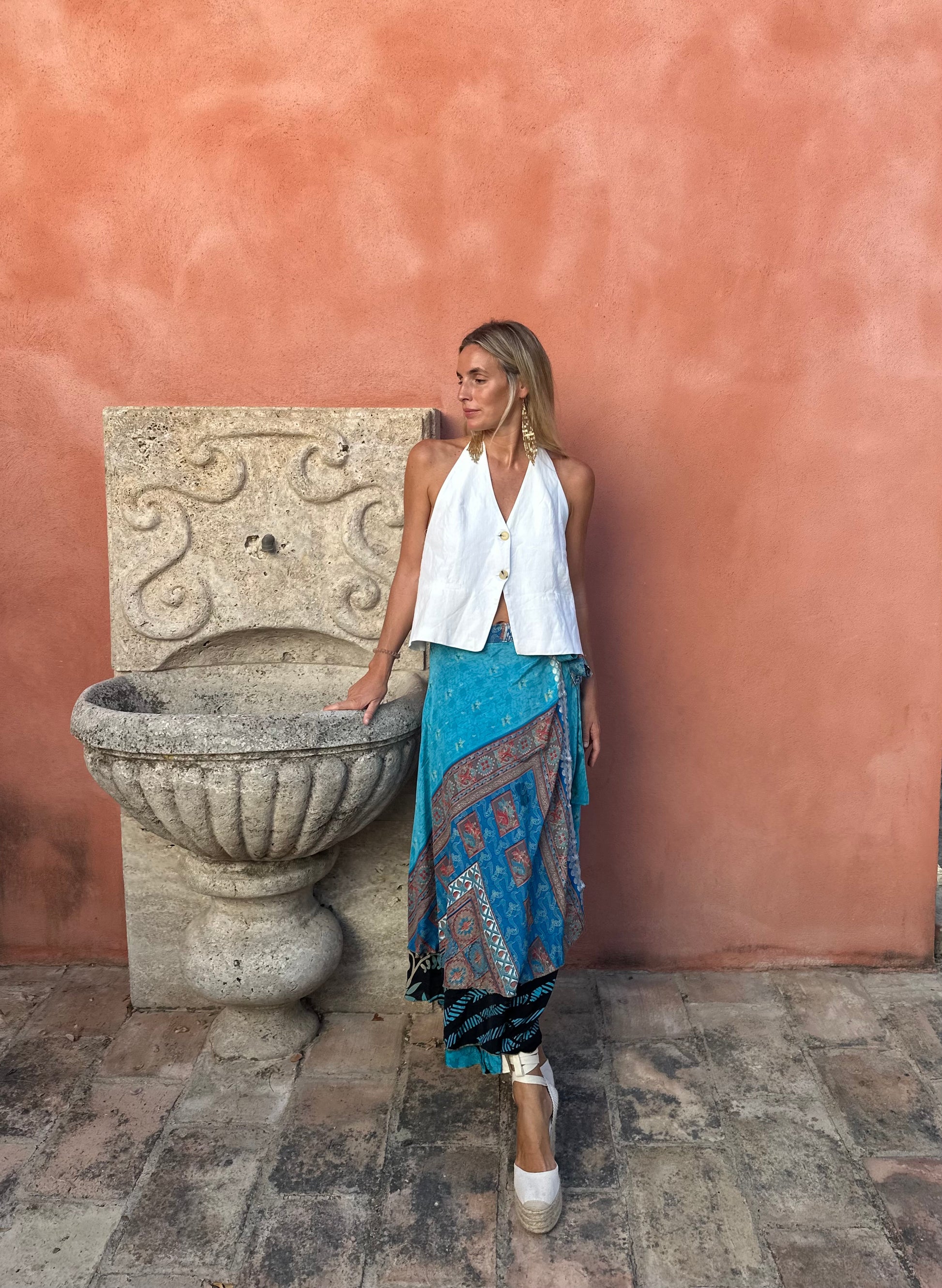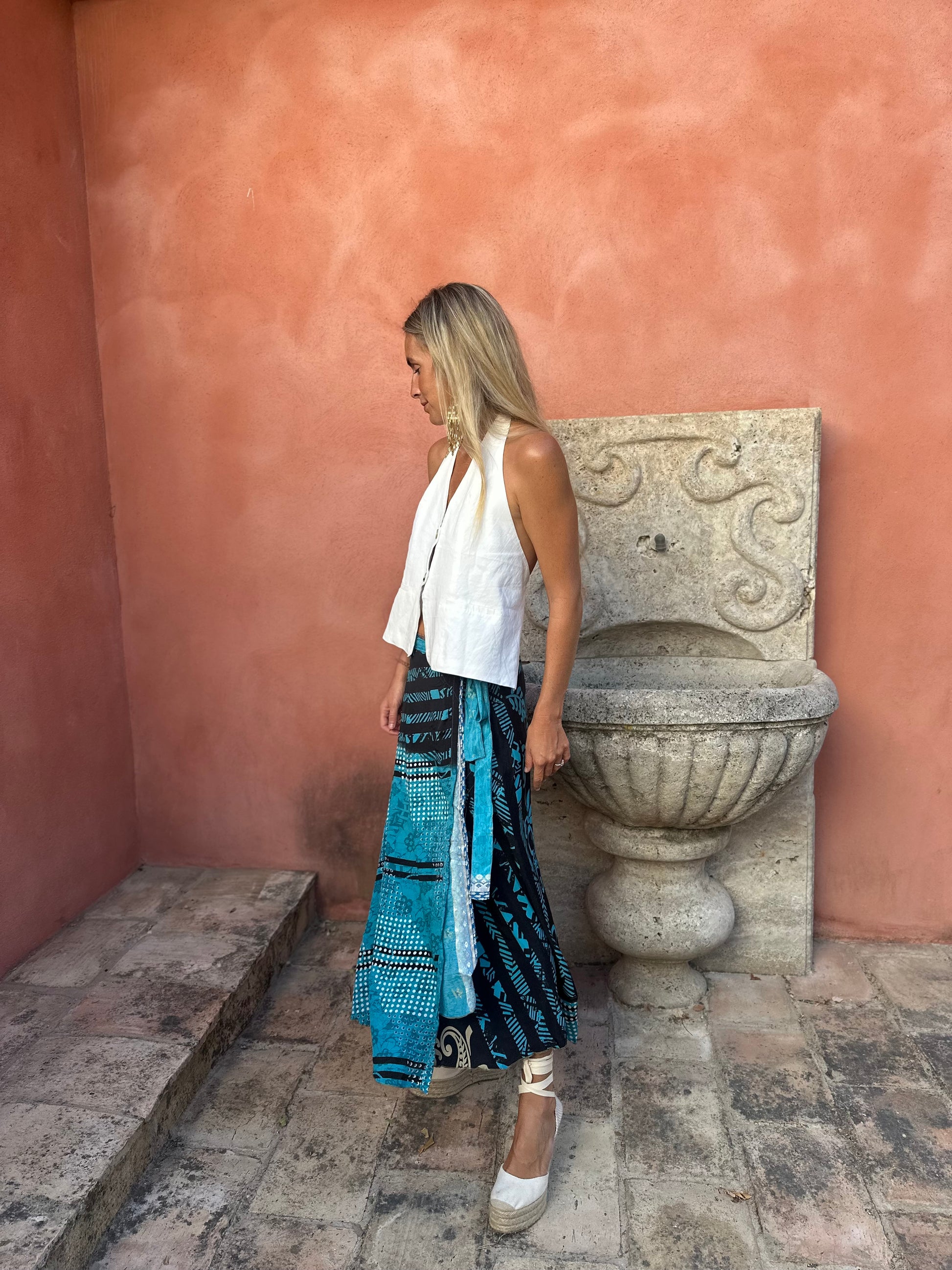 Falda con tejido en seda vintage india. Sólo una por unidad