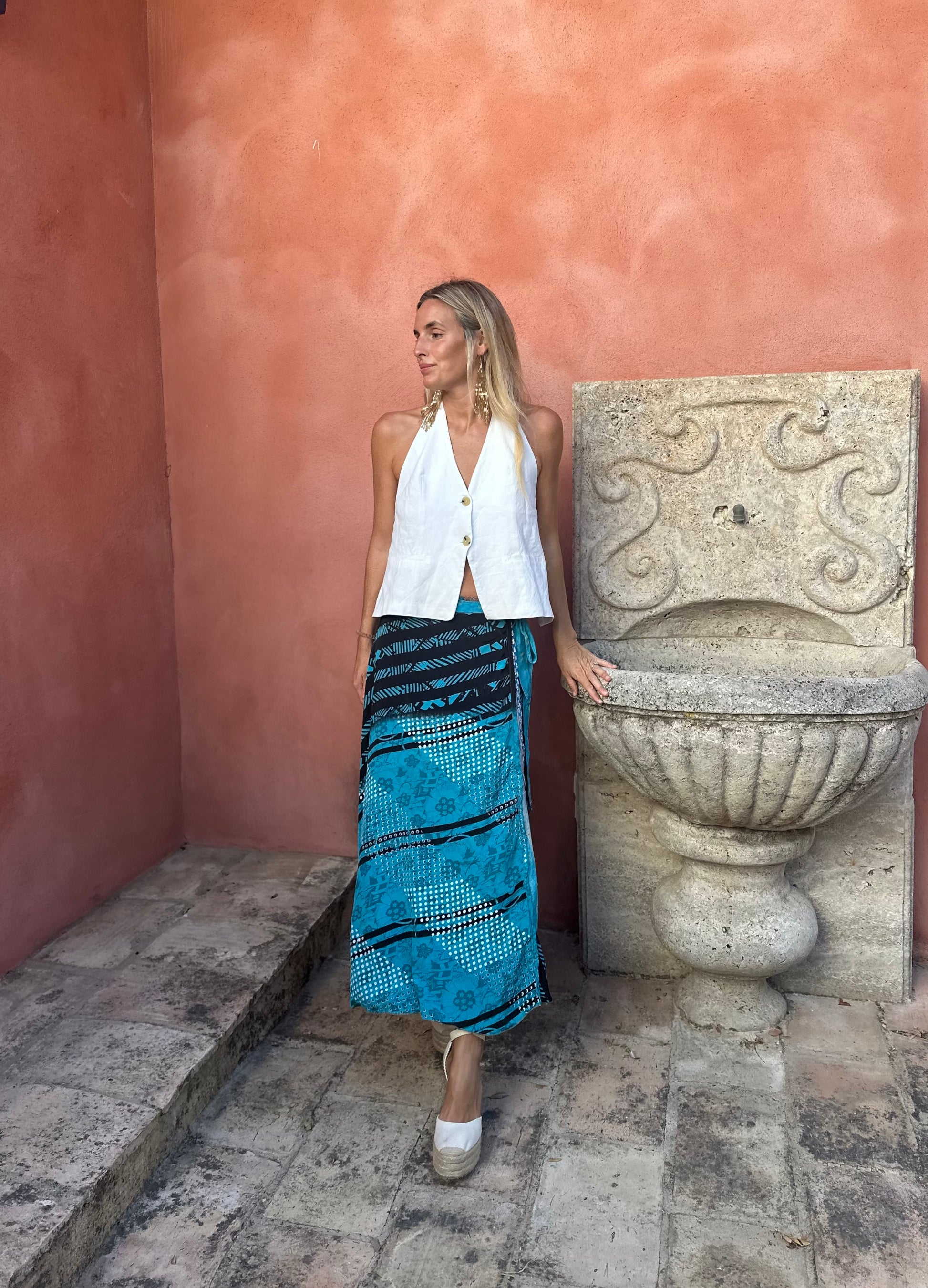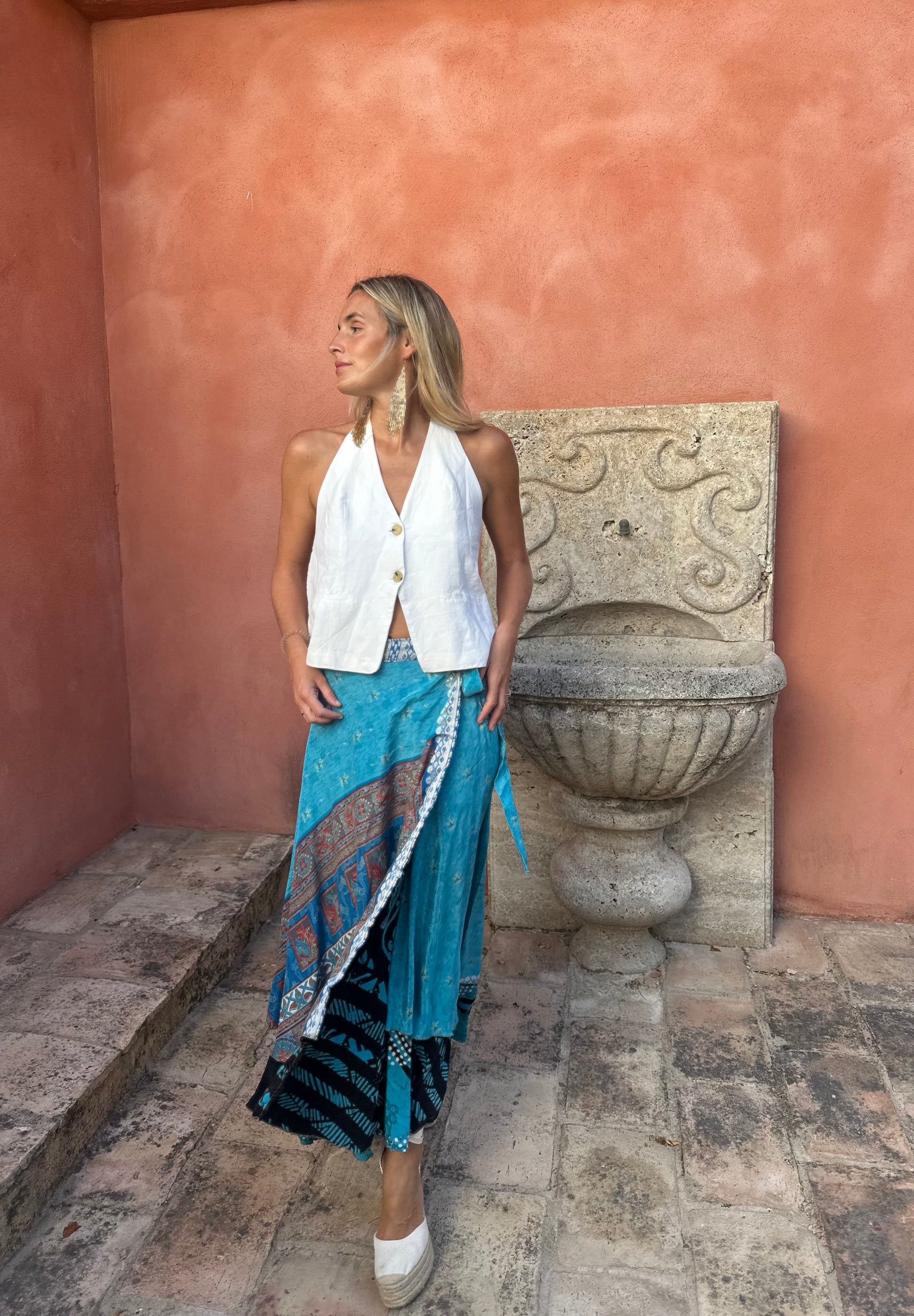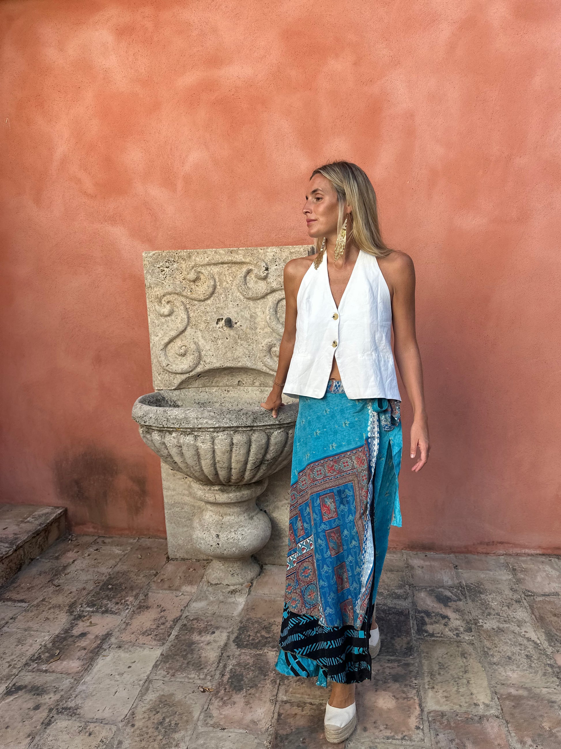 Falda con tejido en seda vintage india. Sólo una por unidad