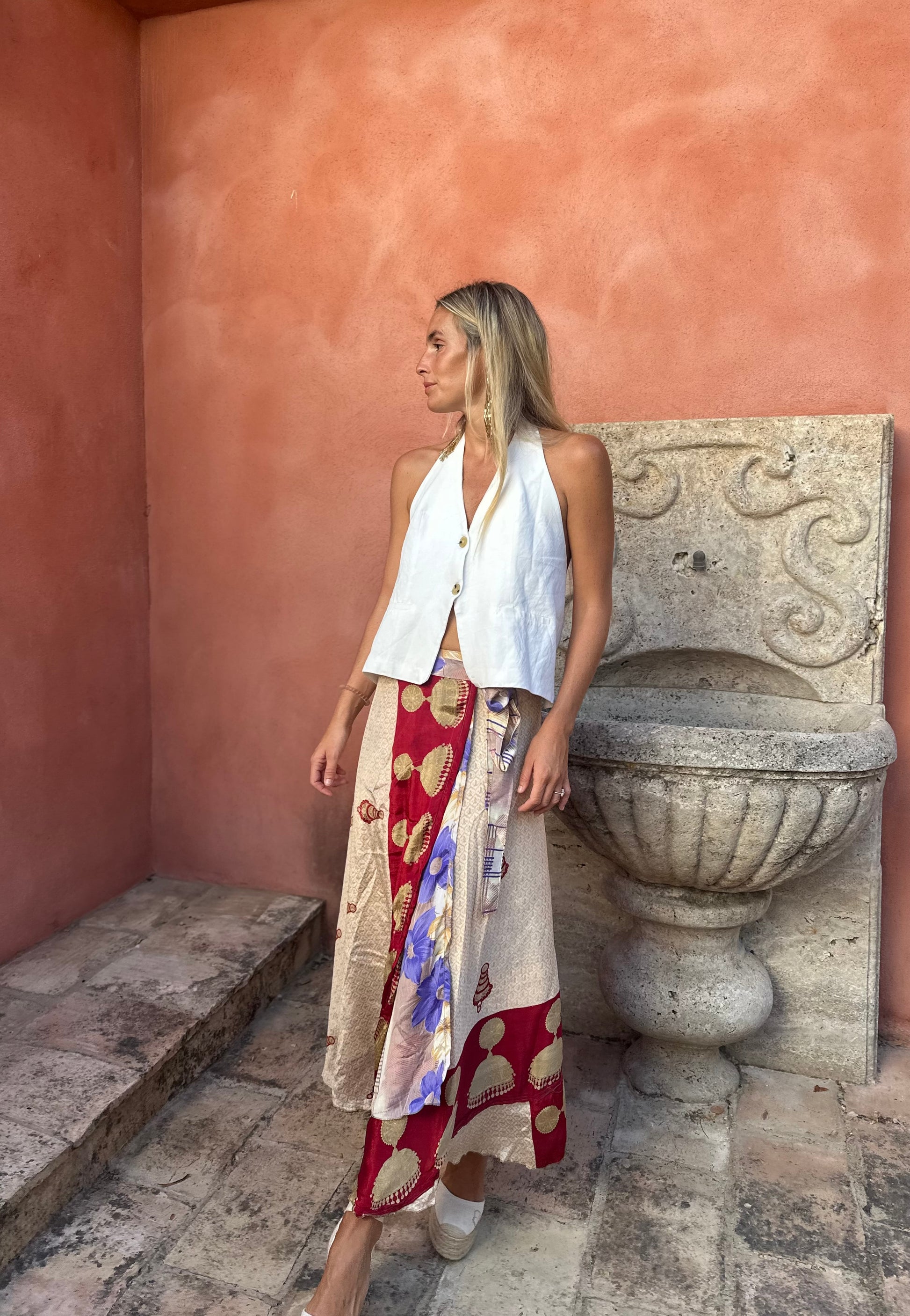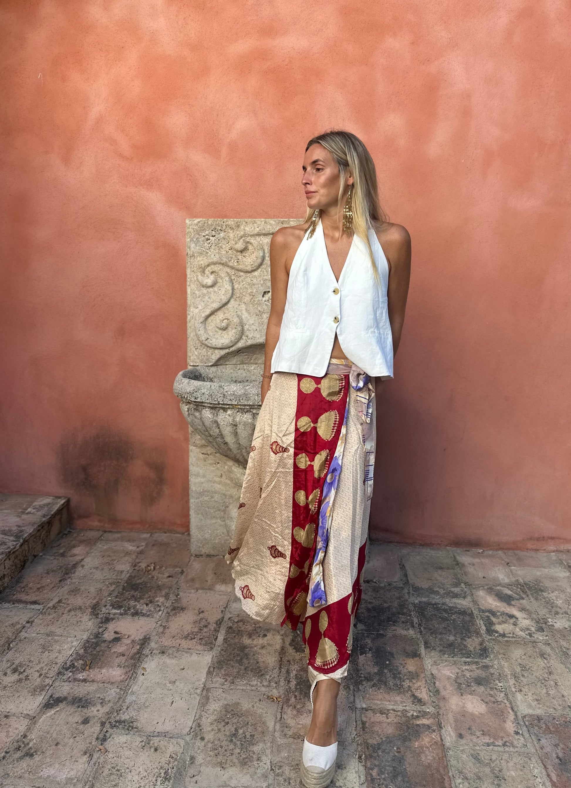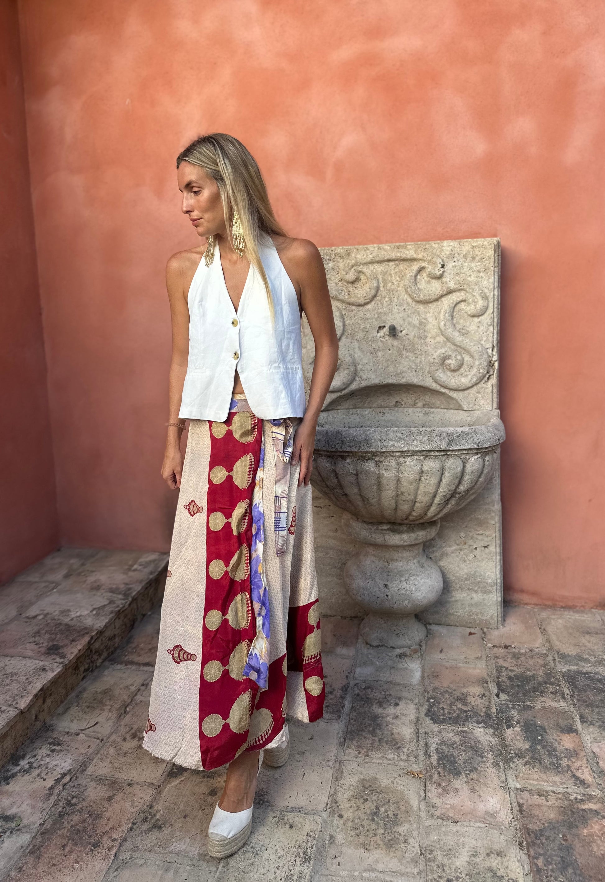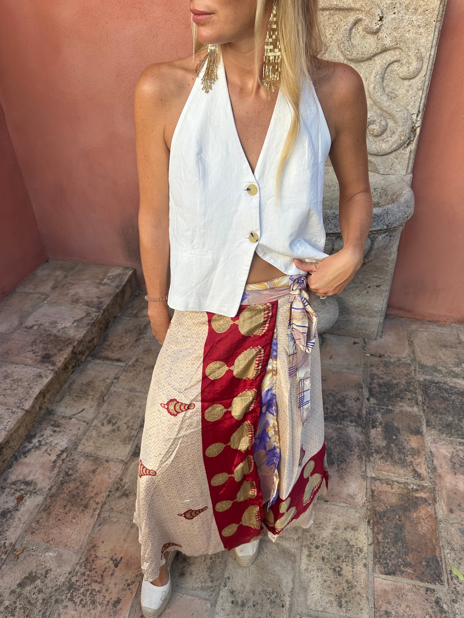 Falda con tejido en seda vintage india. Sólo una por unidad