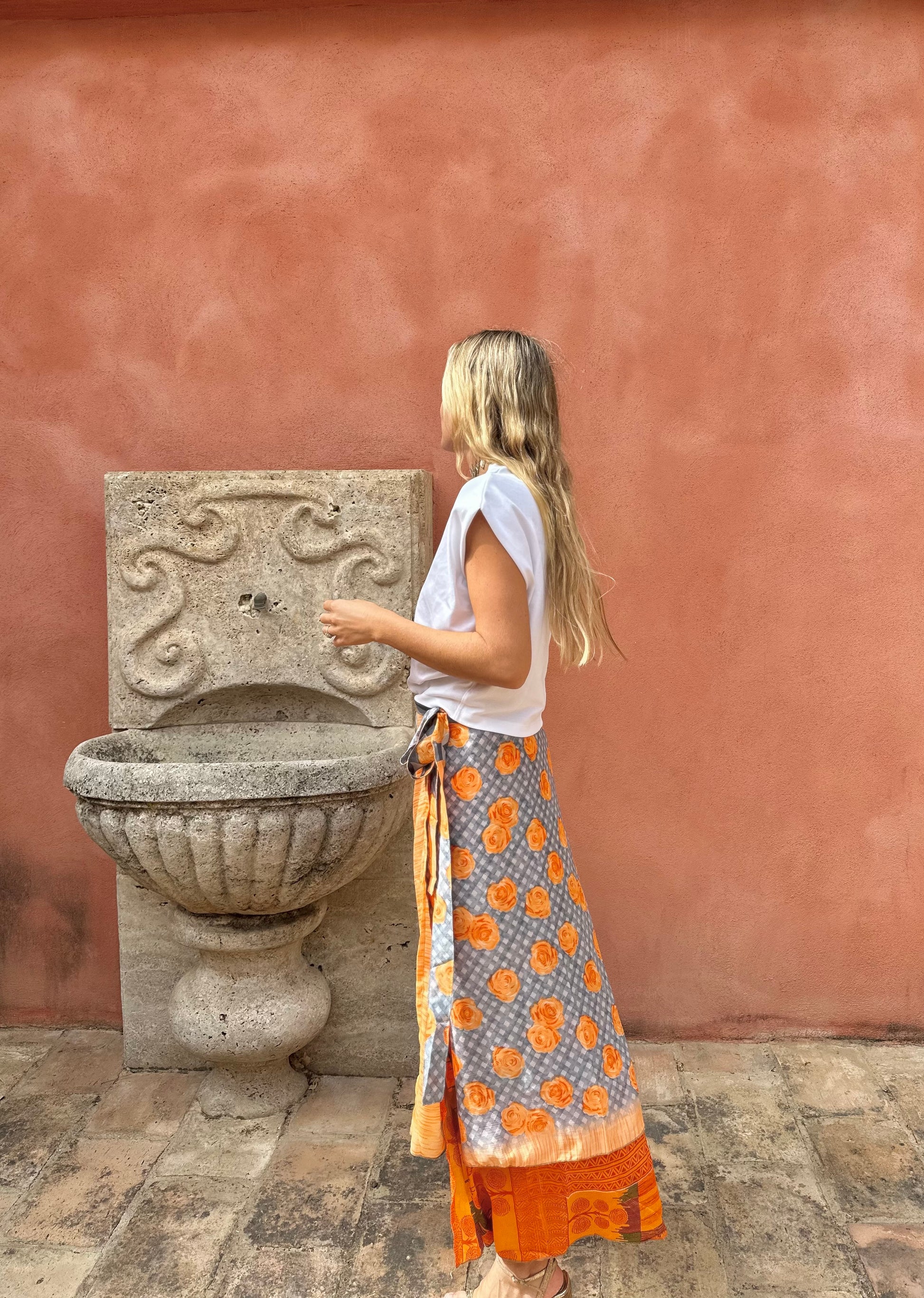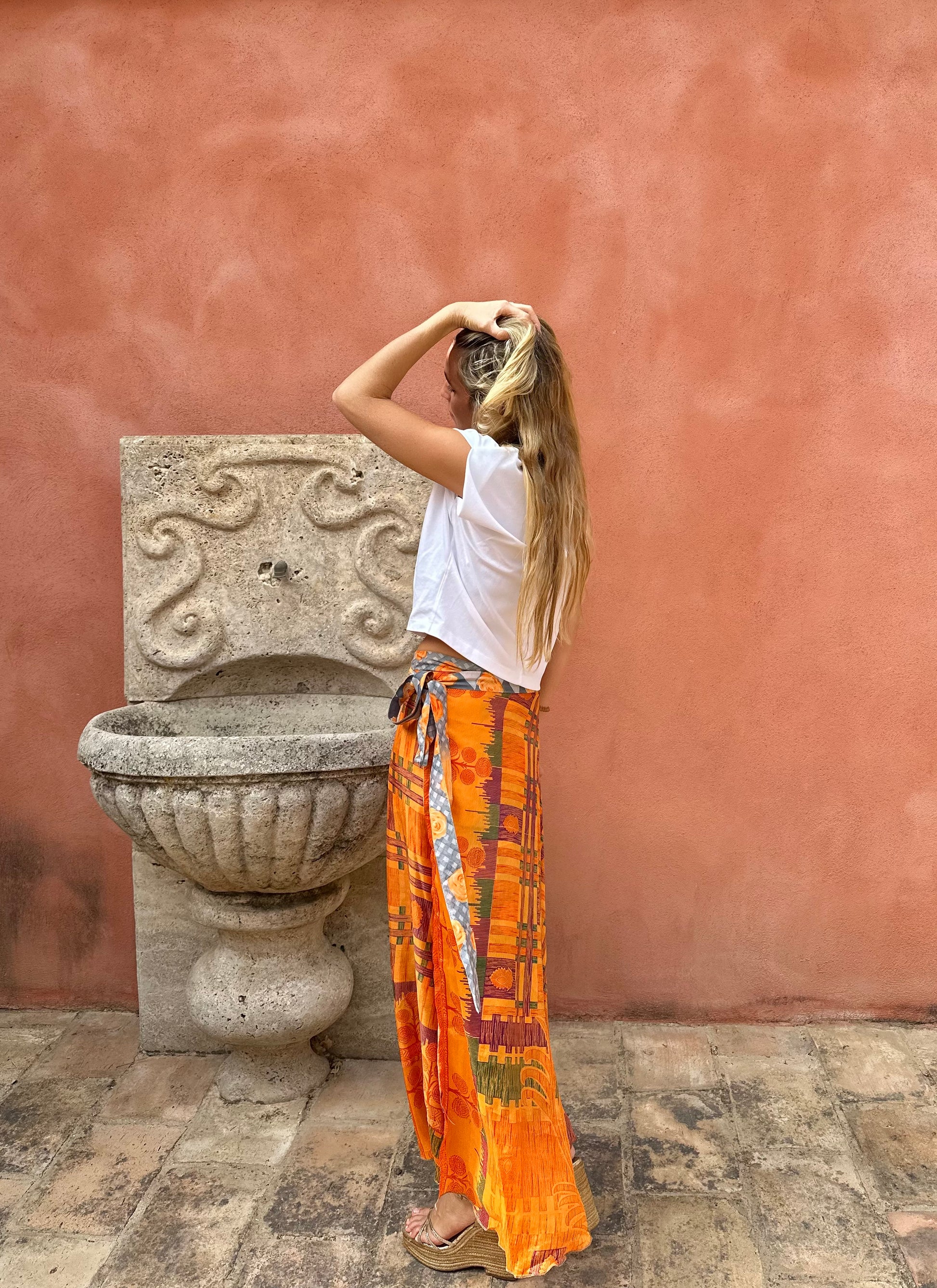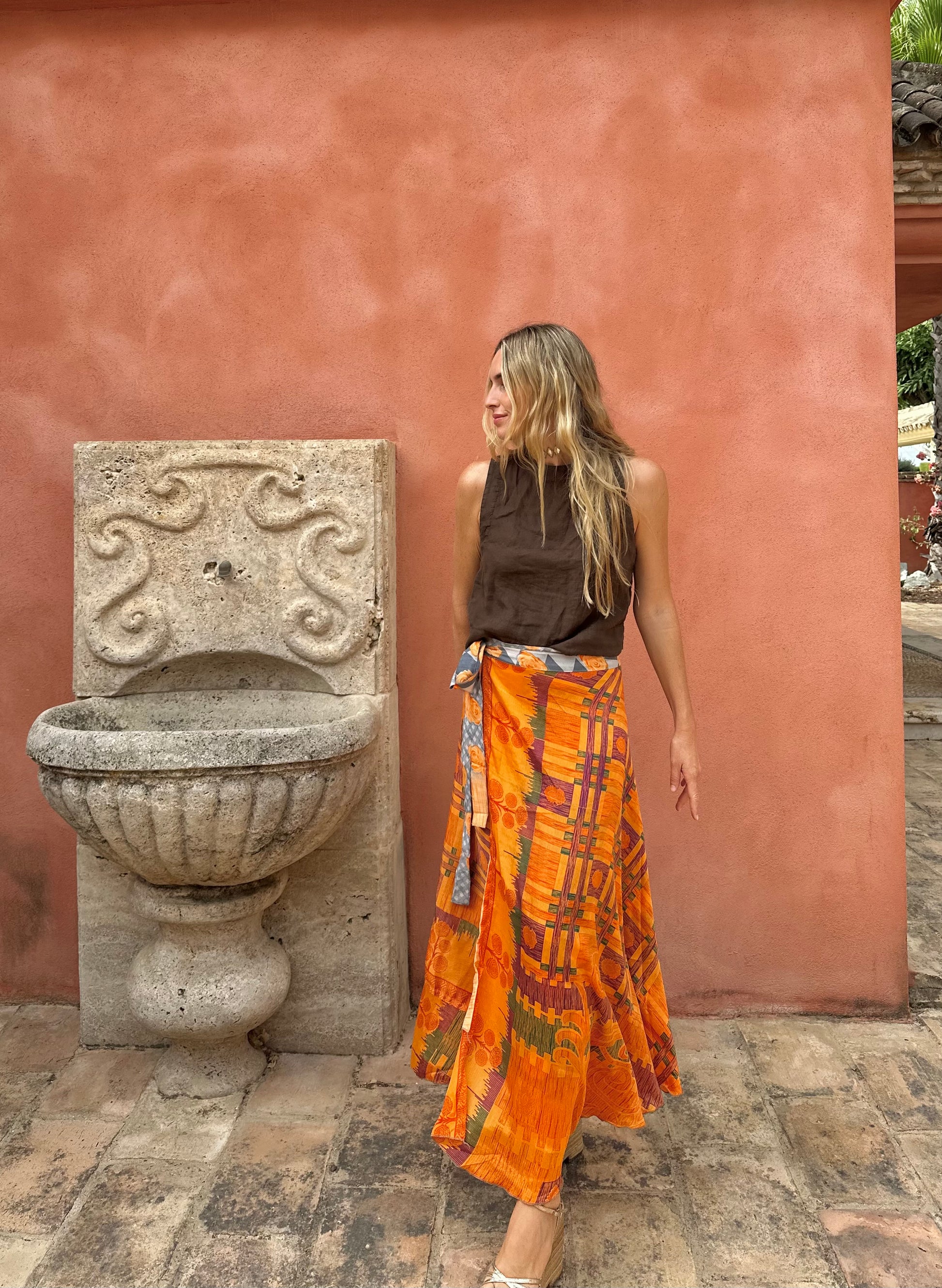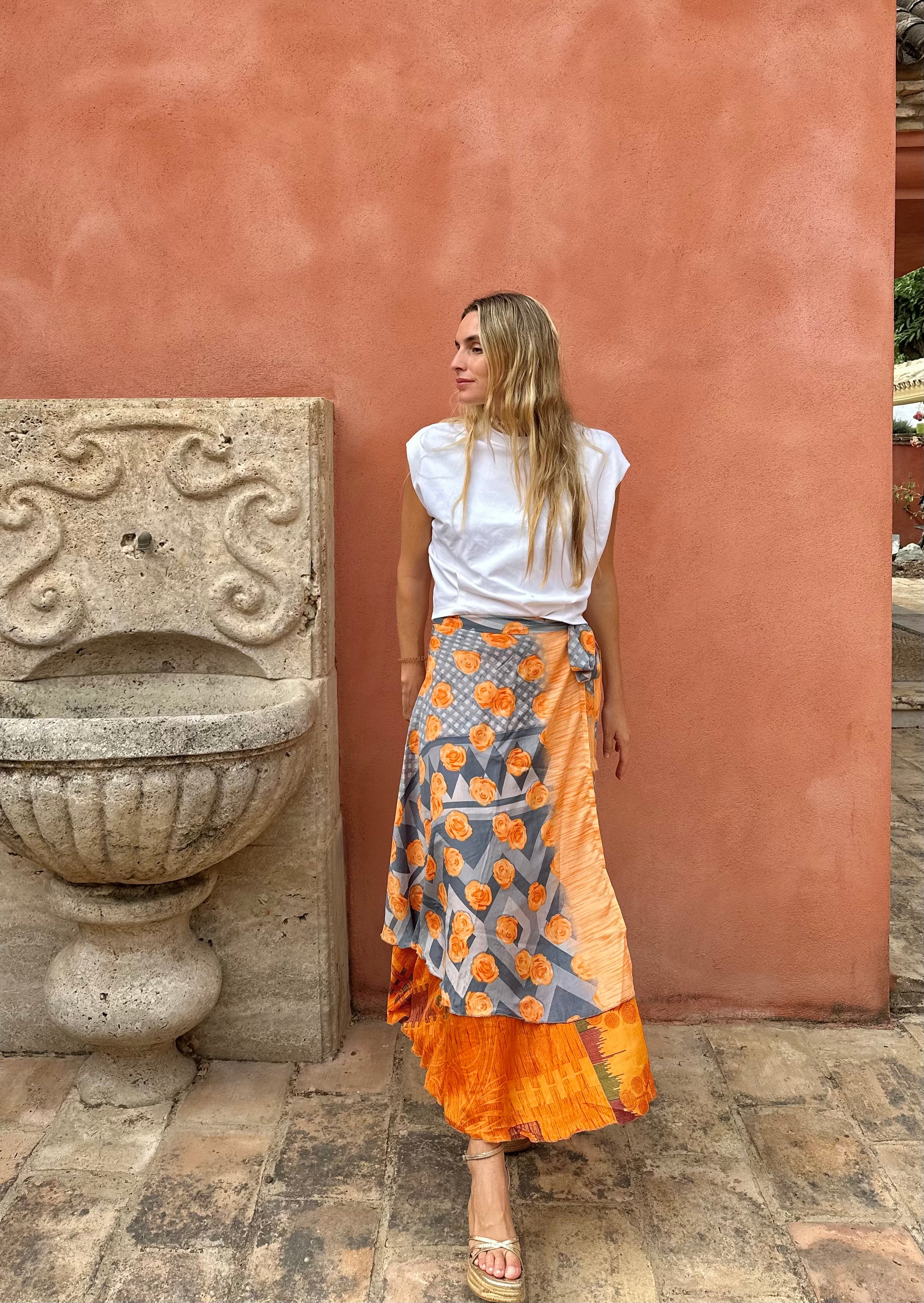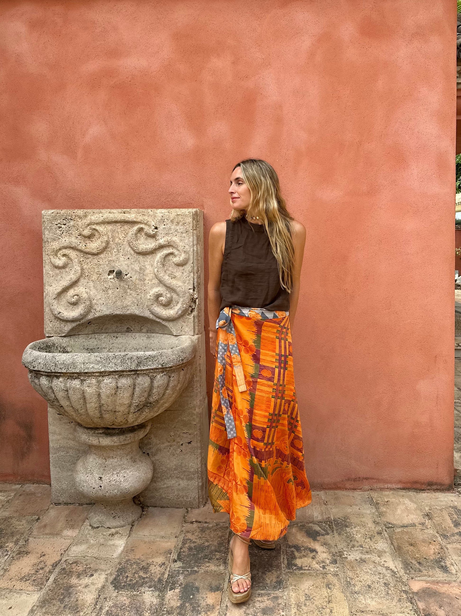 Falda con tejido en seda vintage india. Sólo una por unidad