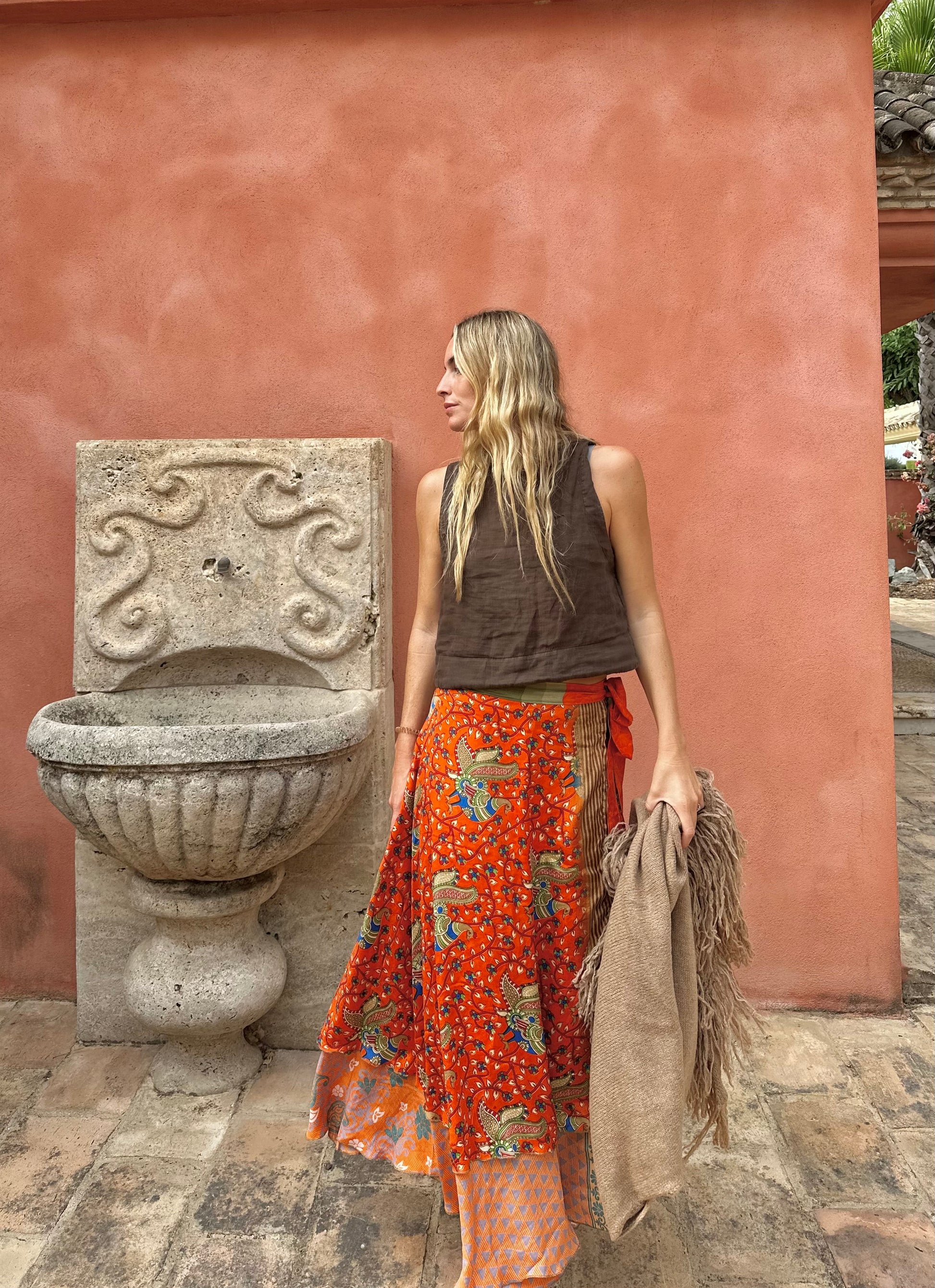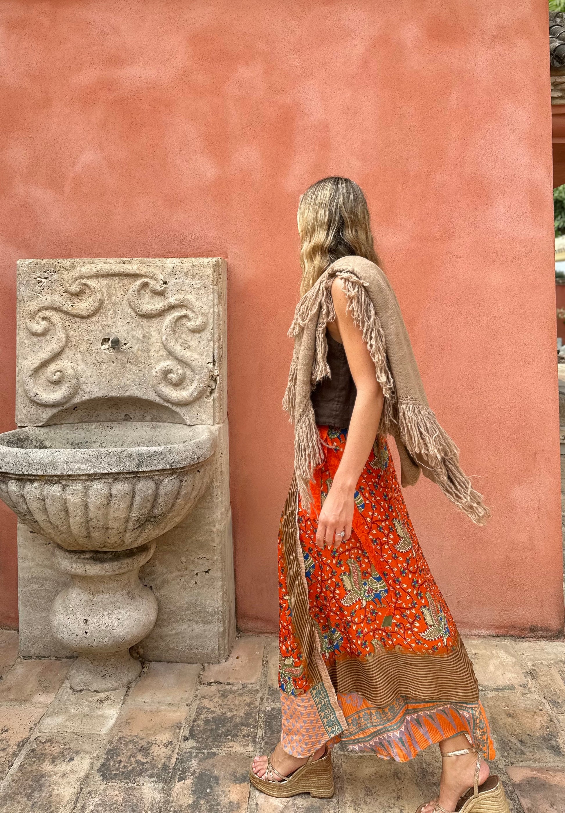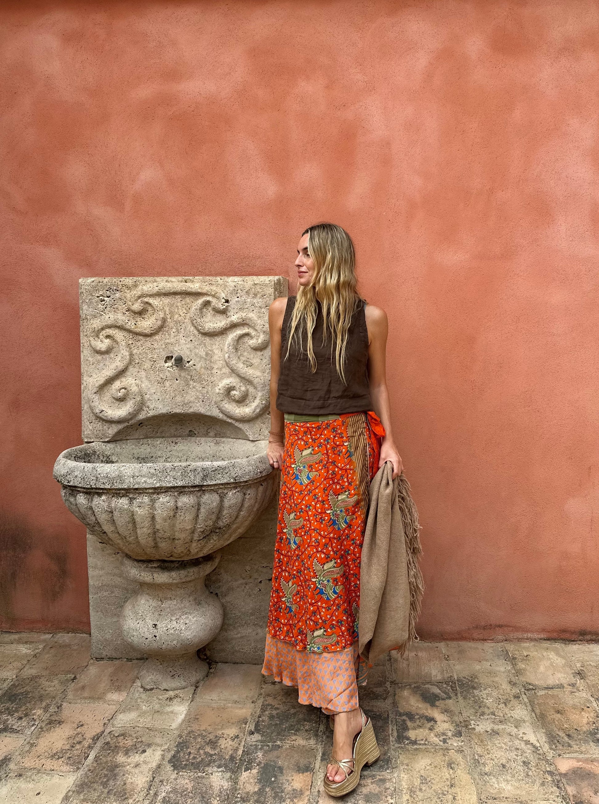 Falda con tejido en seda vintage india. Sólo una por unidad
