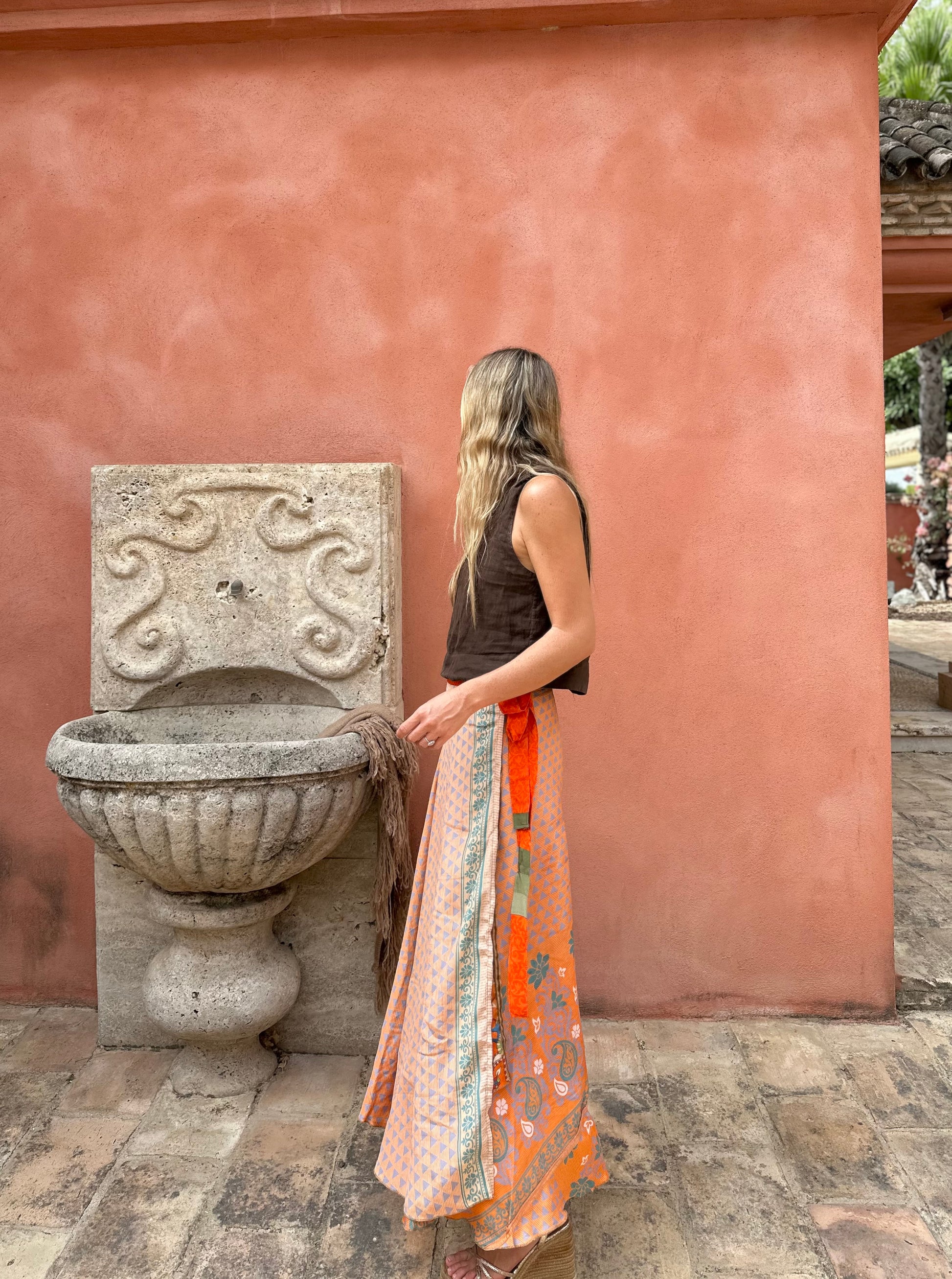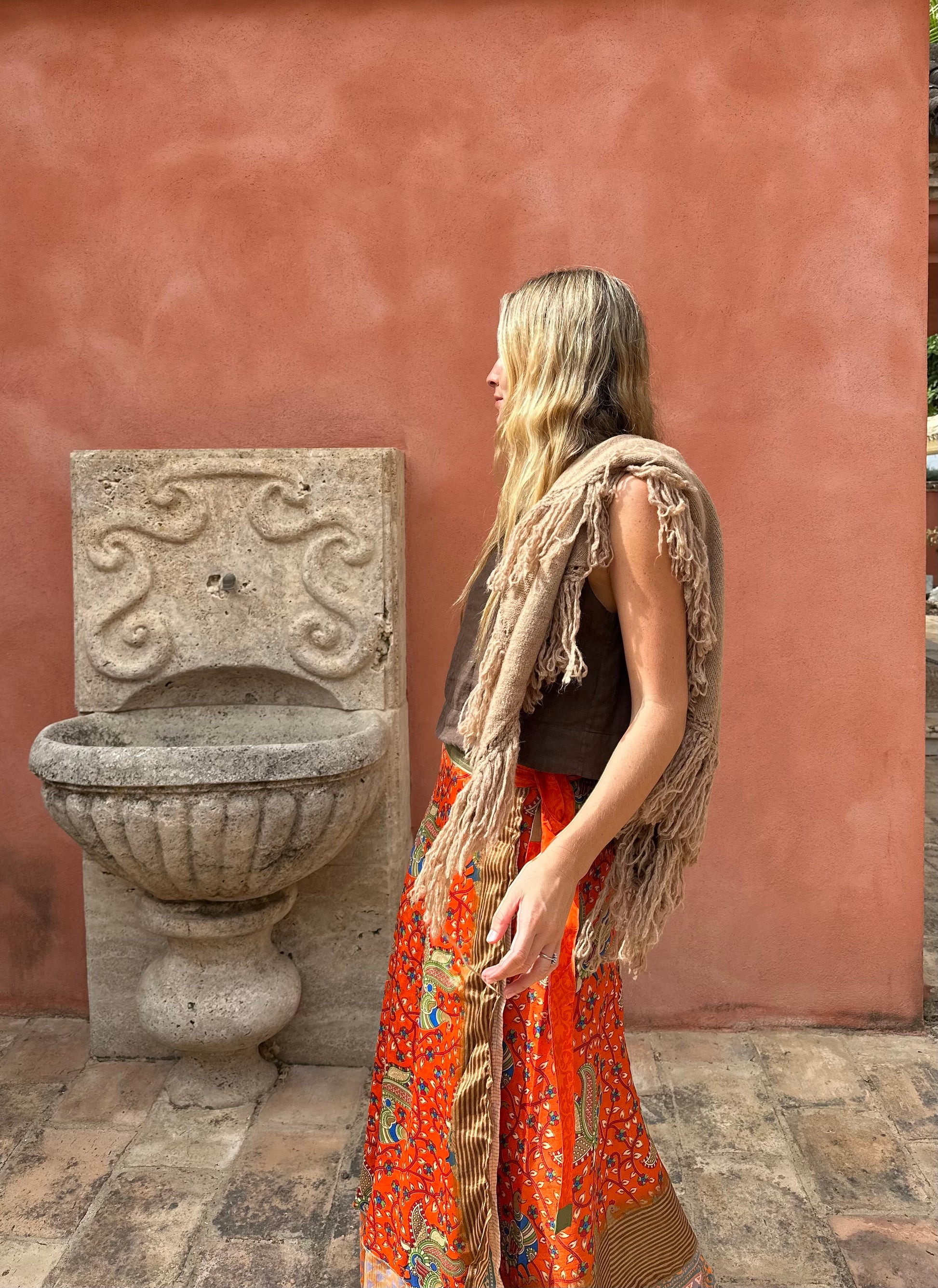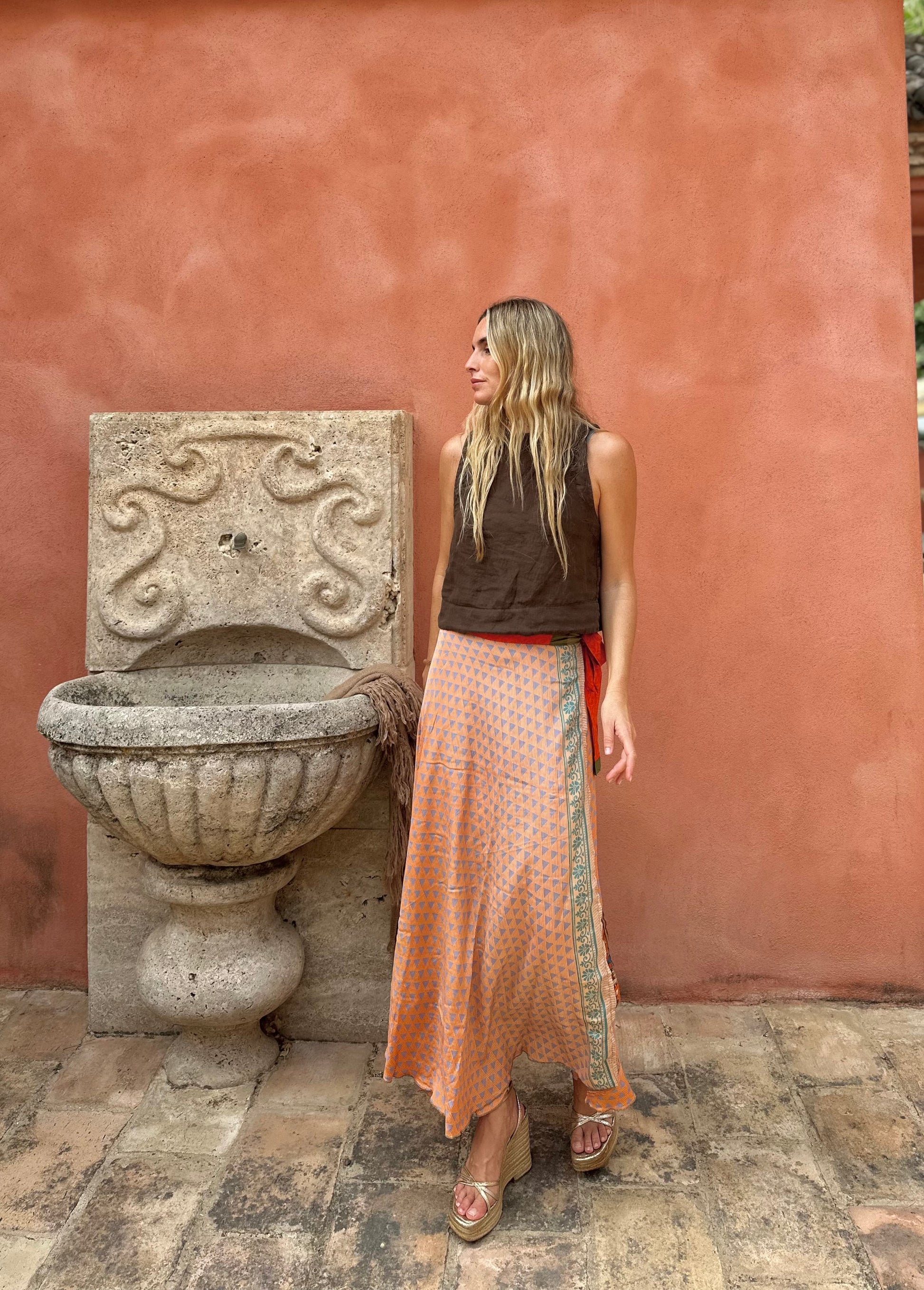 Falda con tejido en seda vintage india. Sólo una por unidad