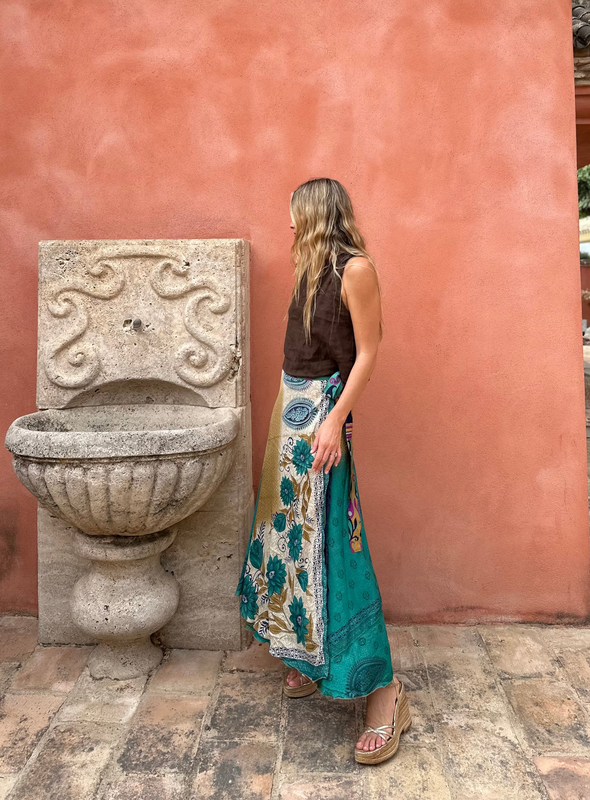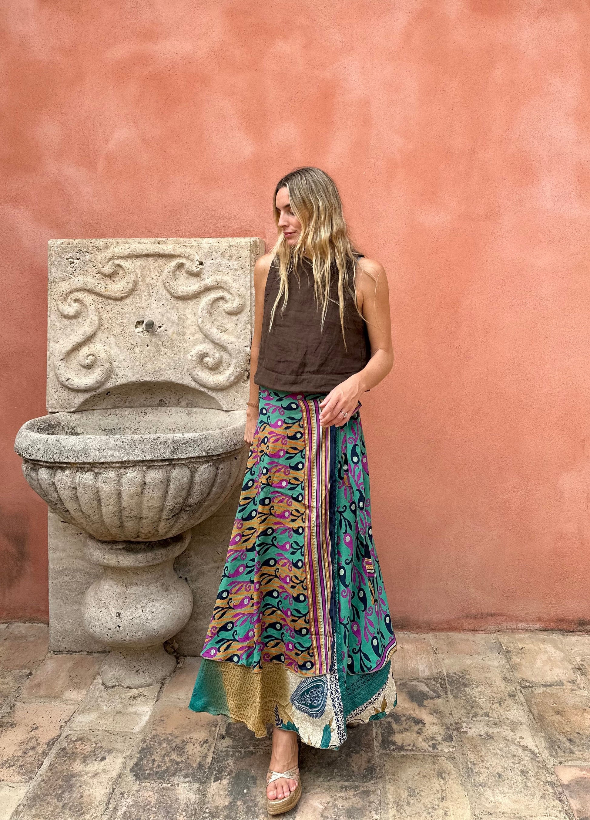 Falda con tejido en seda vintage india. Sólo una por unidad