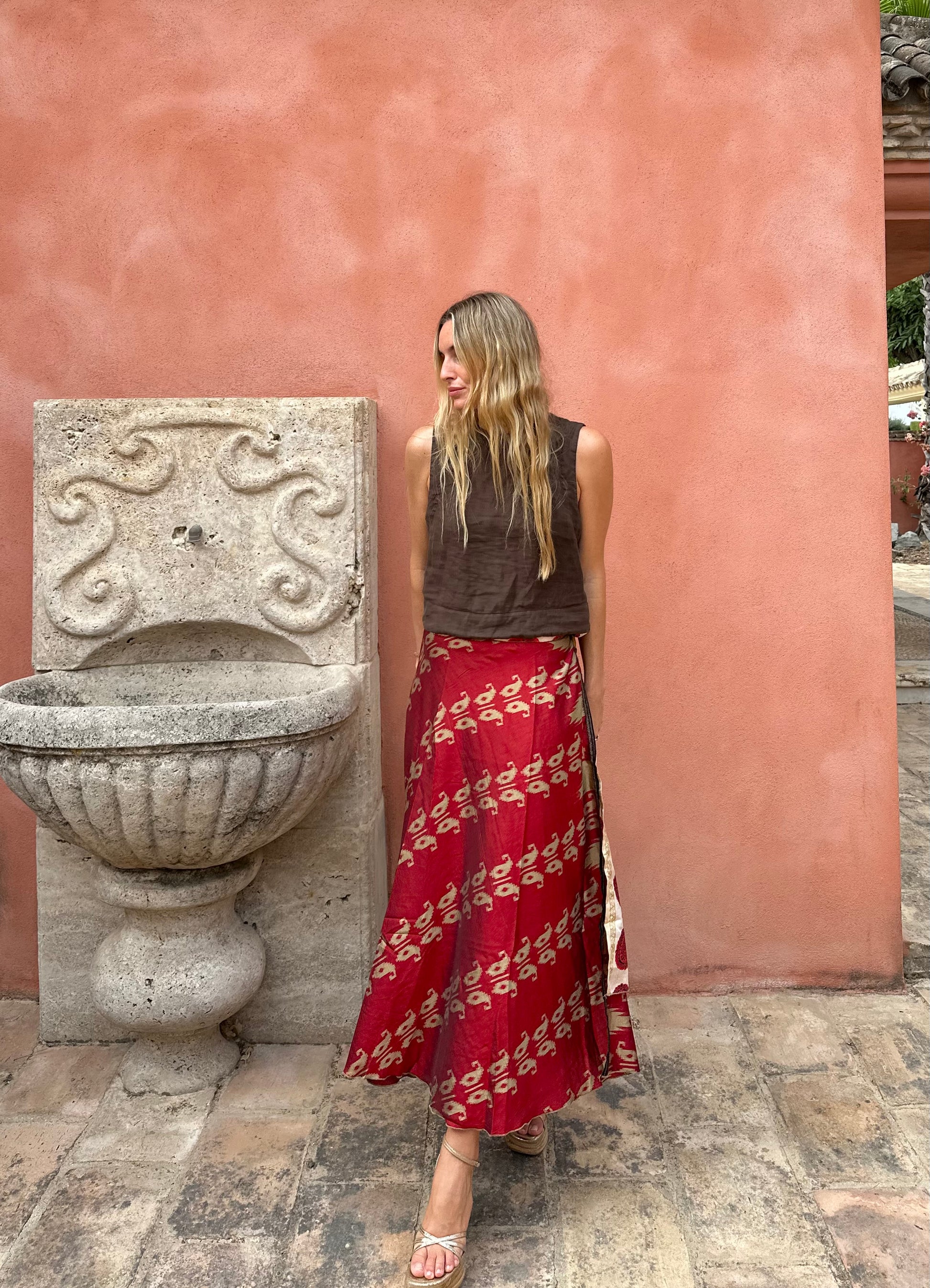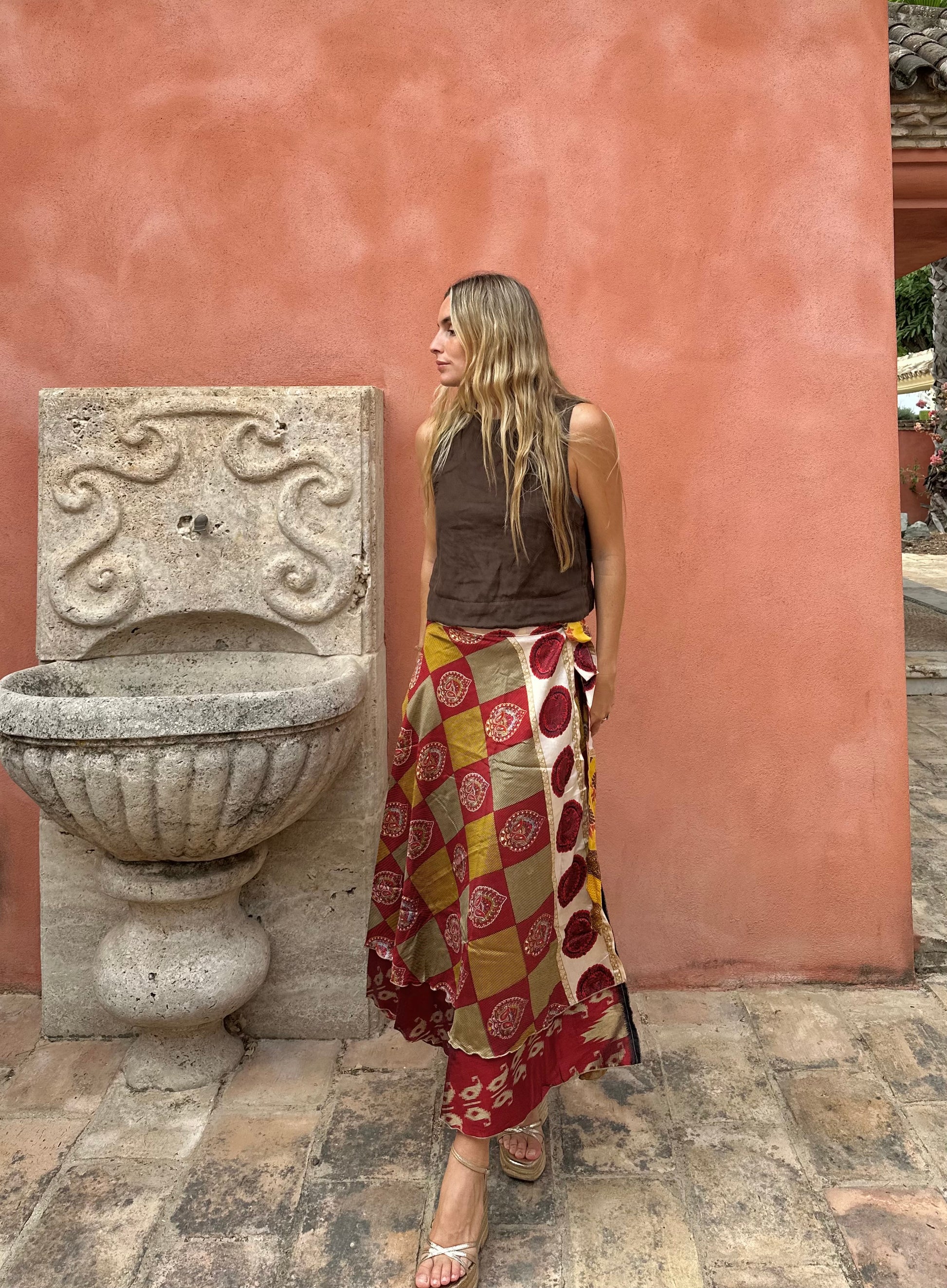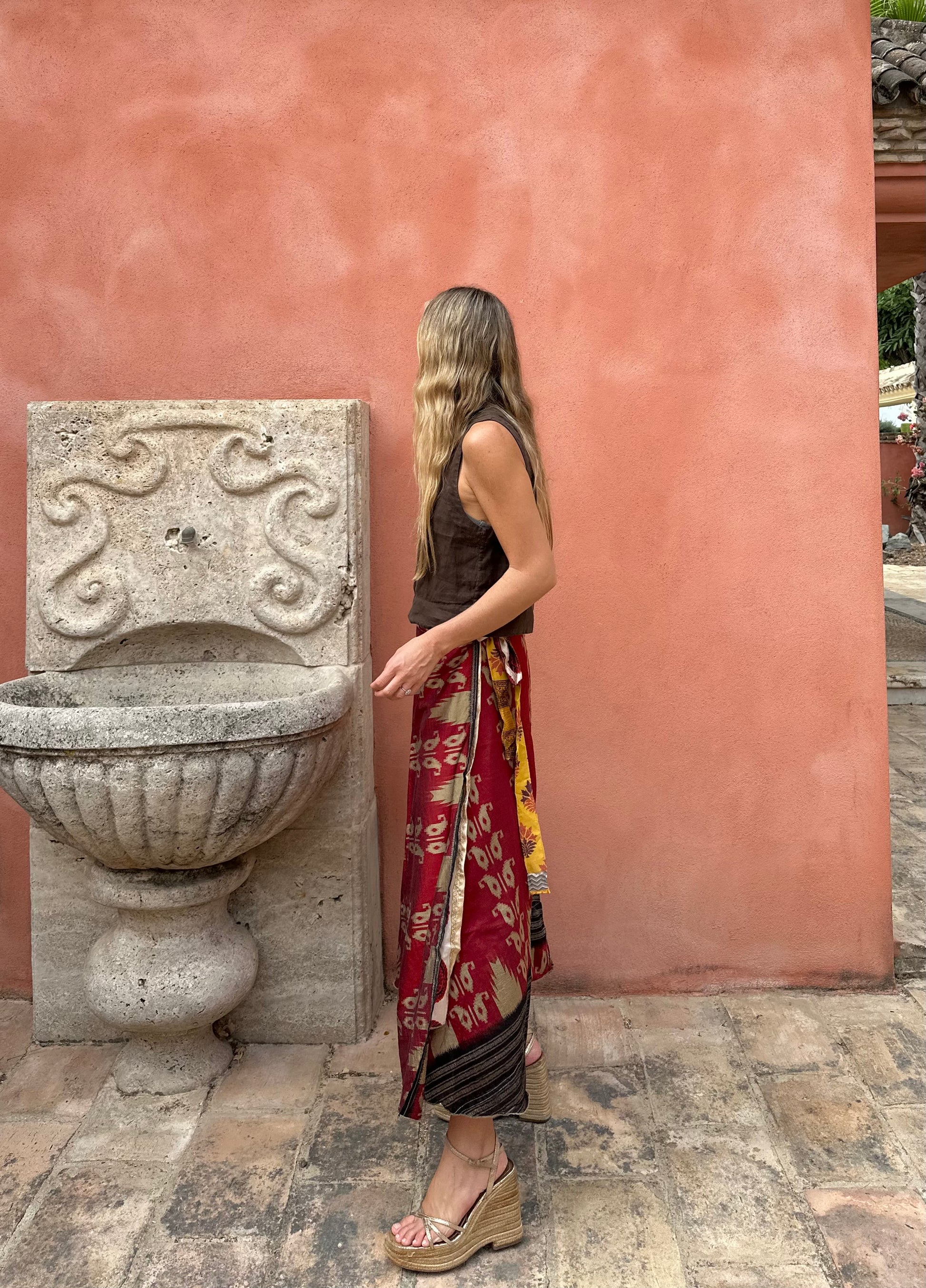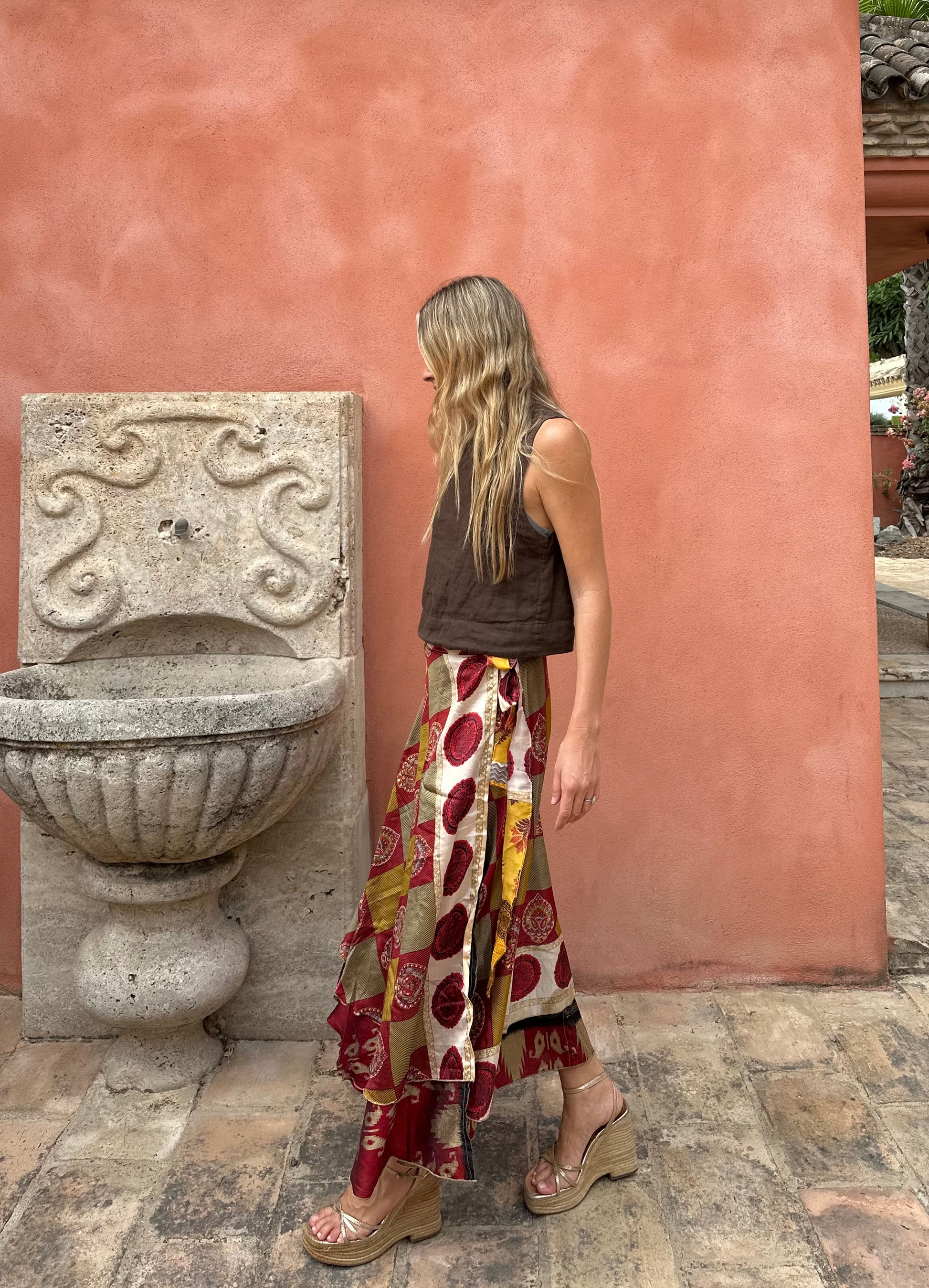 Falda con tejido en seda vintage india. Sólo una por unidad