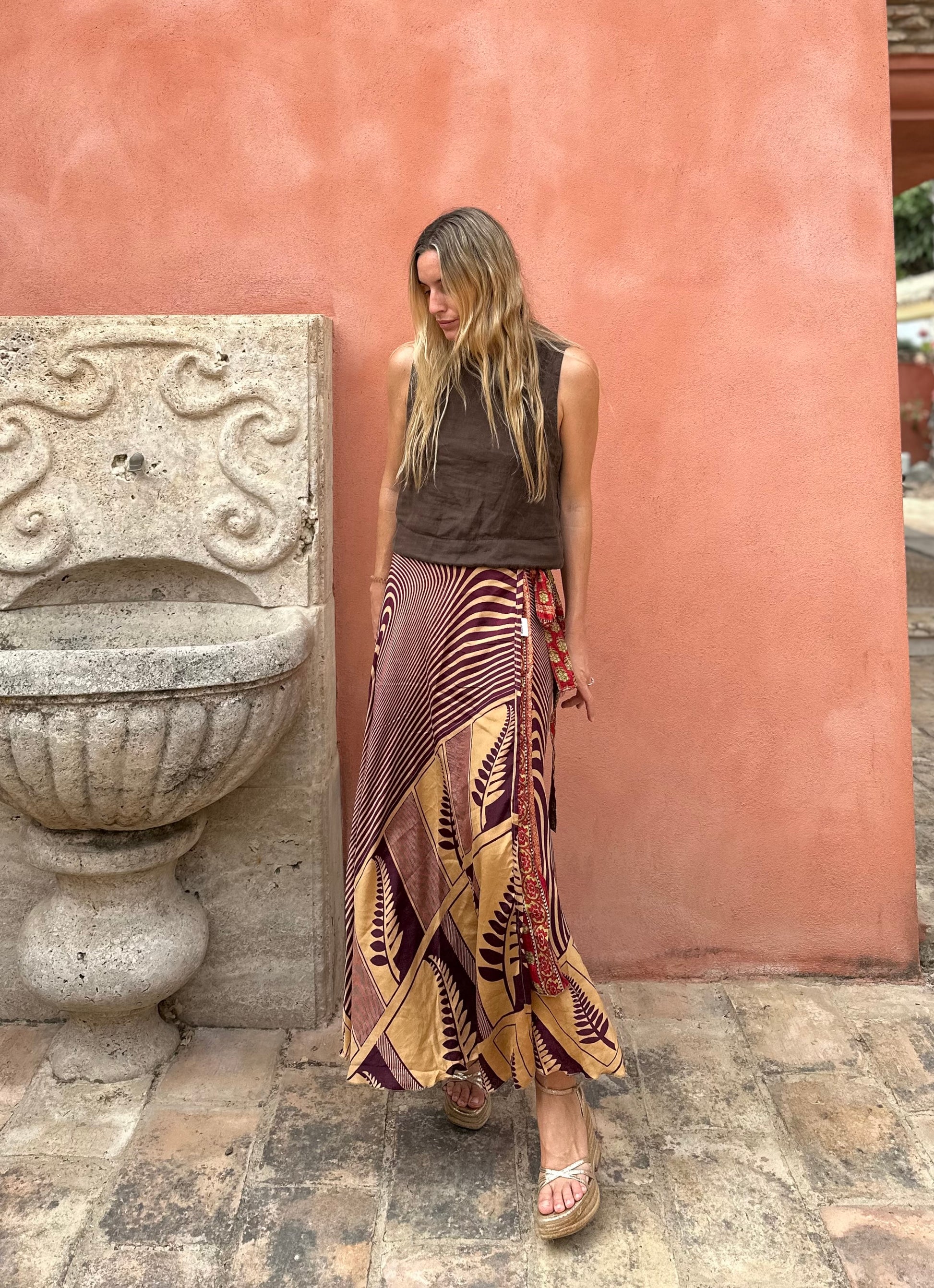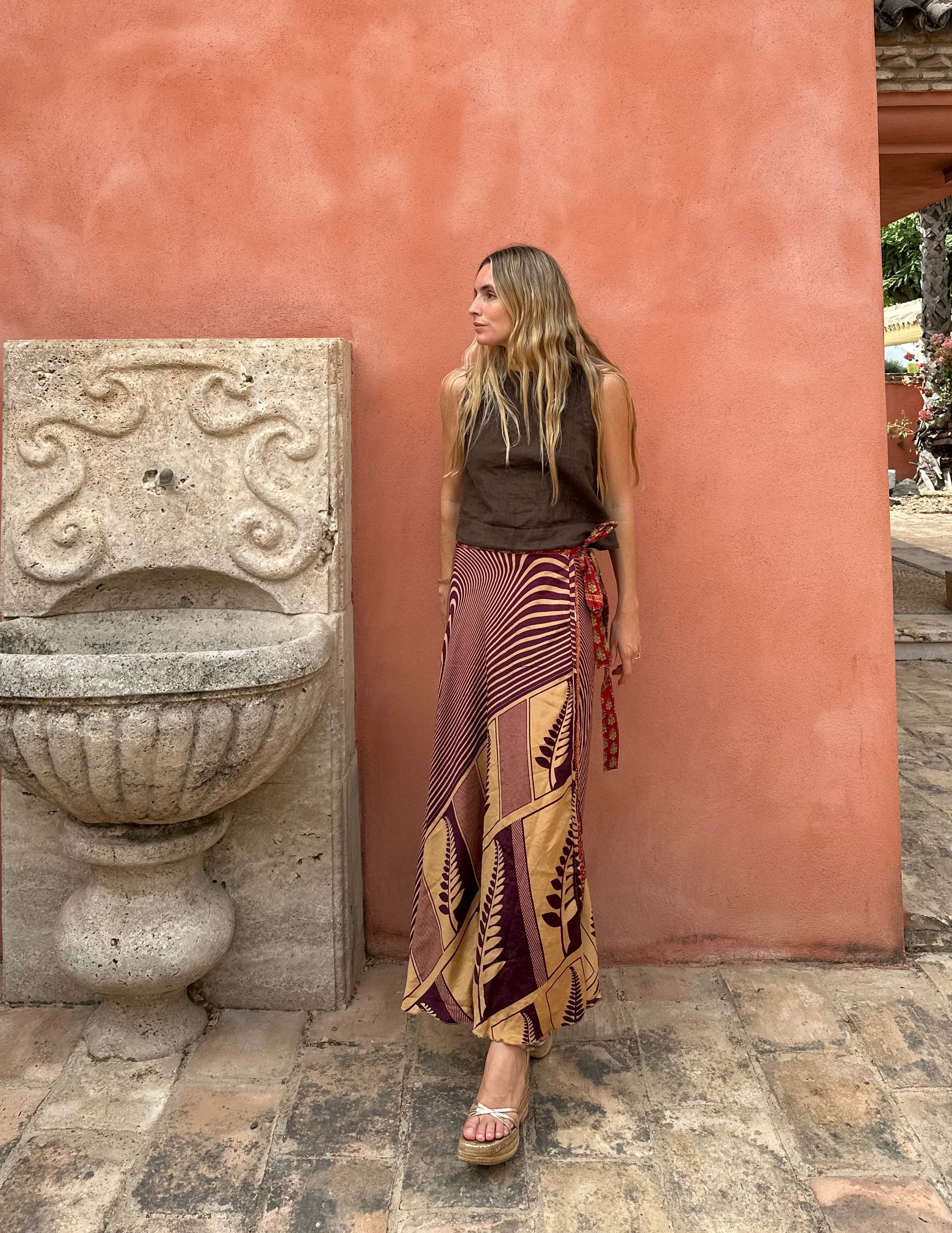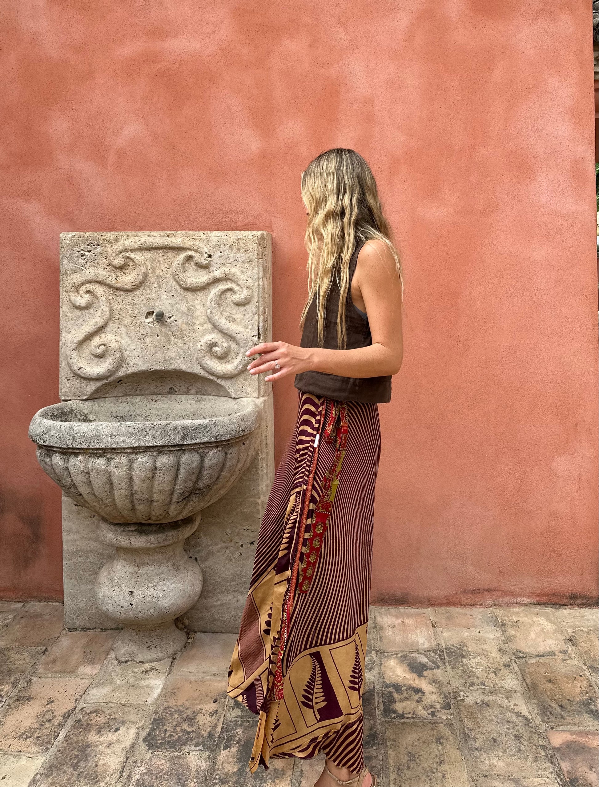 Falda con tejido en seda vintage india. Sólo una por unidad