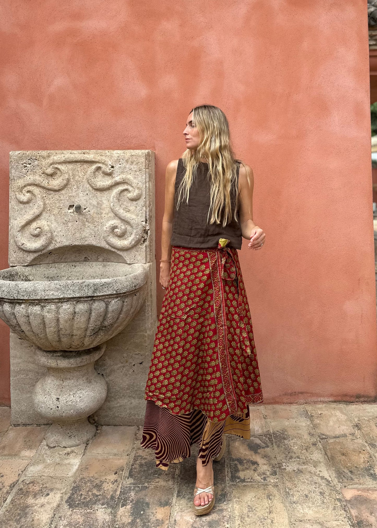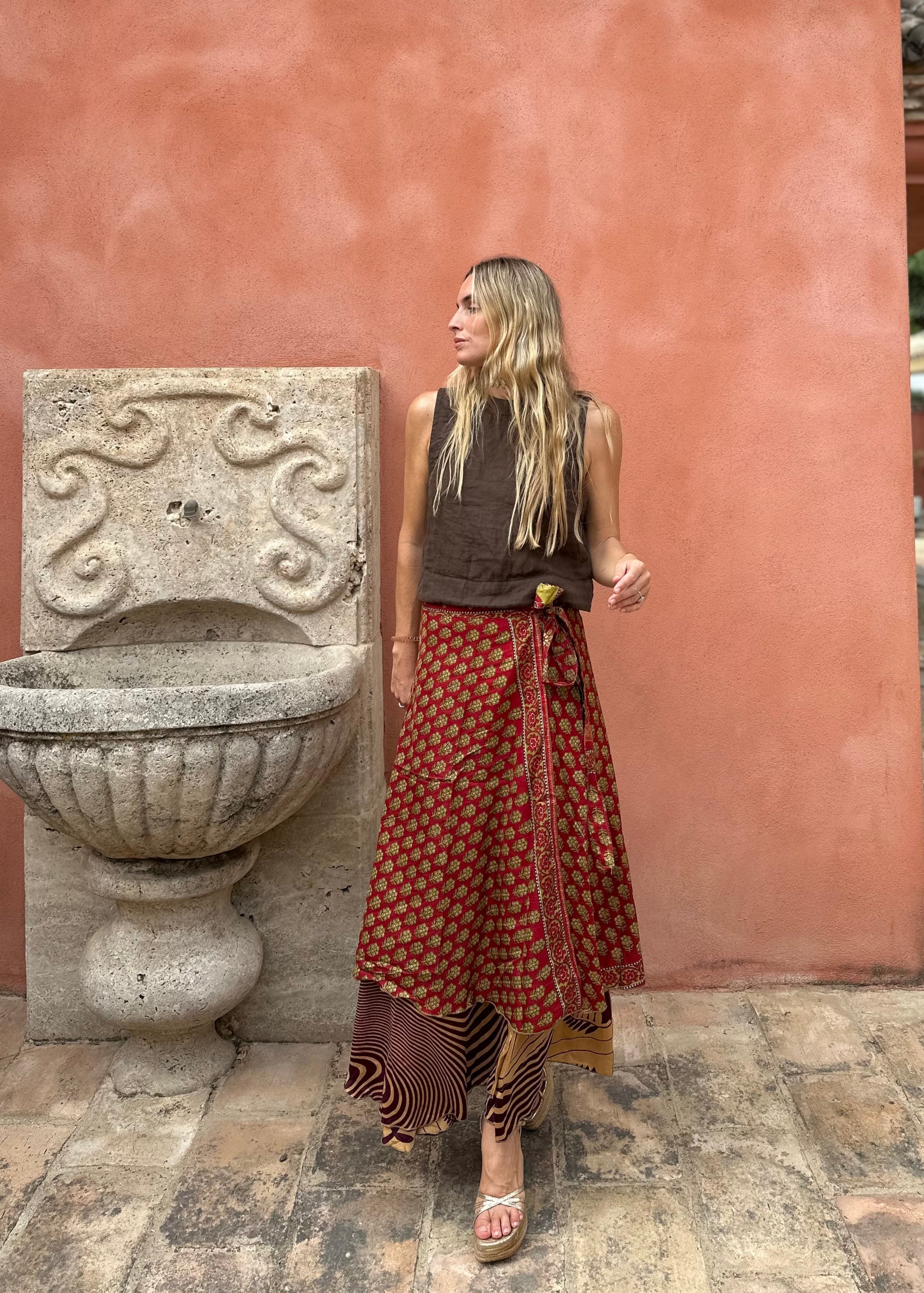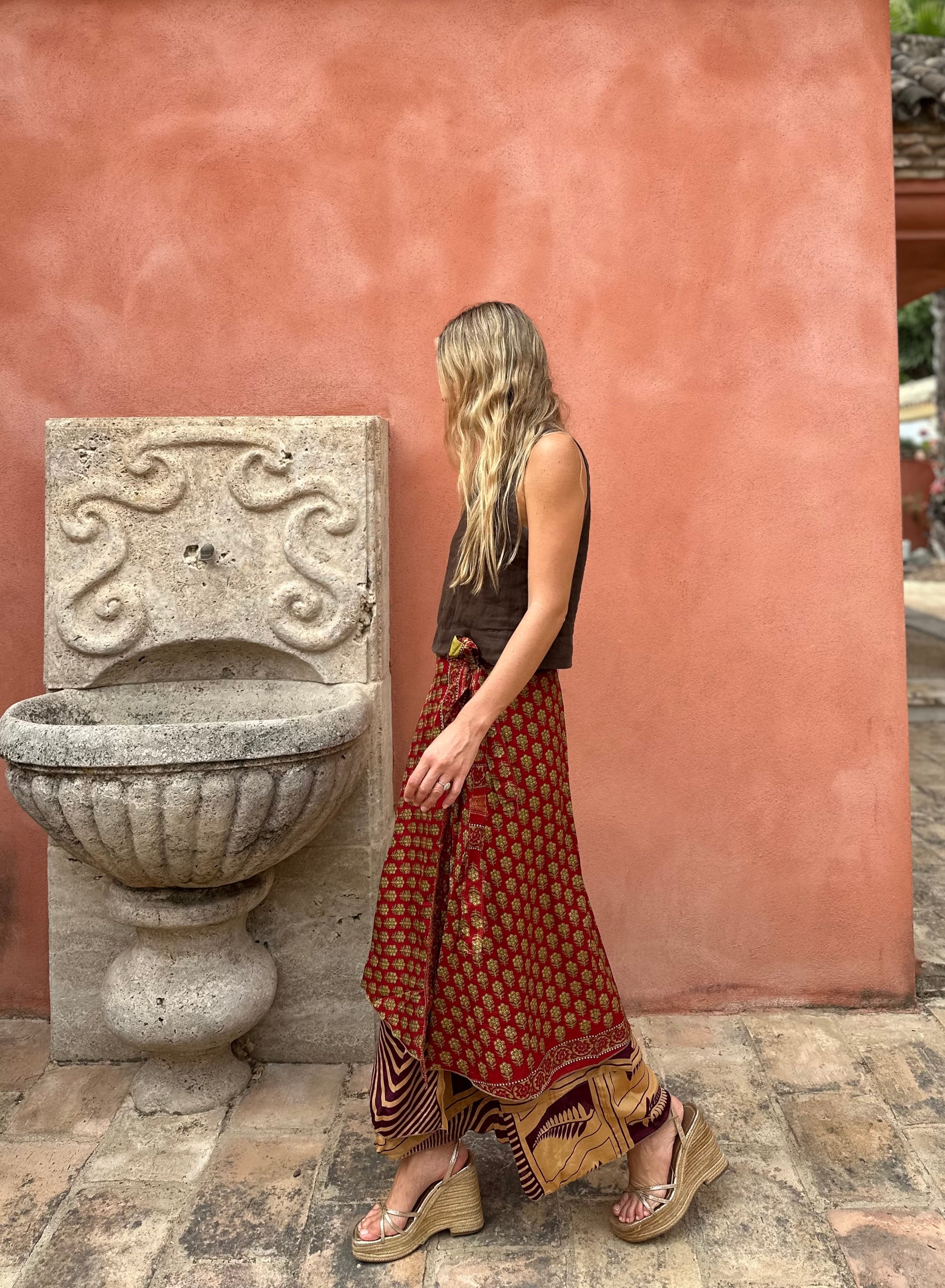 Falda con tejido en seda vintage india. Sólo una por unidad