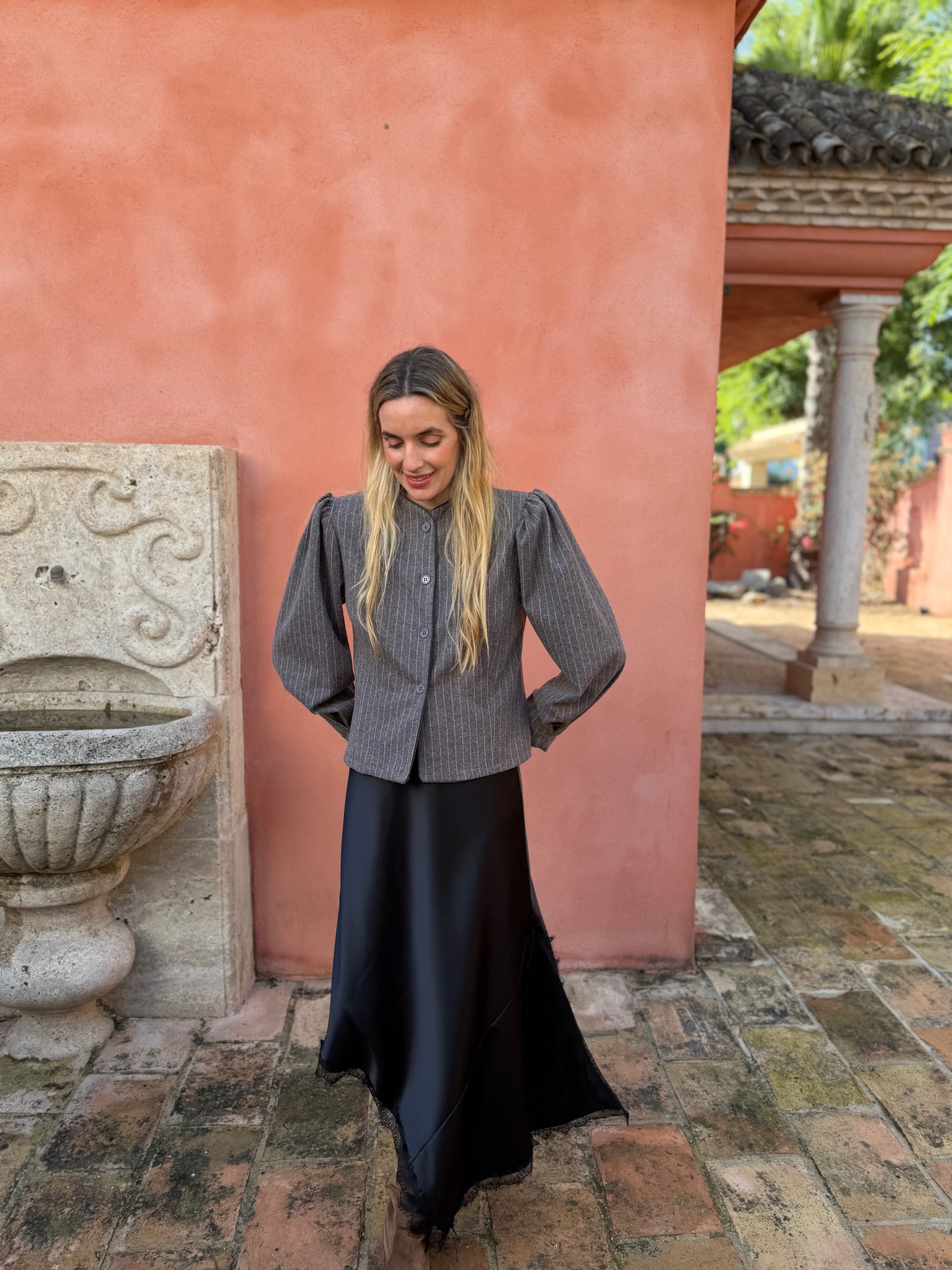 Falda raso asimétrica negra