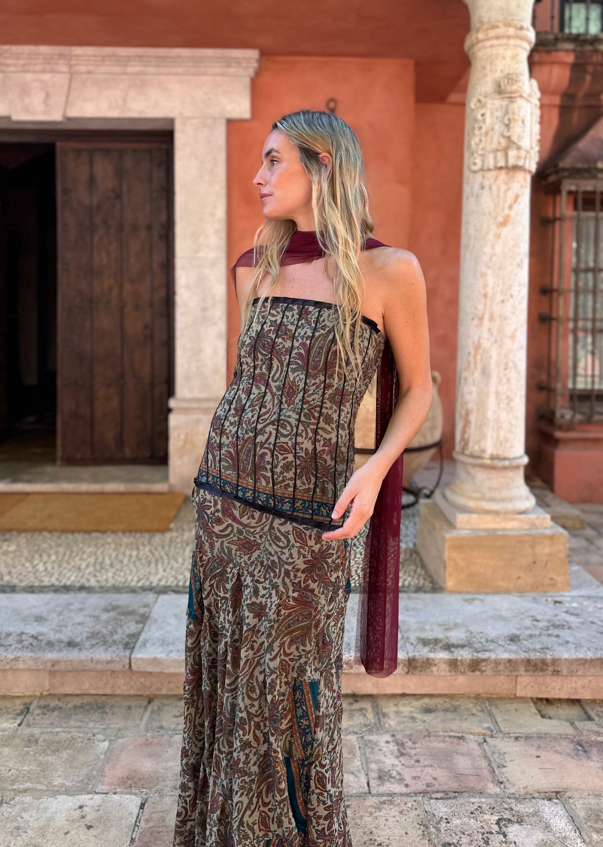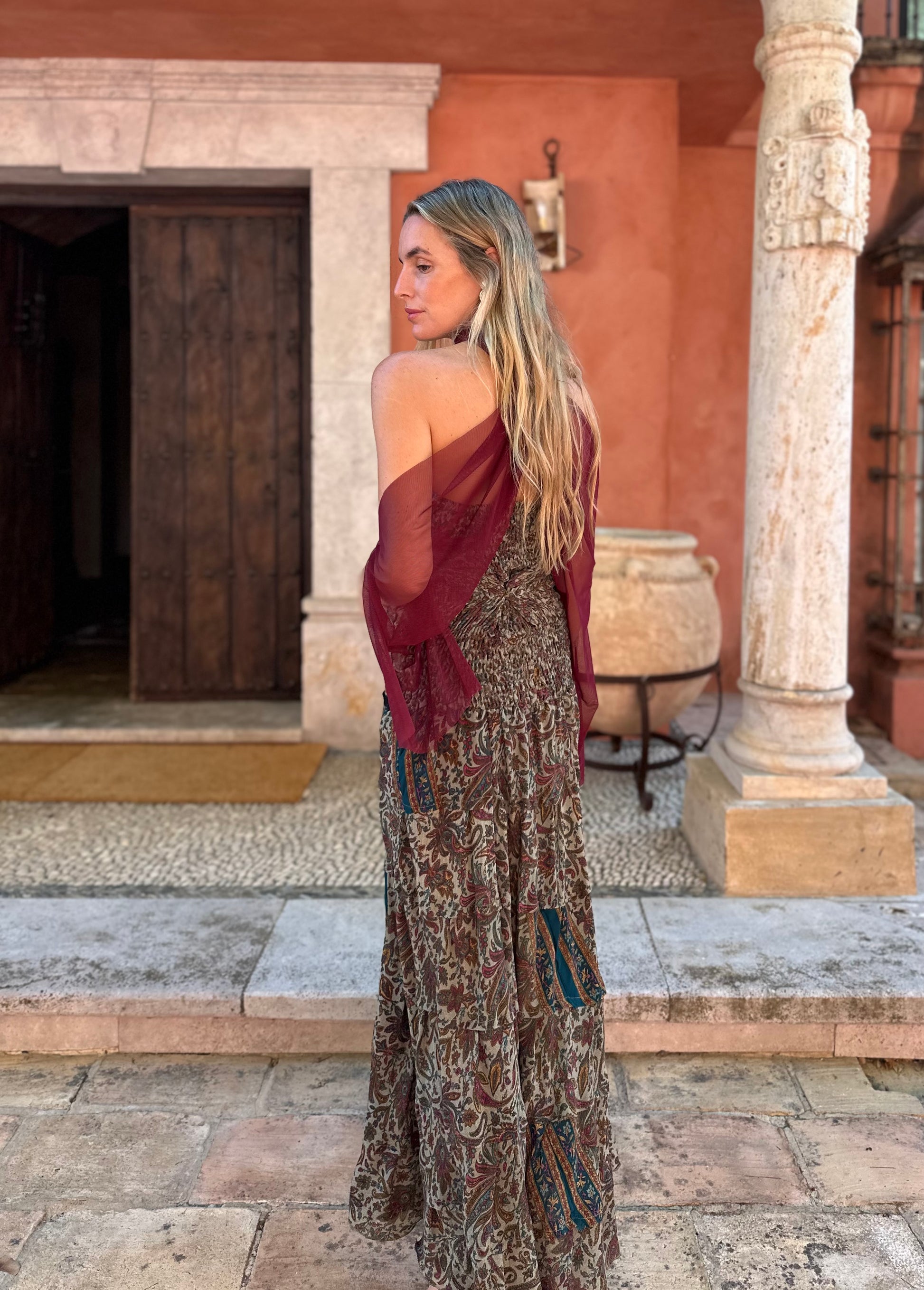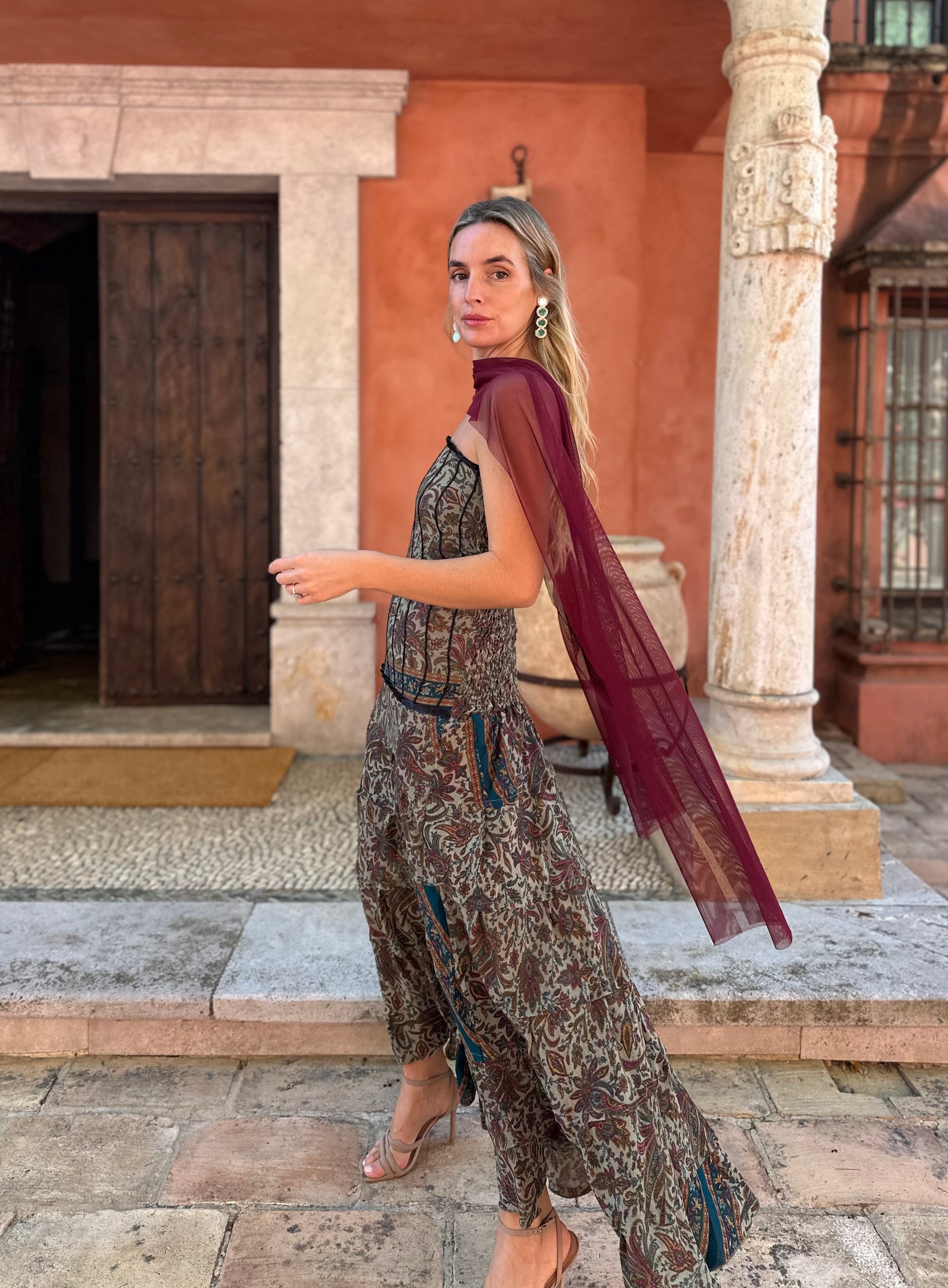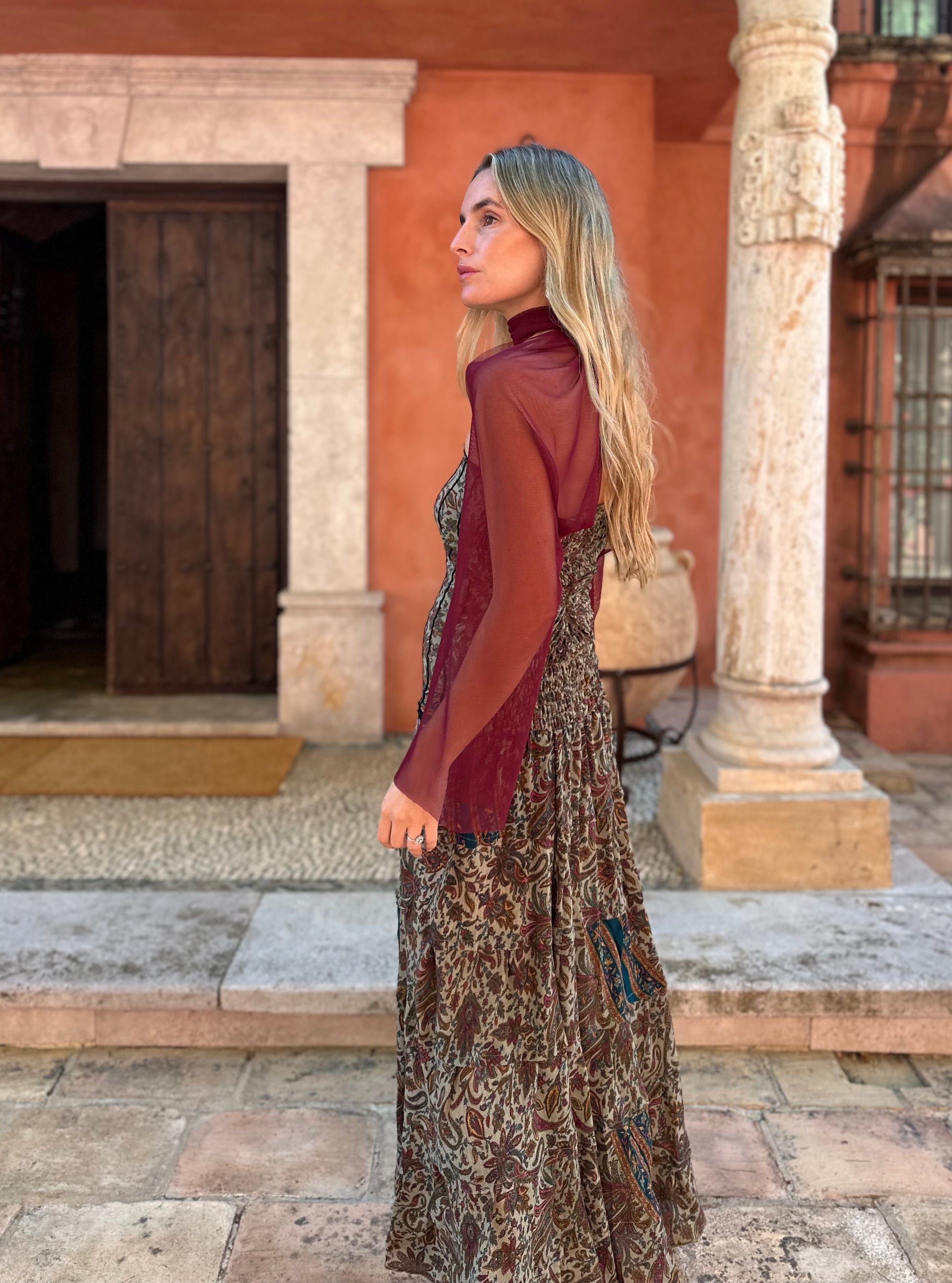 Capa/mangas multiposición, confeccionadas en tul de seda
