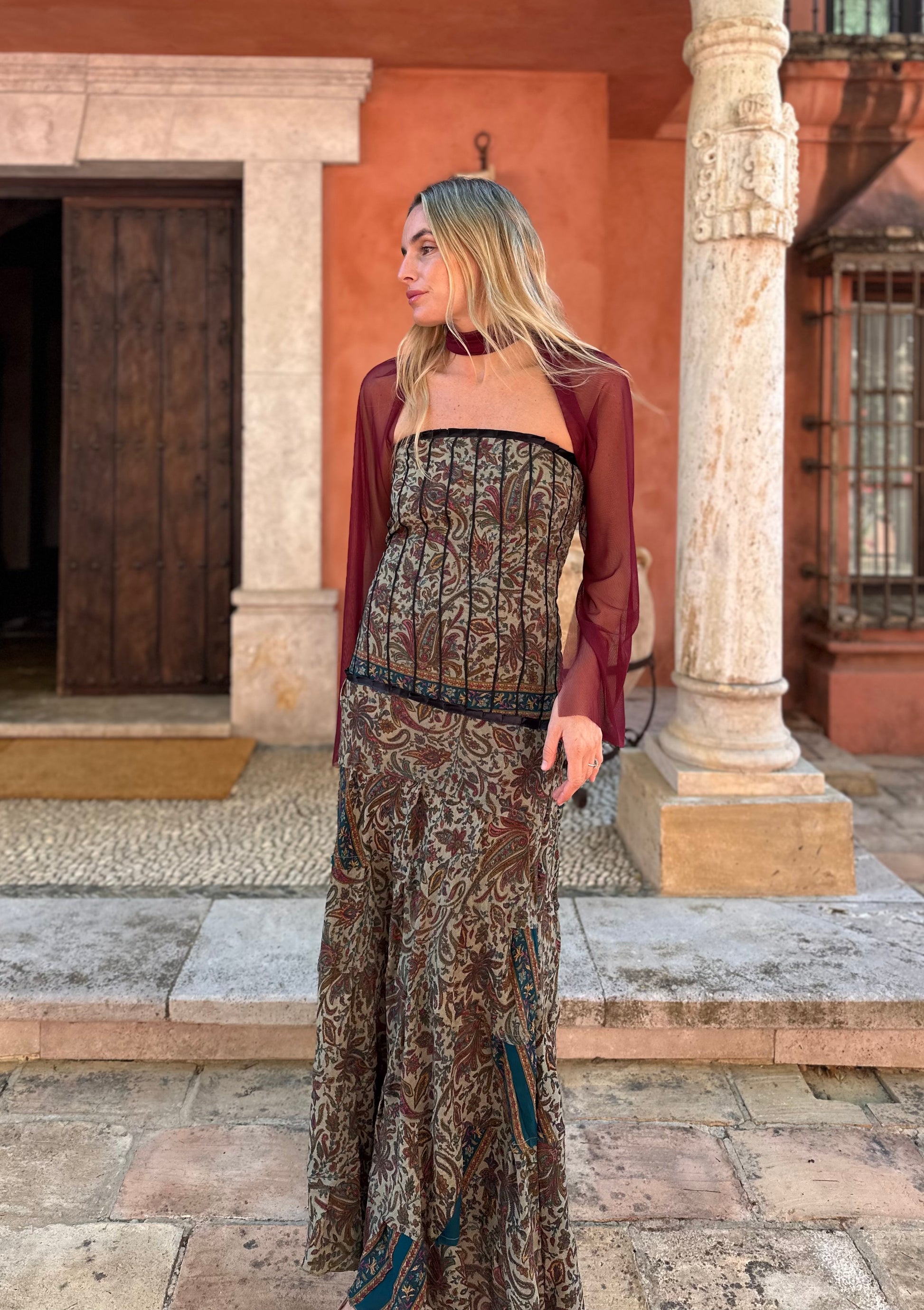 Mangas tul de seda burdeos