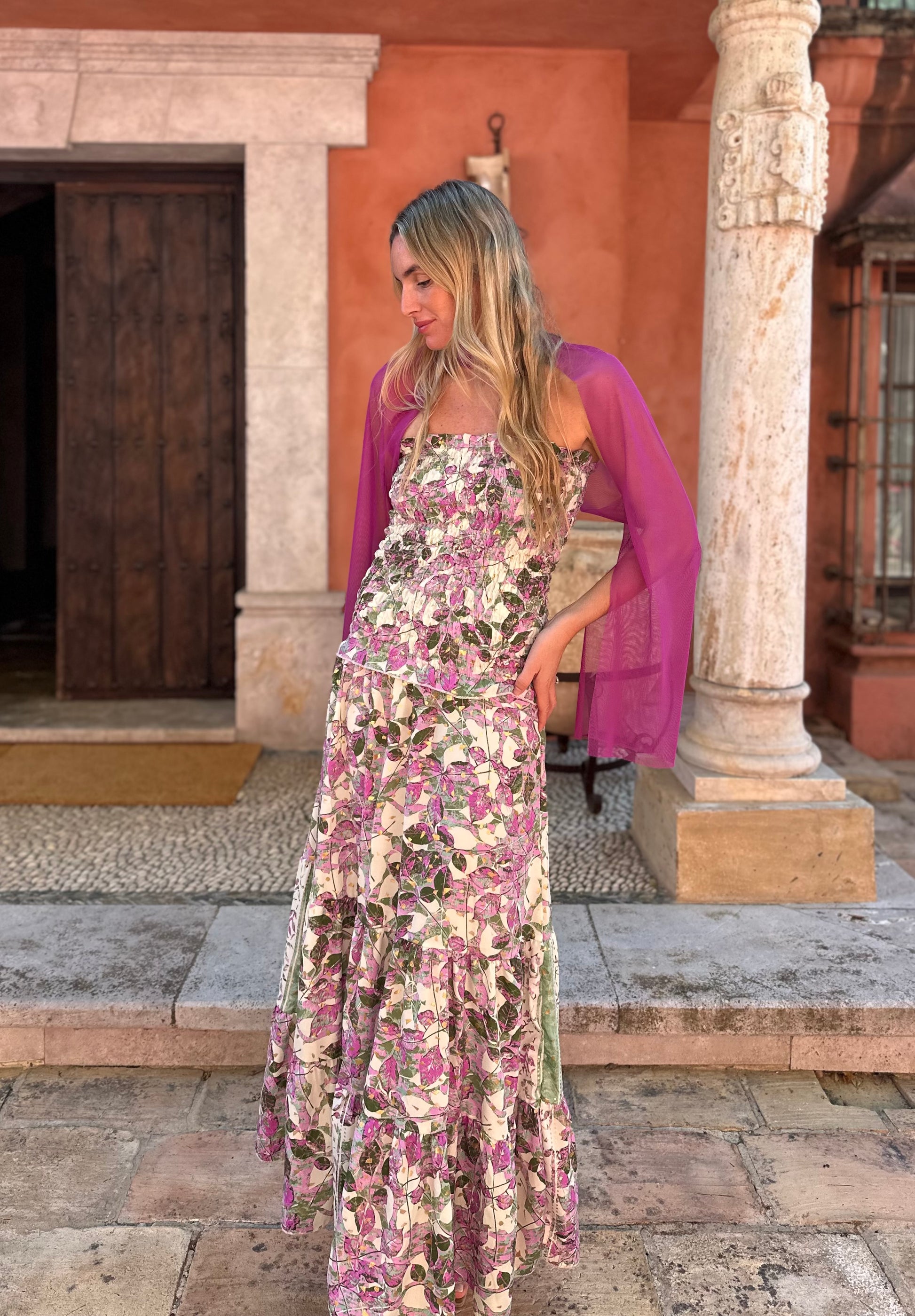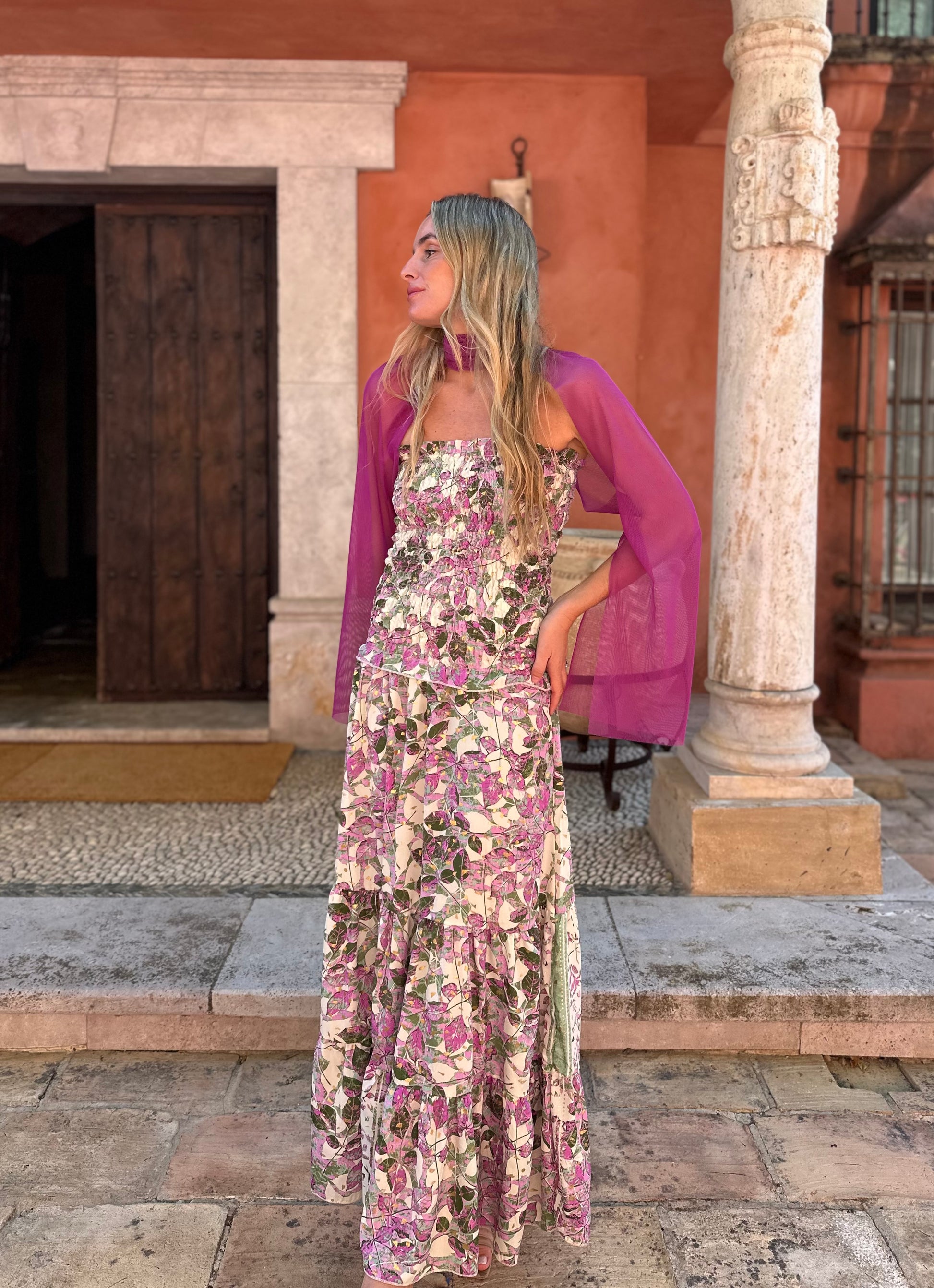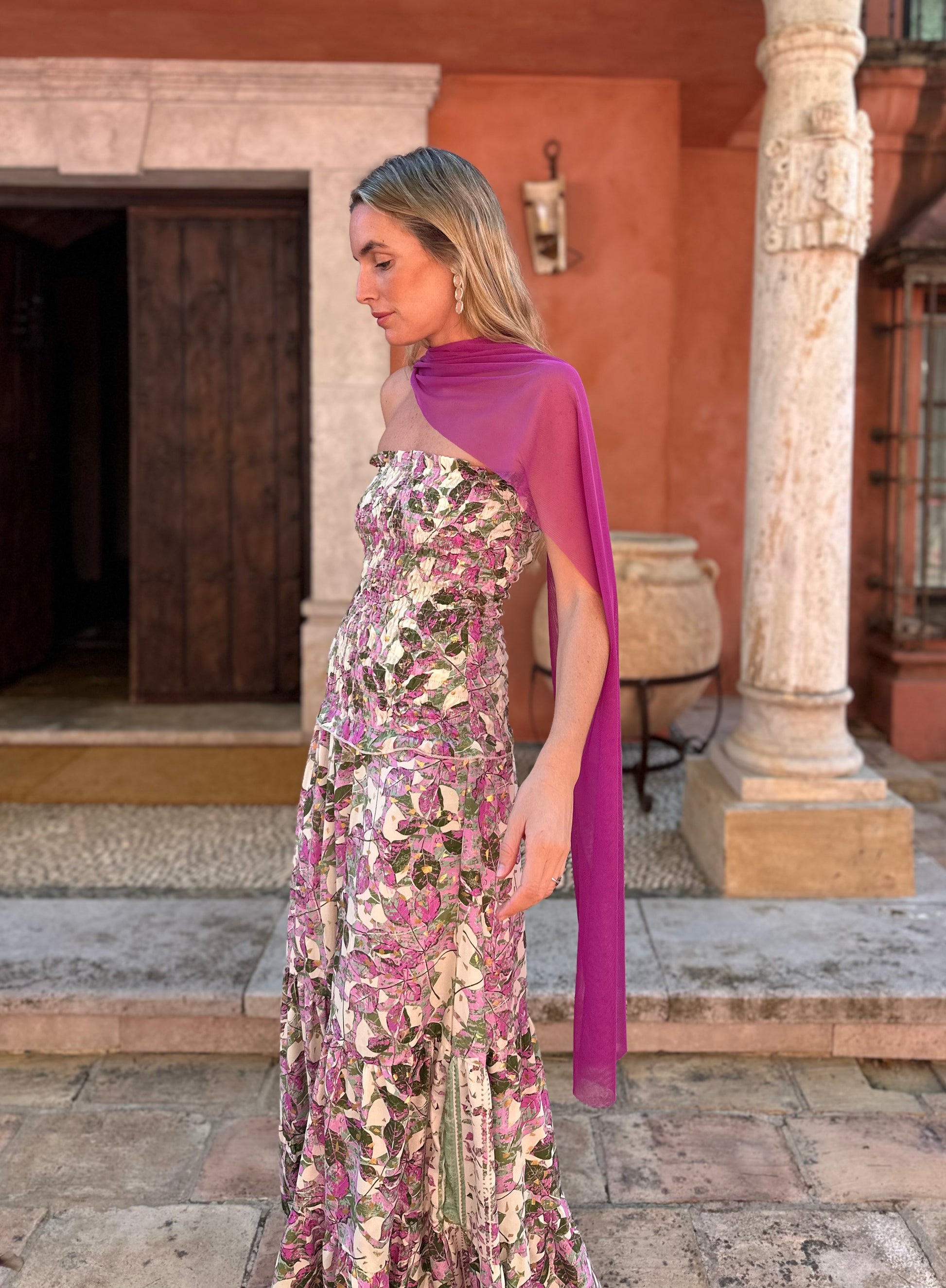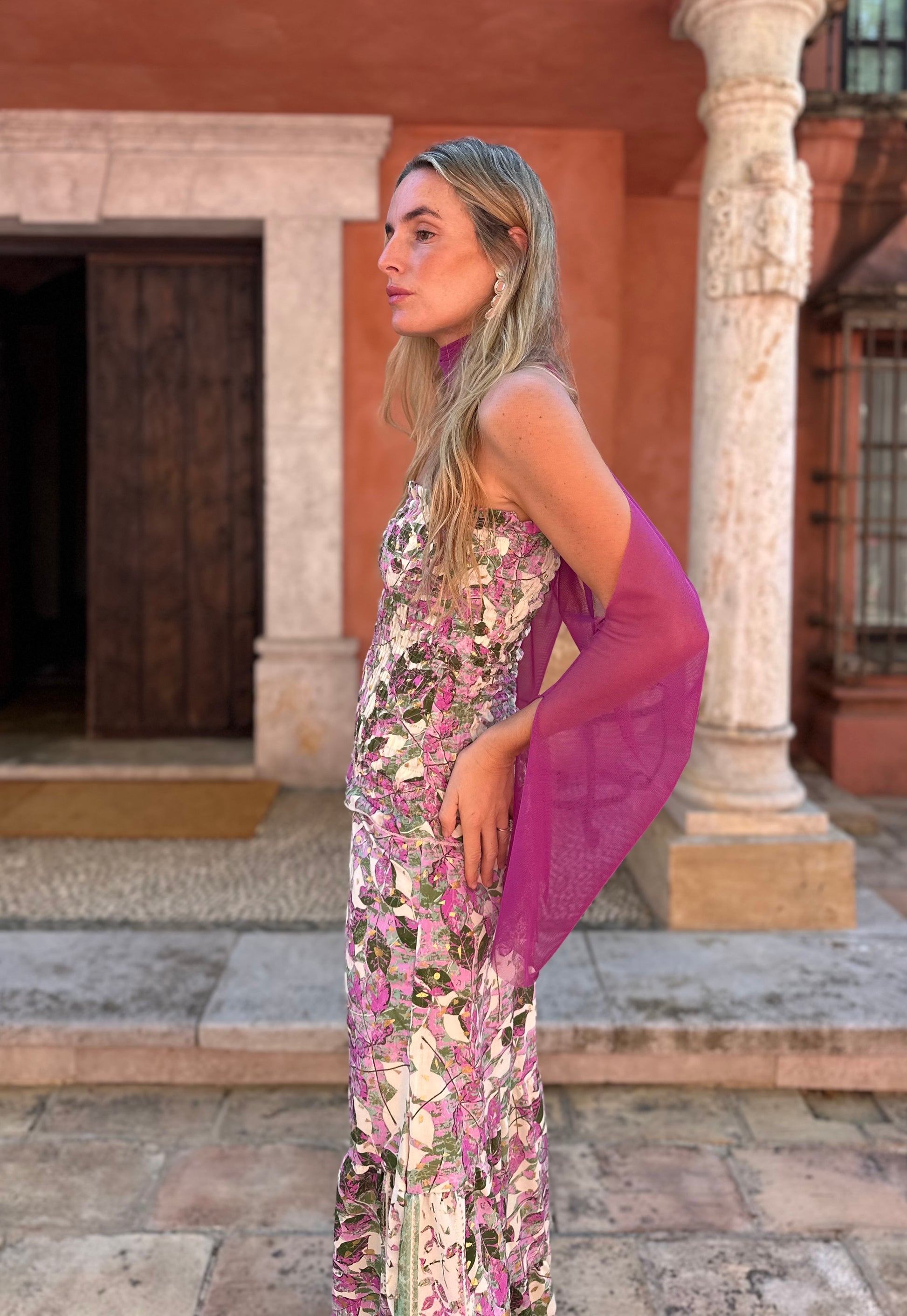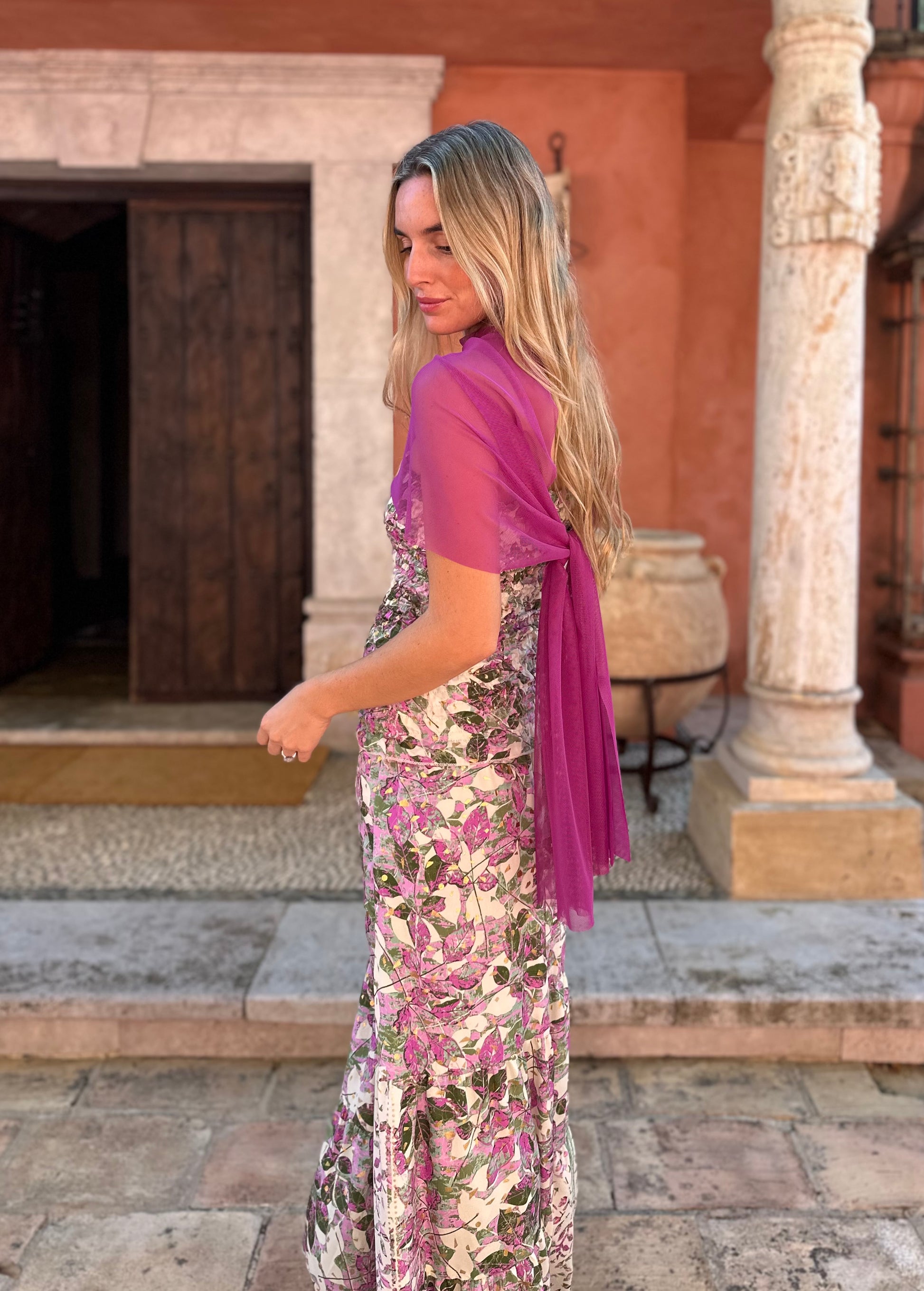 Capa/mangas multiposición, confeccionadas en tul de seda
