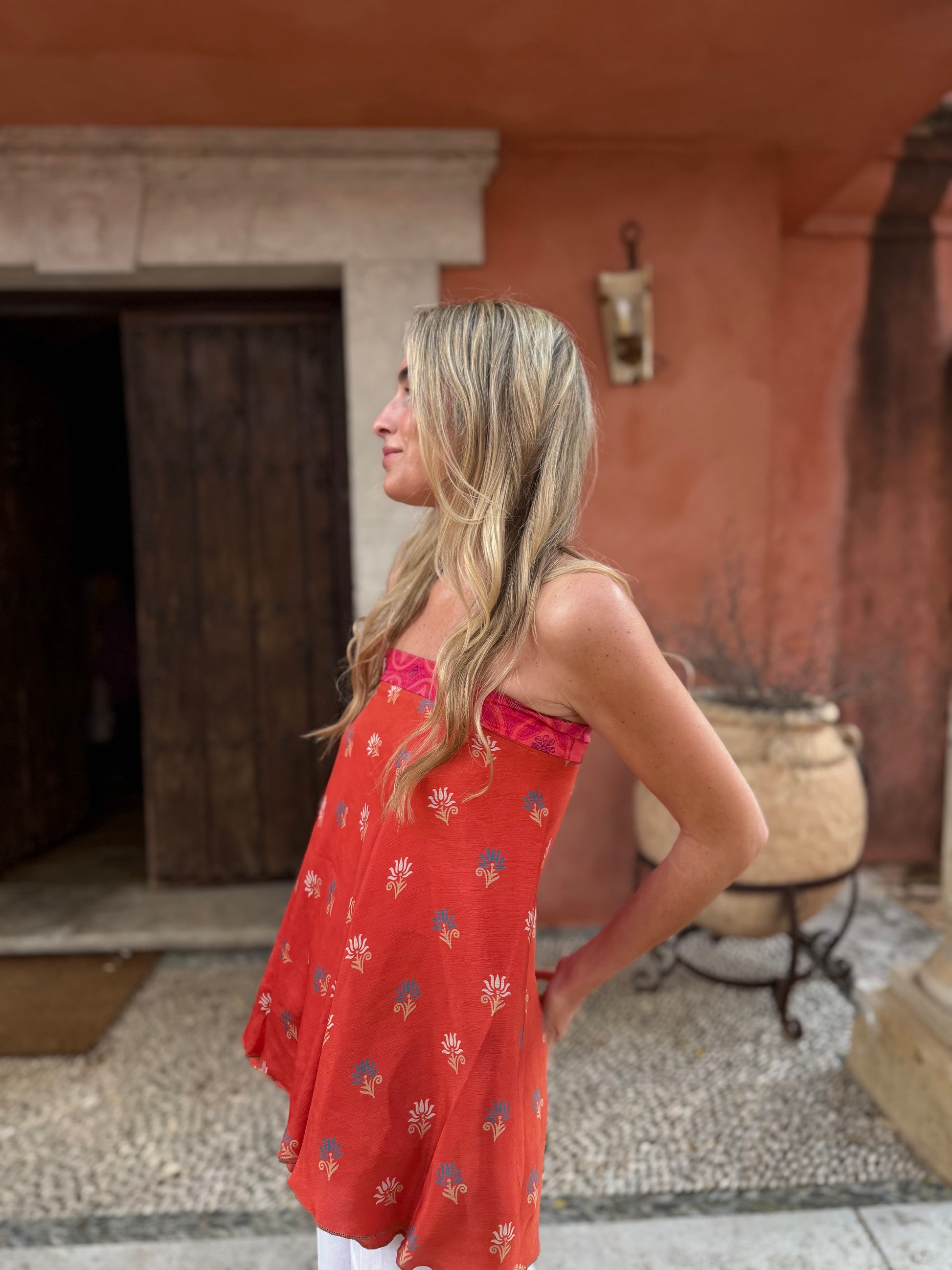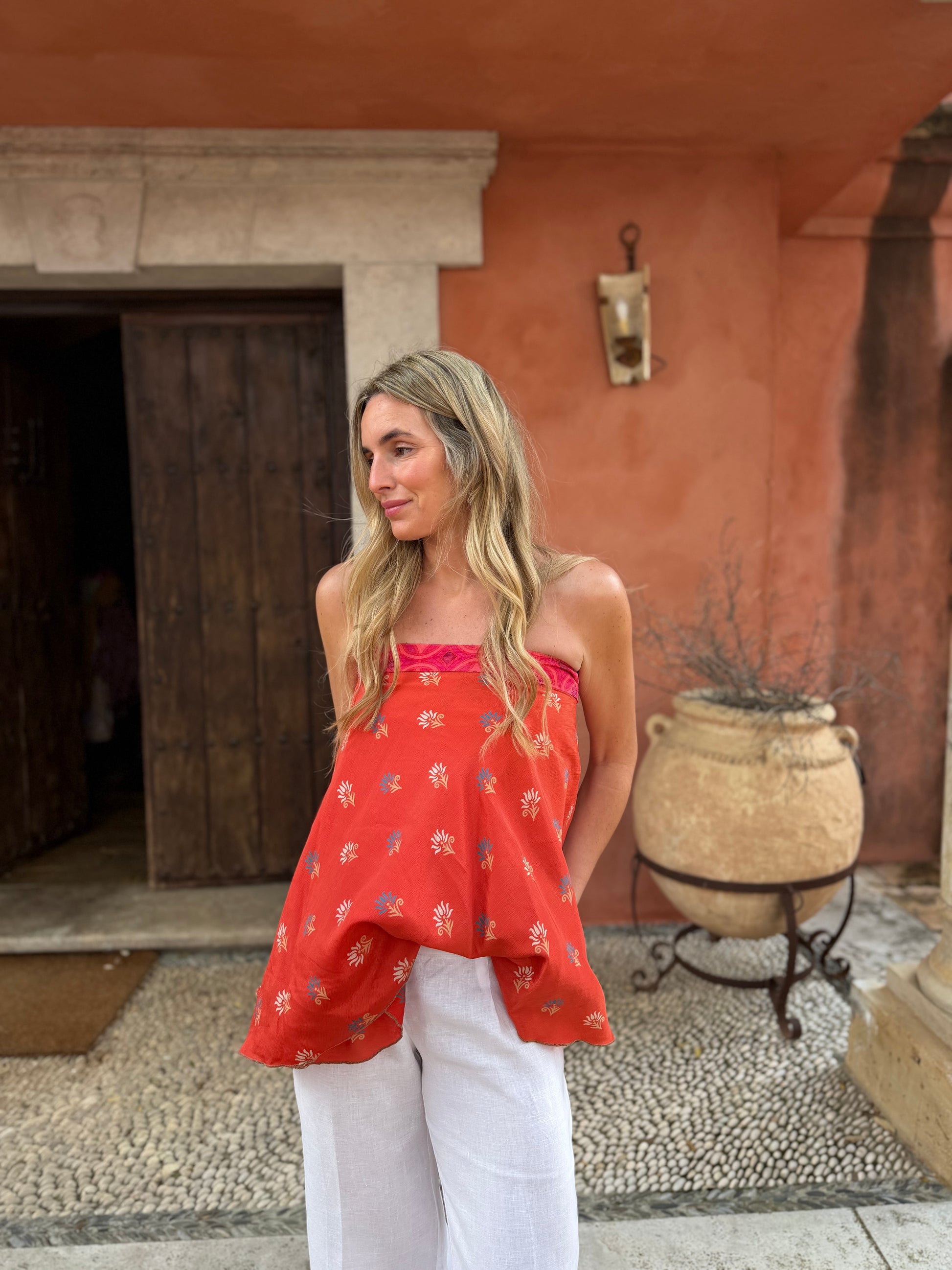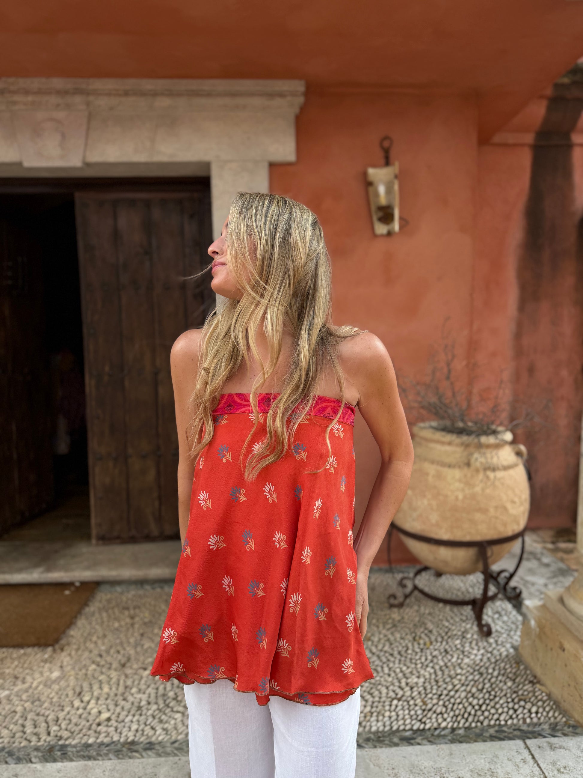 Top con tejido en seda vintage india. Sólo una por unidad