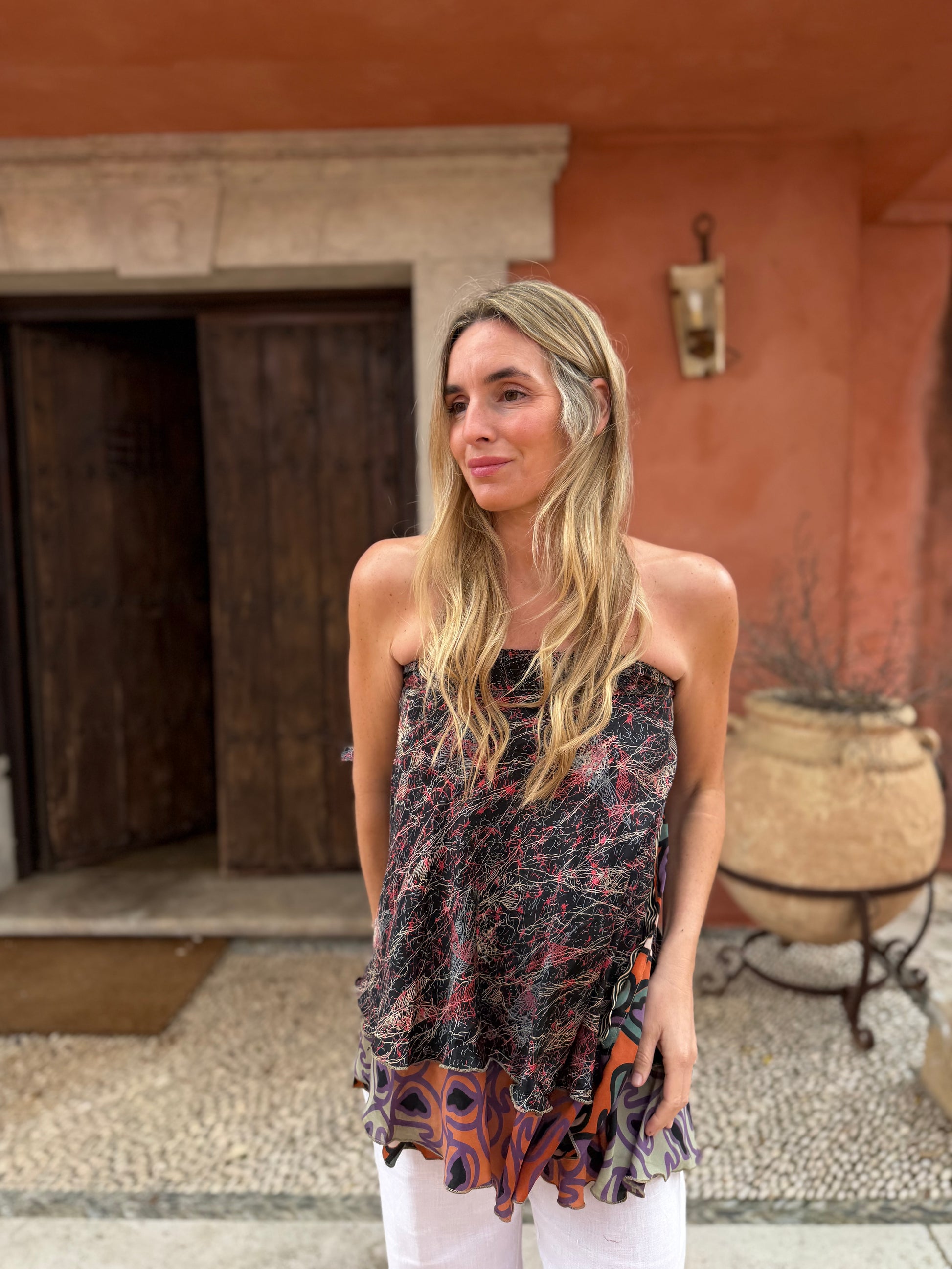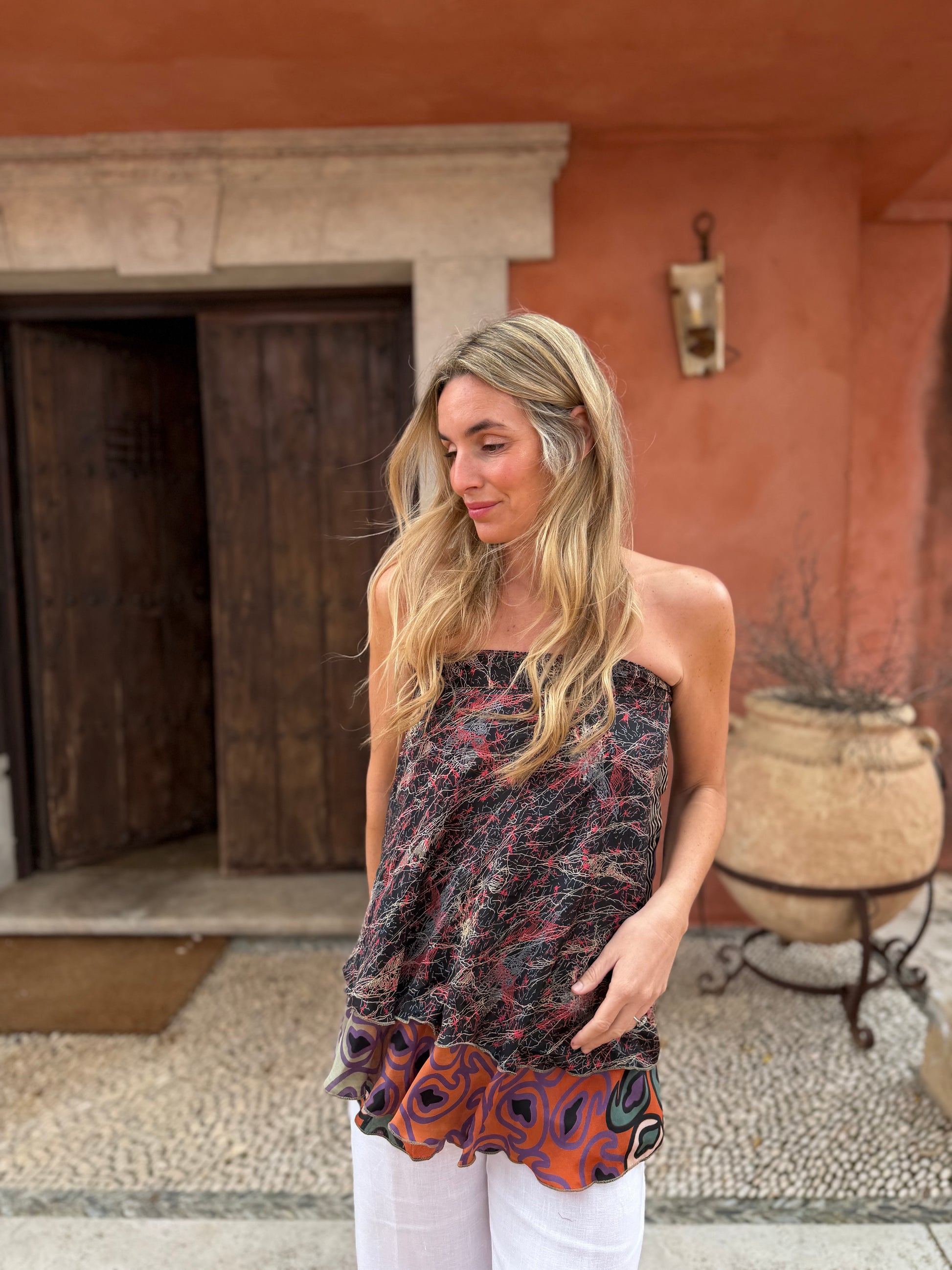 Top con tejido en seda vintage india. Sólo una por unidad