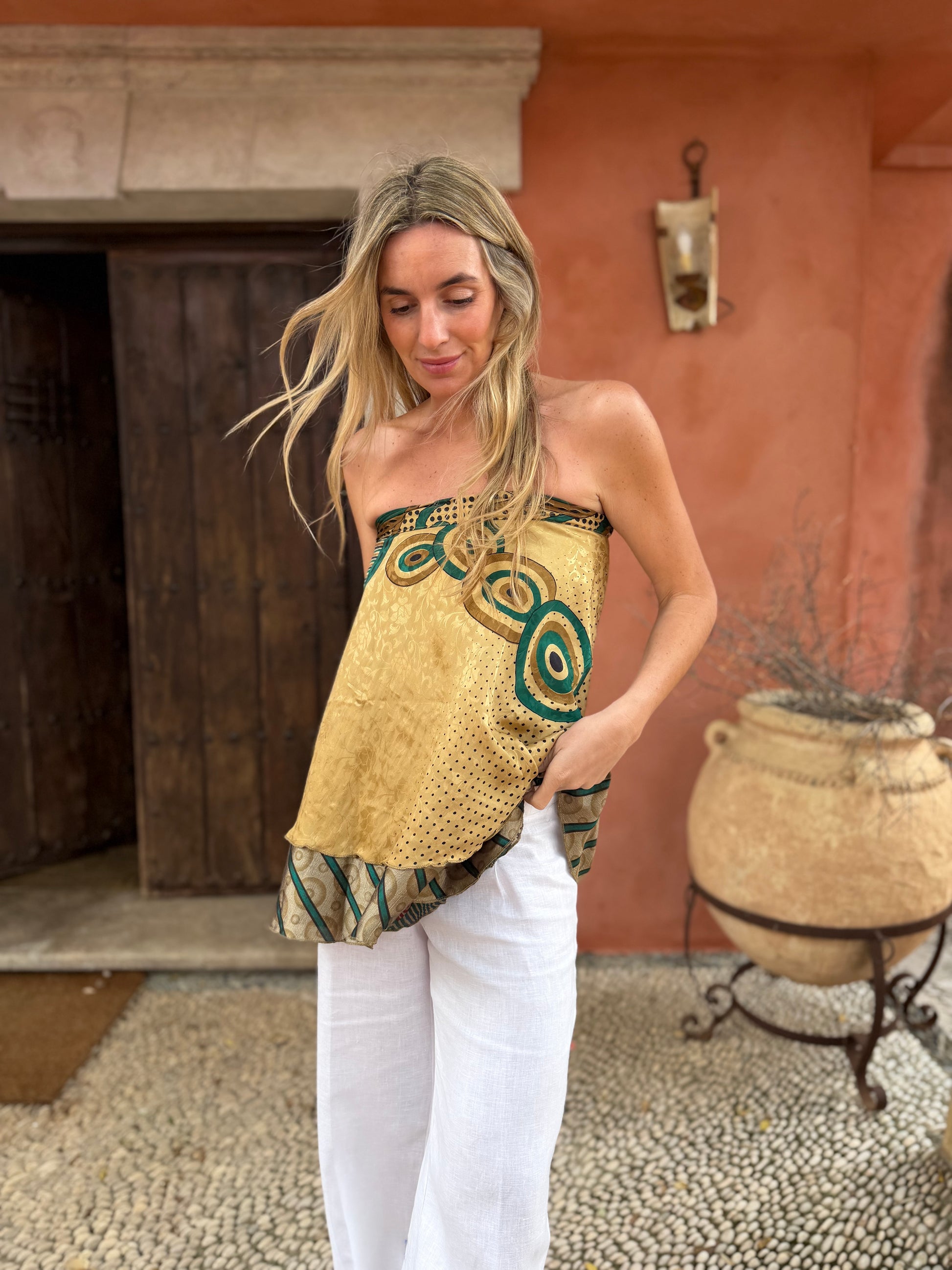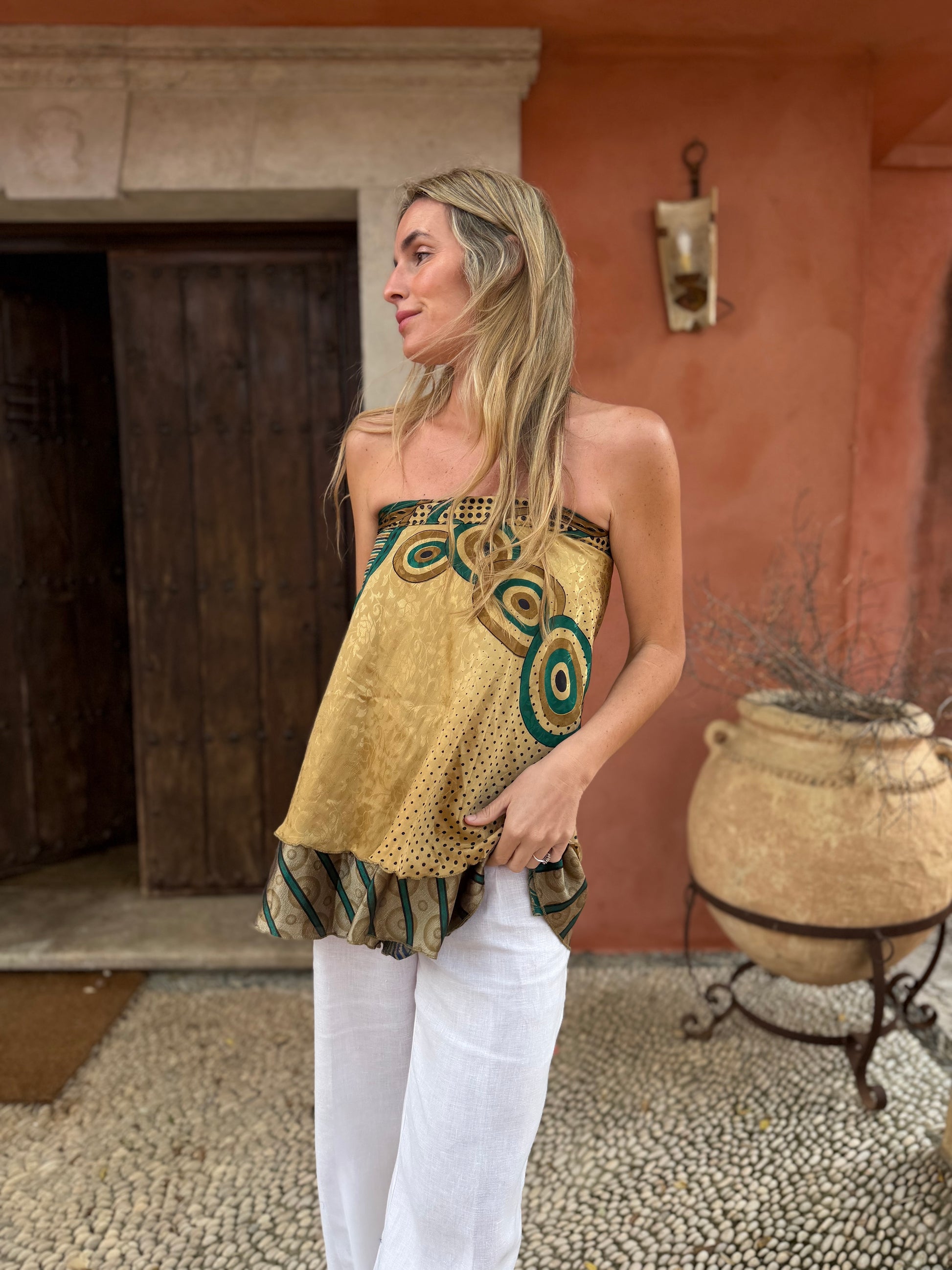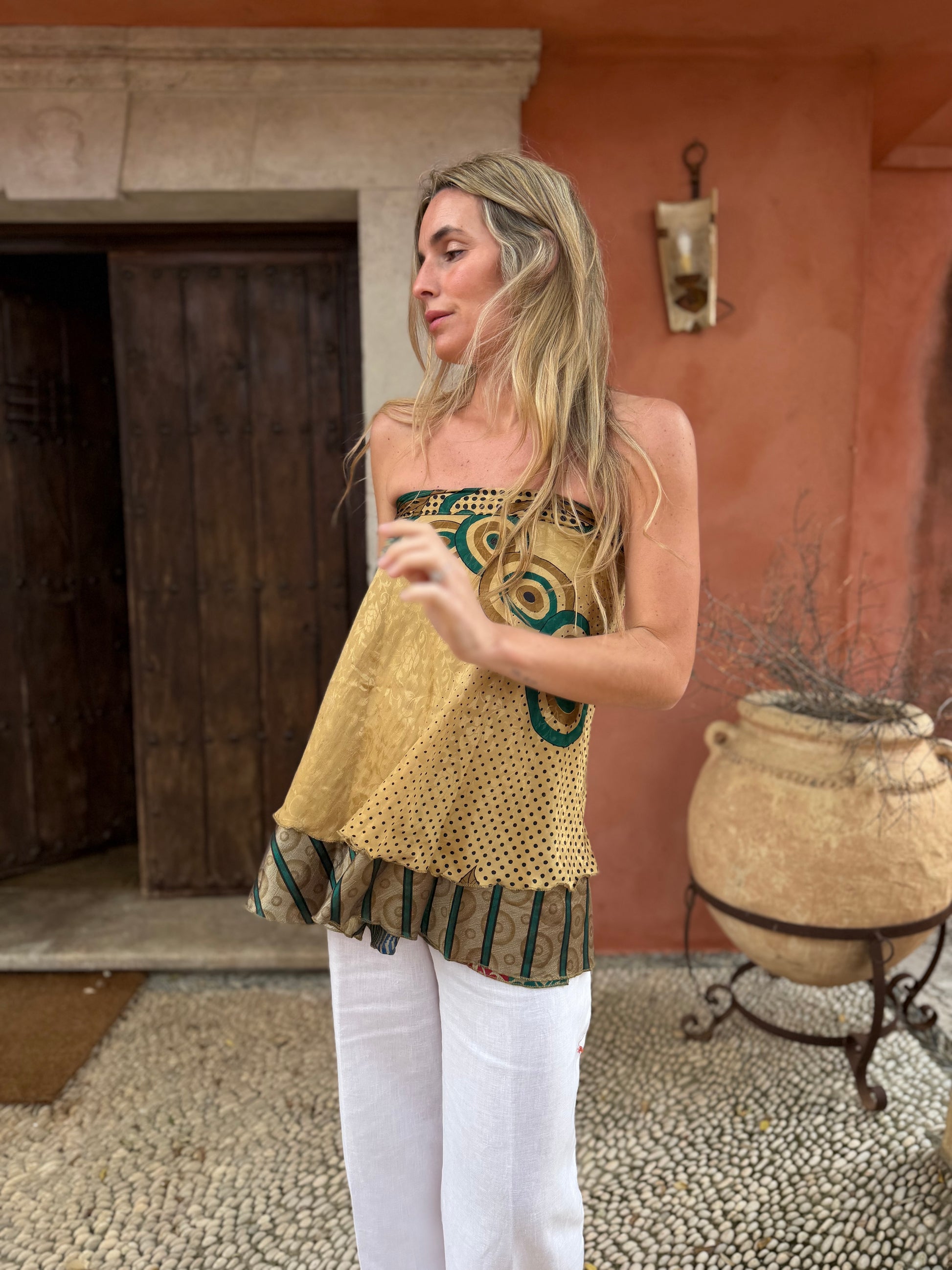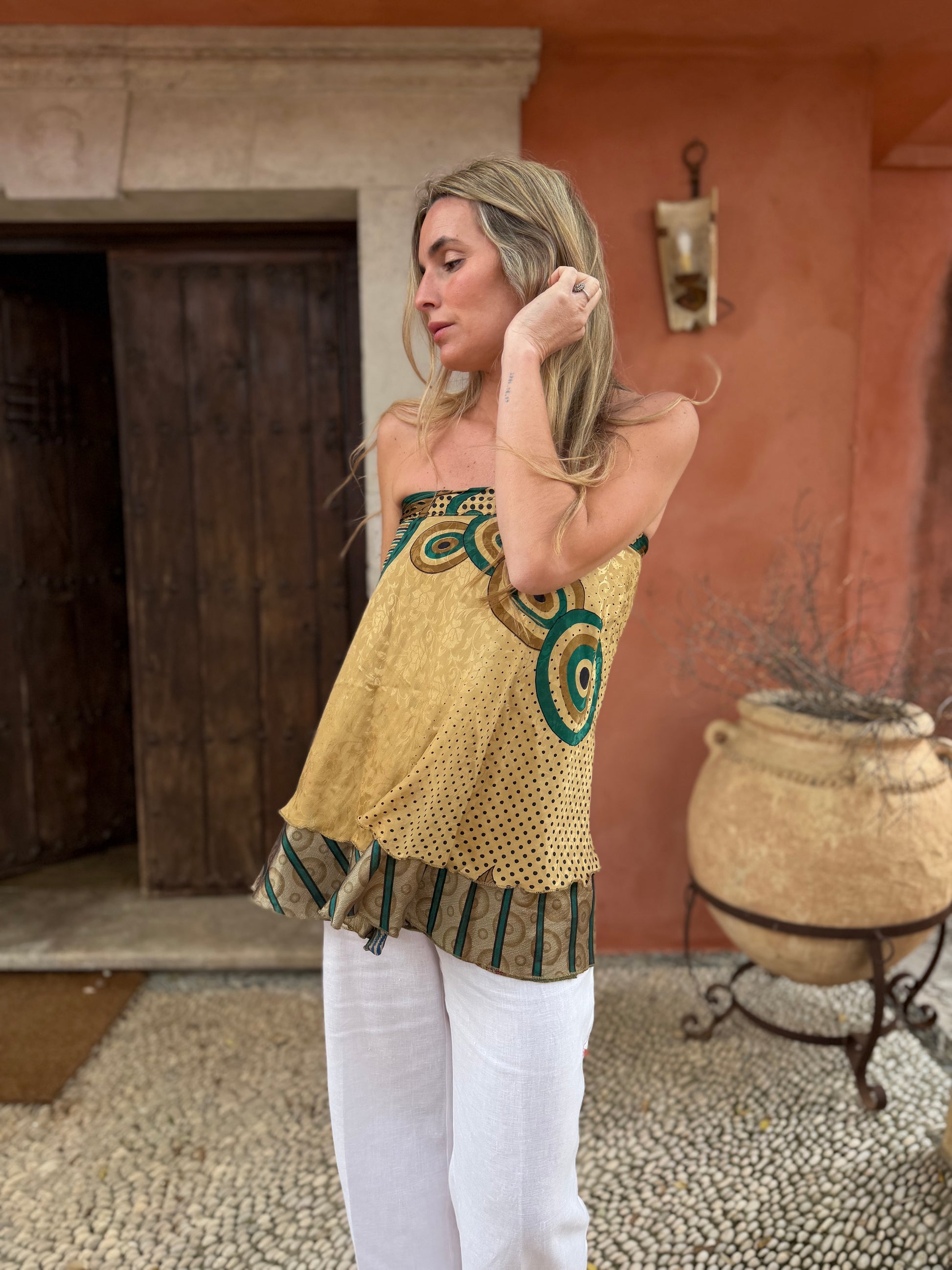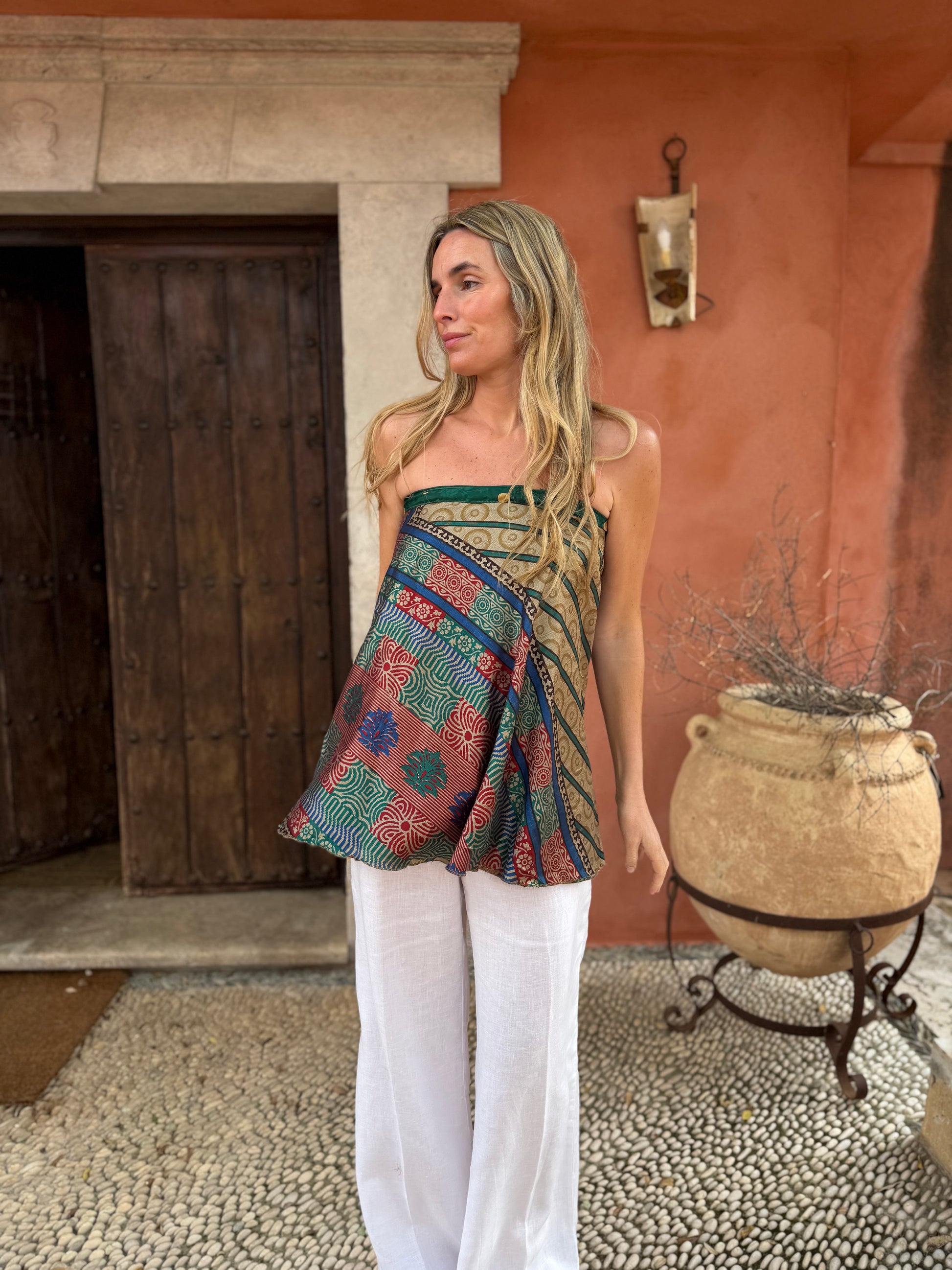 Top con tejido en seda vintage india. Sólo una por unidad