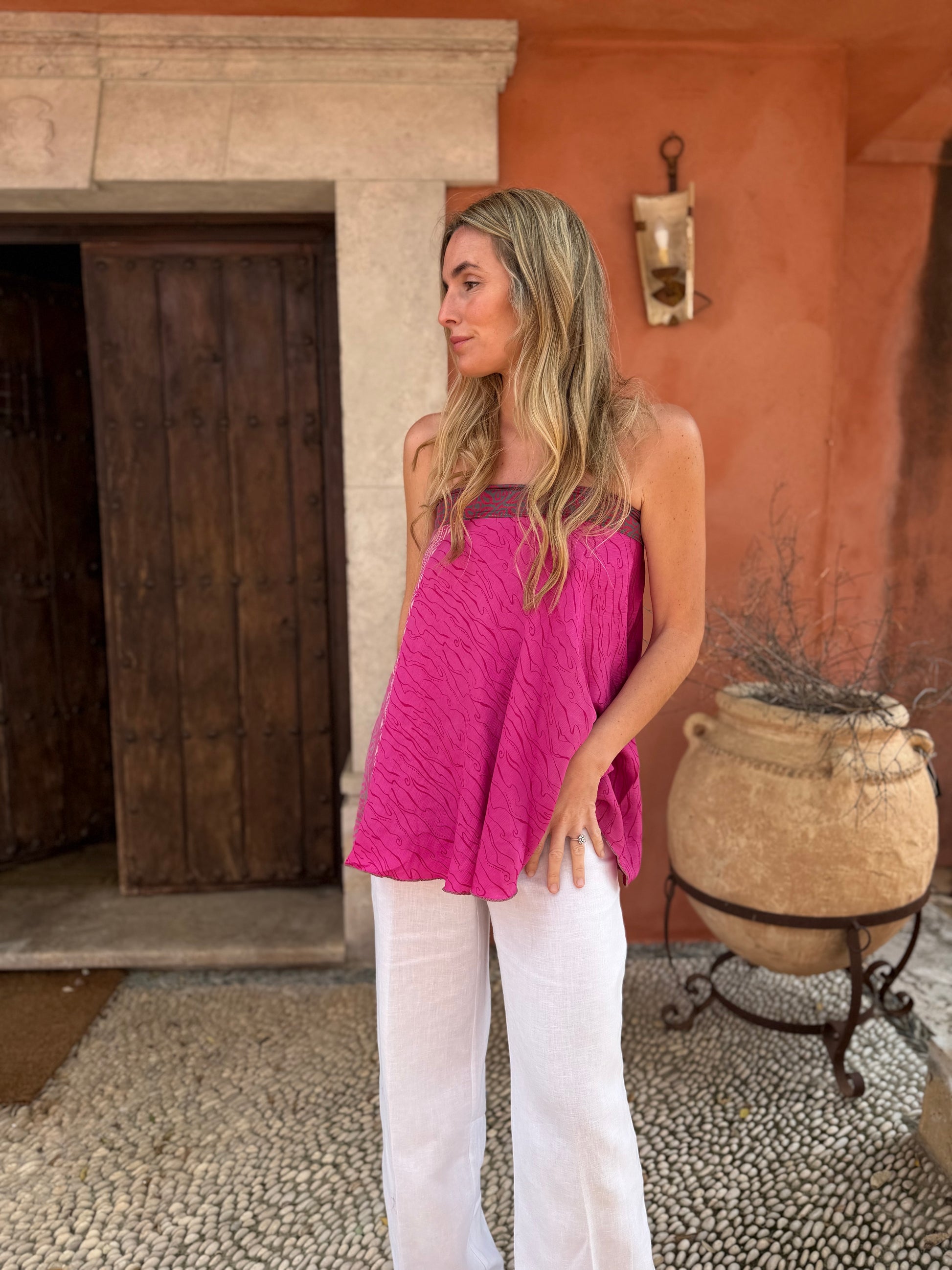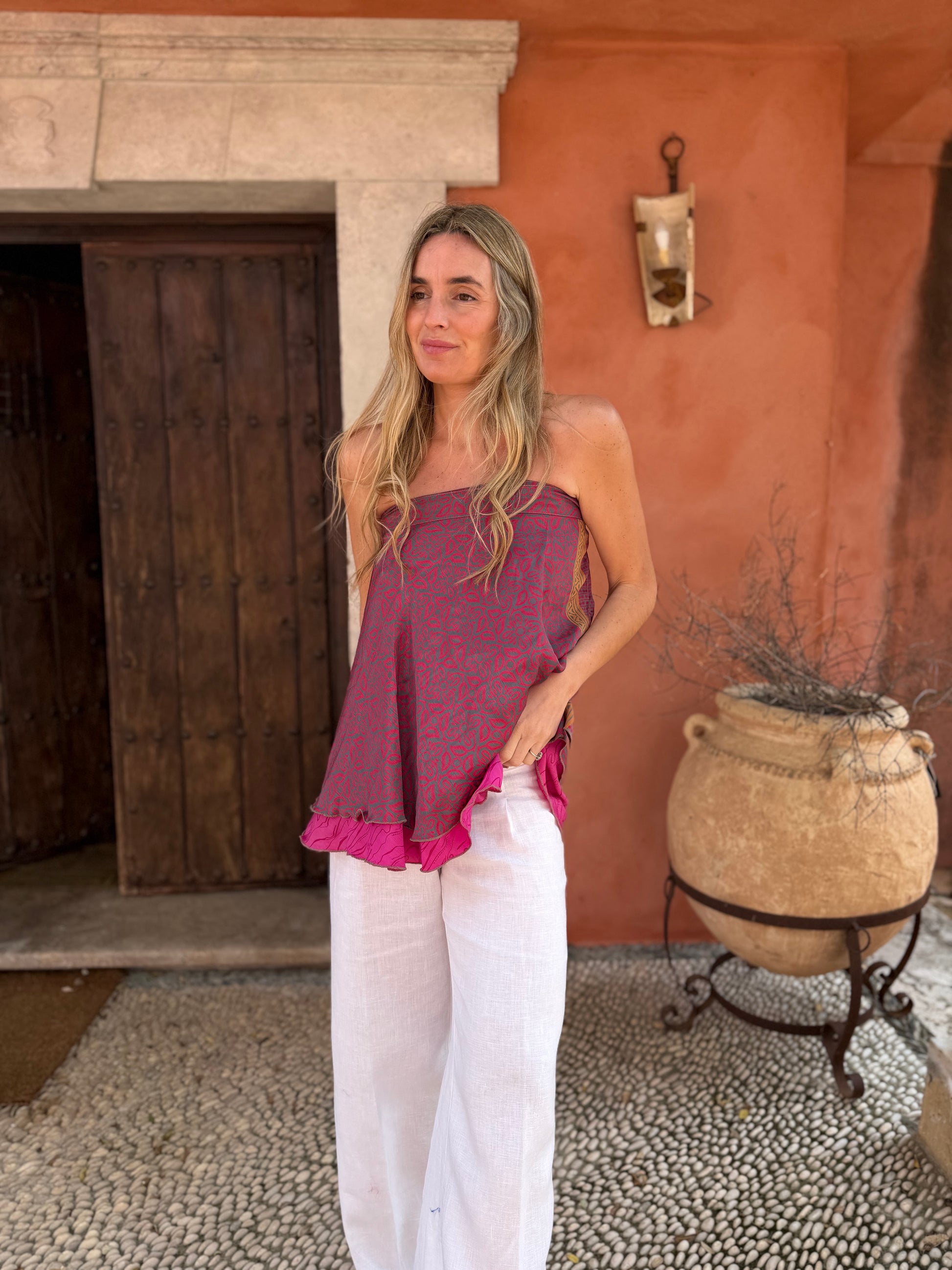 Top con tejido en seda vintage india. Sólo una por unidad