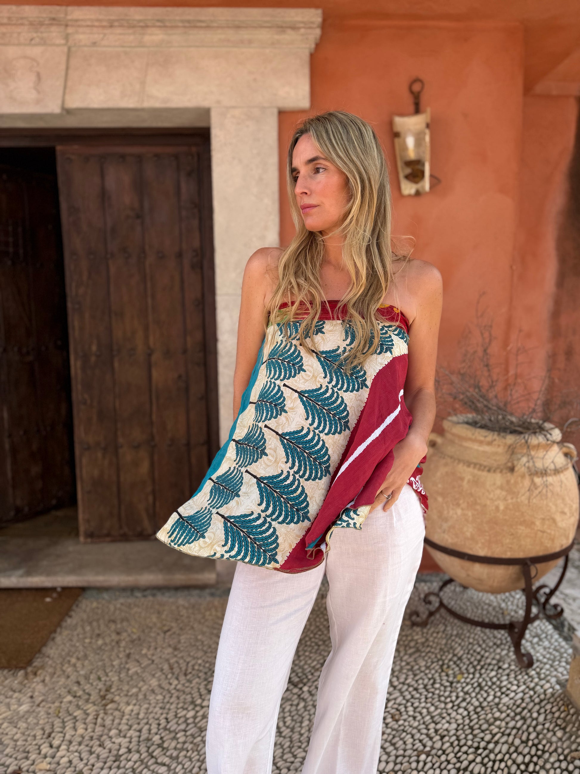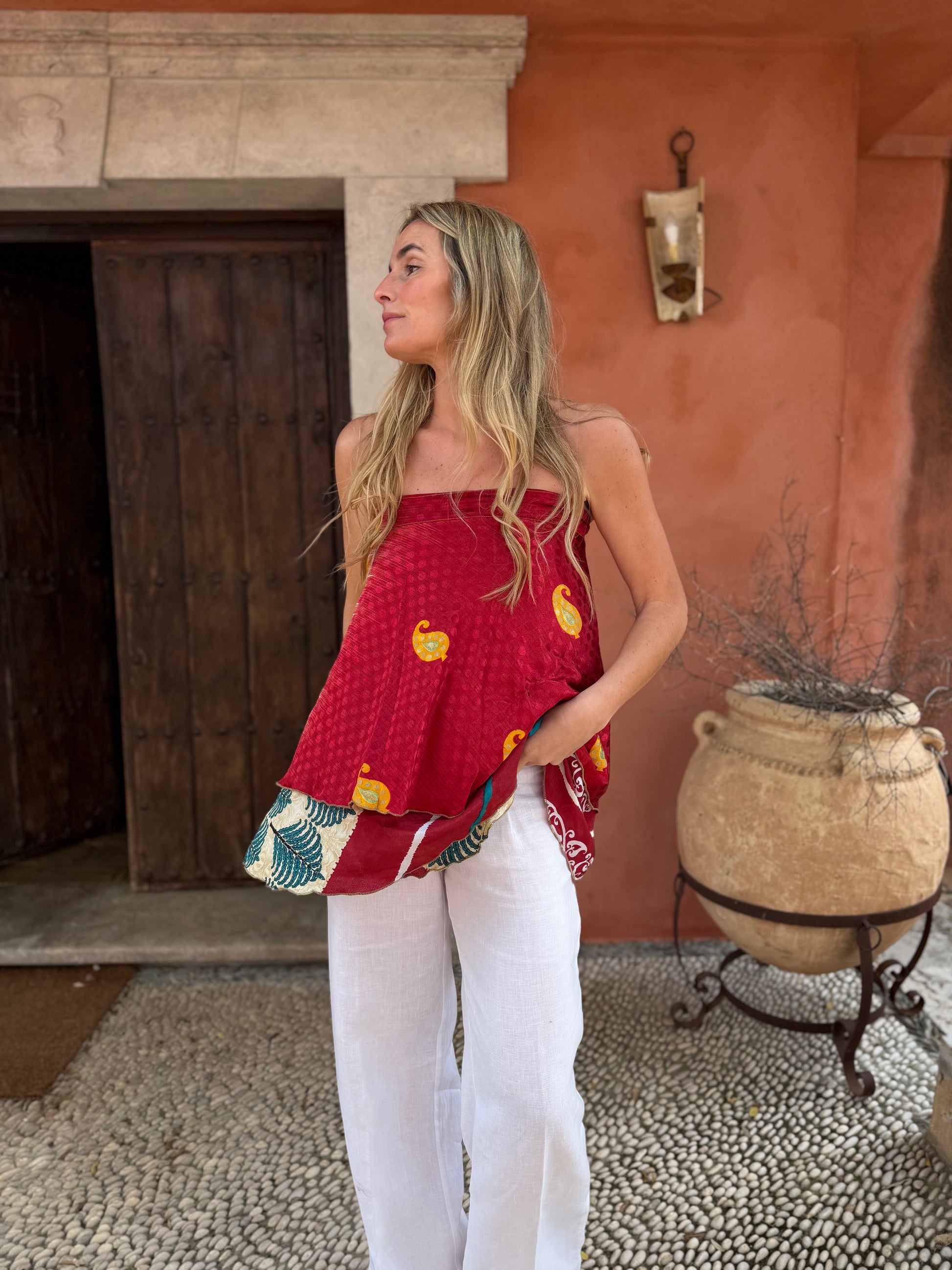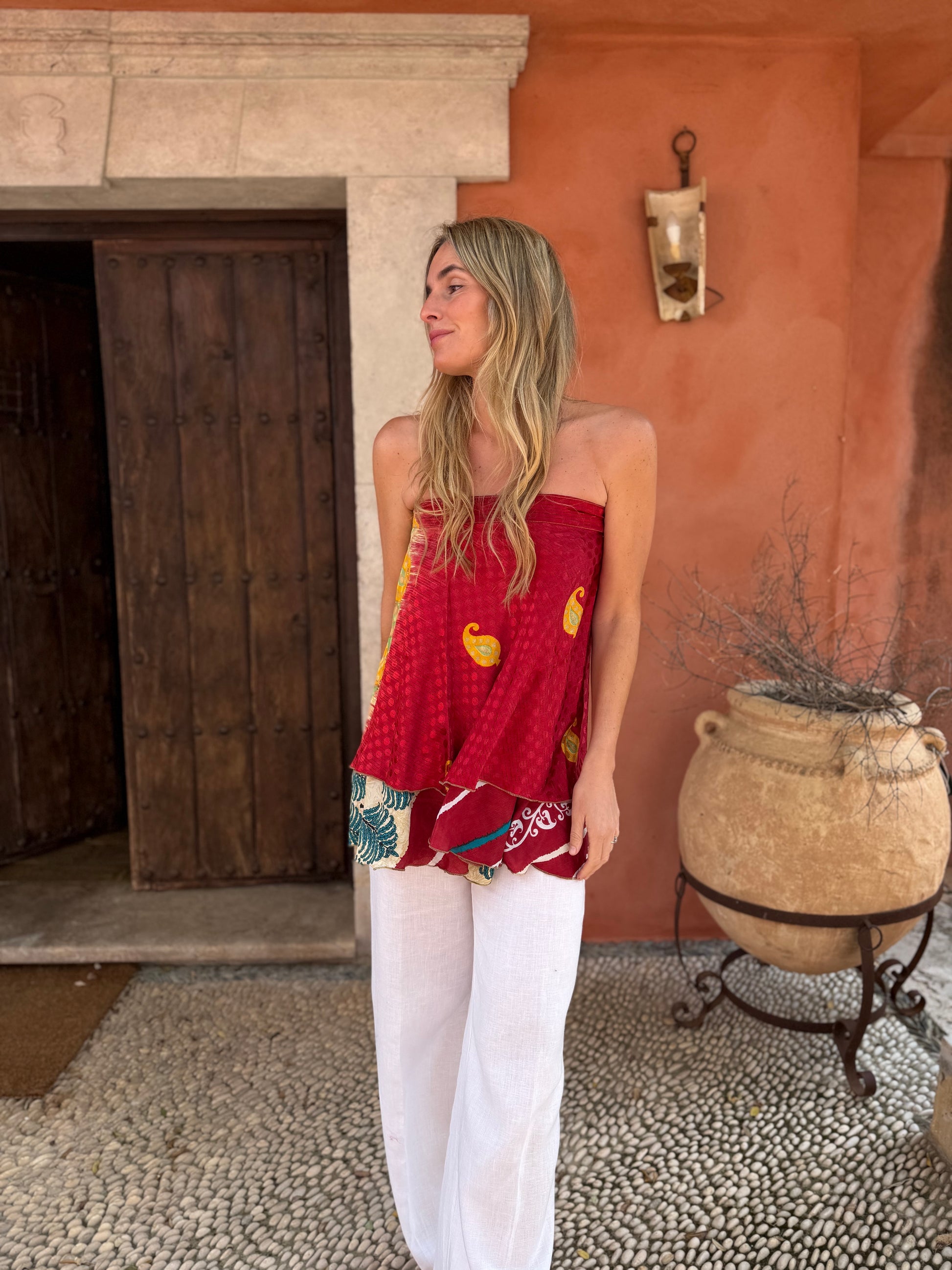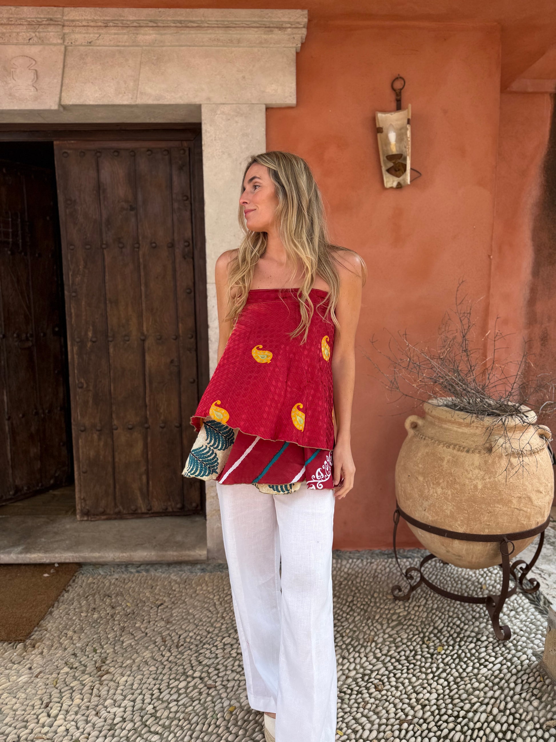 Top con tejido en seda vintage india. Sólo una por unidad